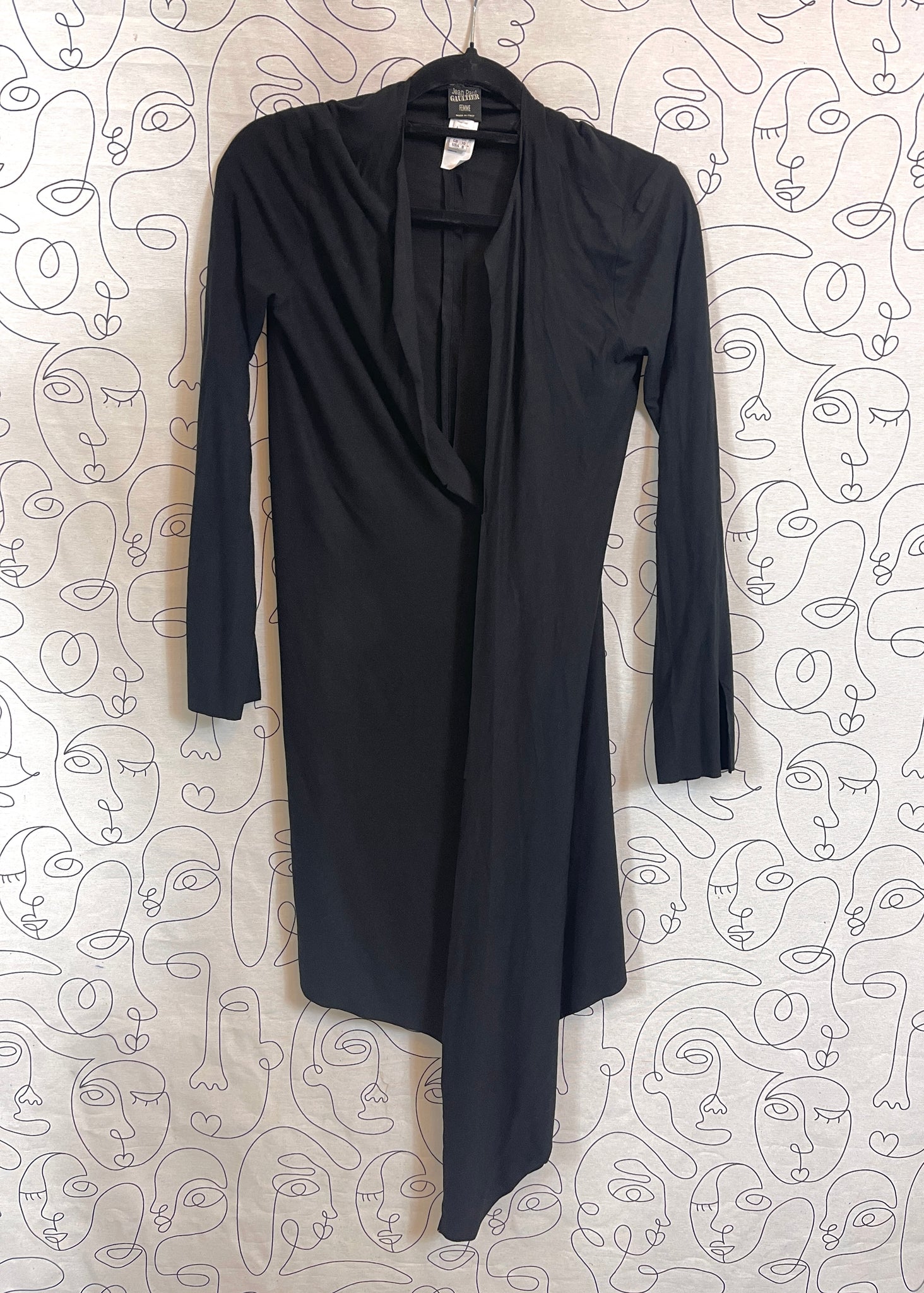 Mesures à plat : largeur épaules 42 cms, largeur sous aisselles 51 cms, largeur taille (lacet fermé au maximum) 37 cms, longueur 88 cms.