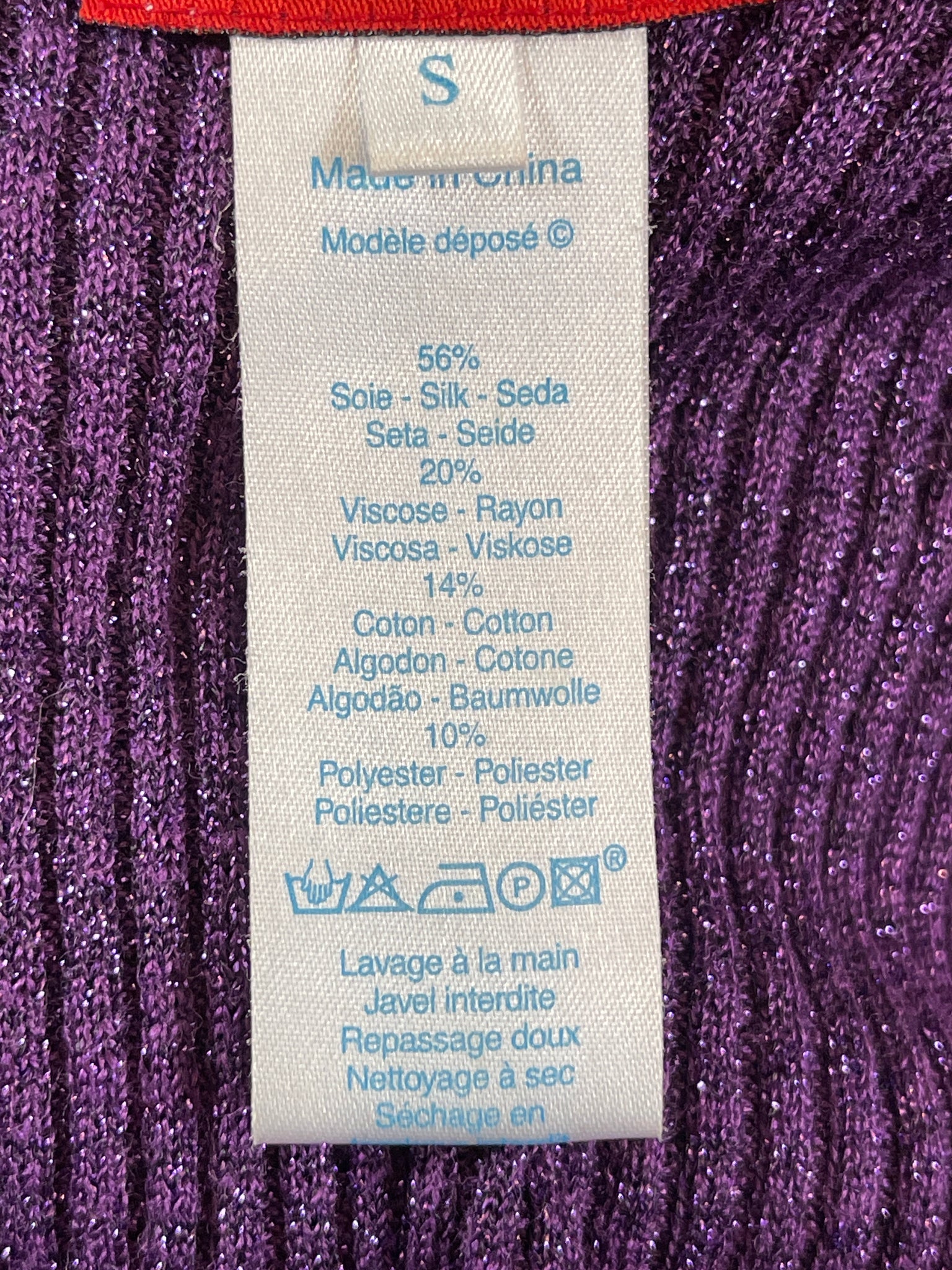 56% soie, 20% viscose, 14% coton et 10% polyester.