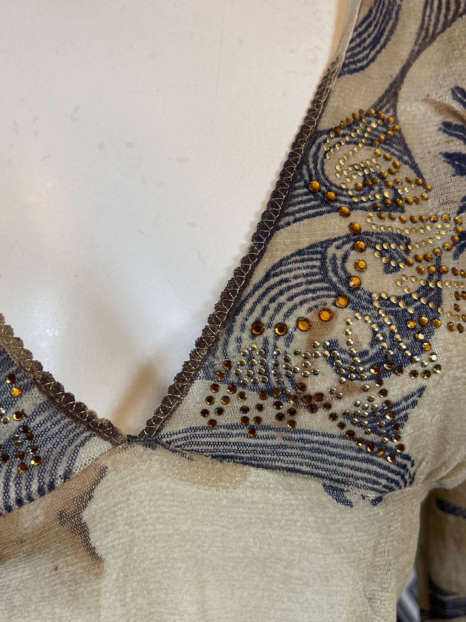 A décors de strass sur le décolleté.