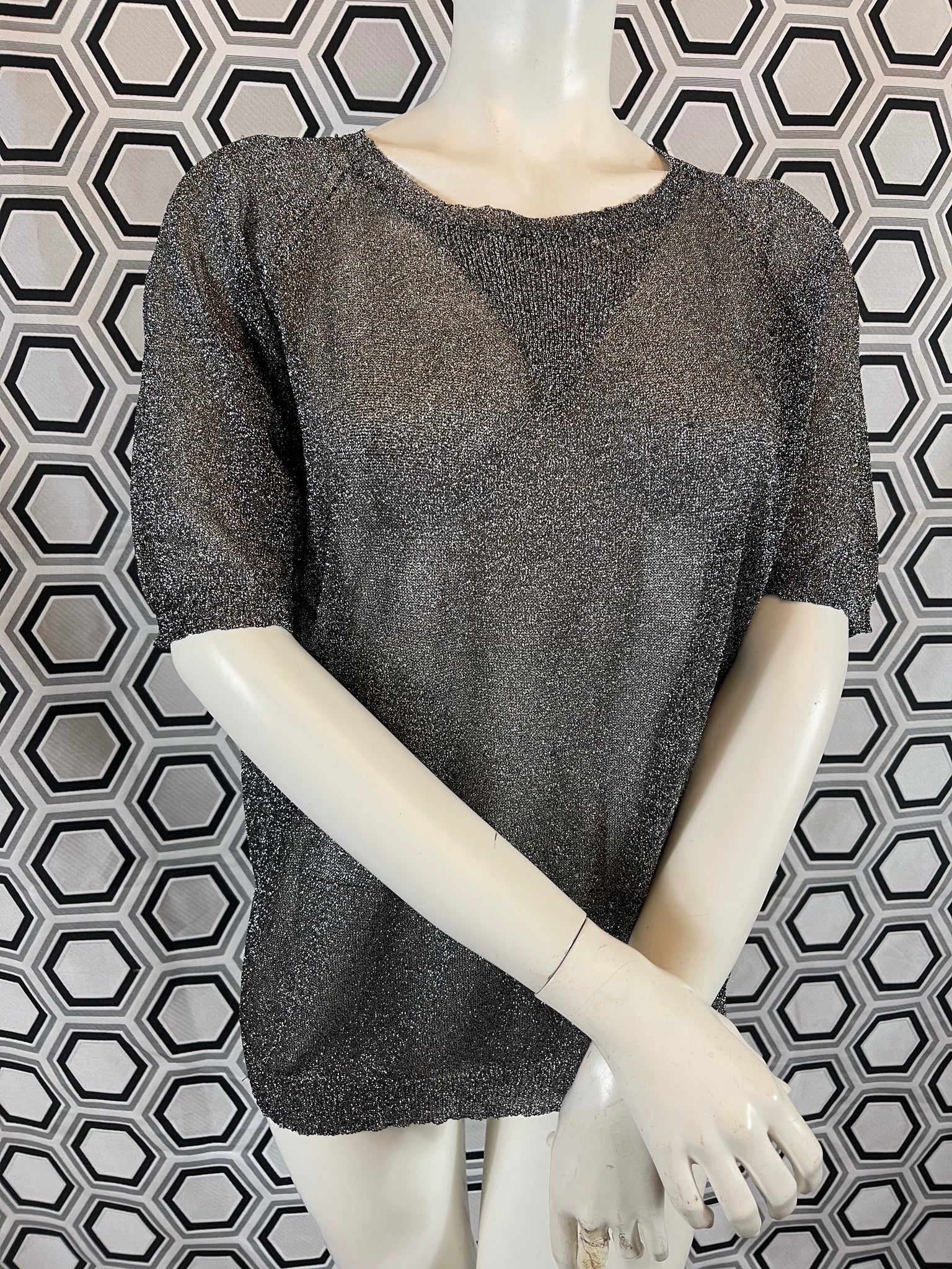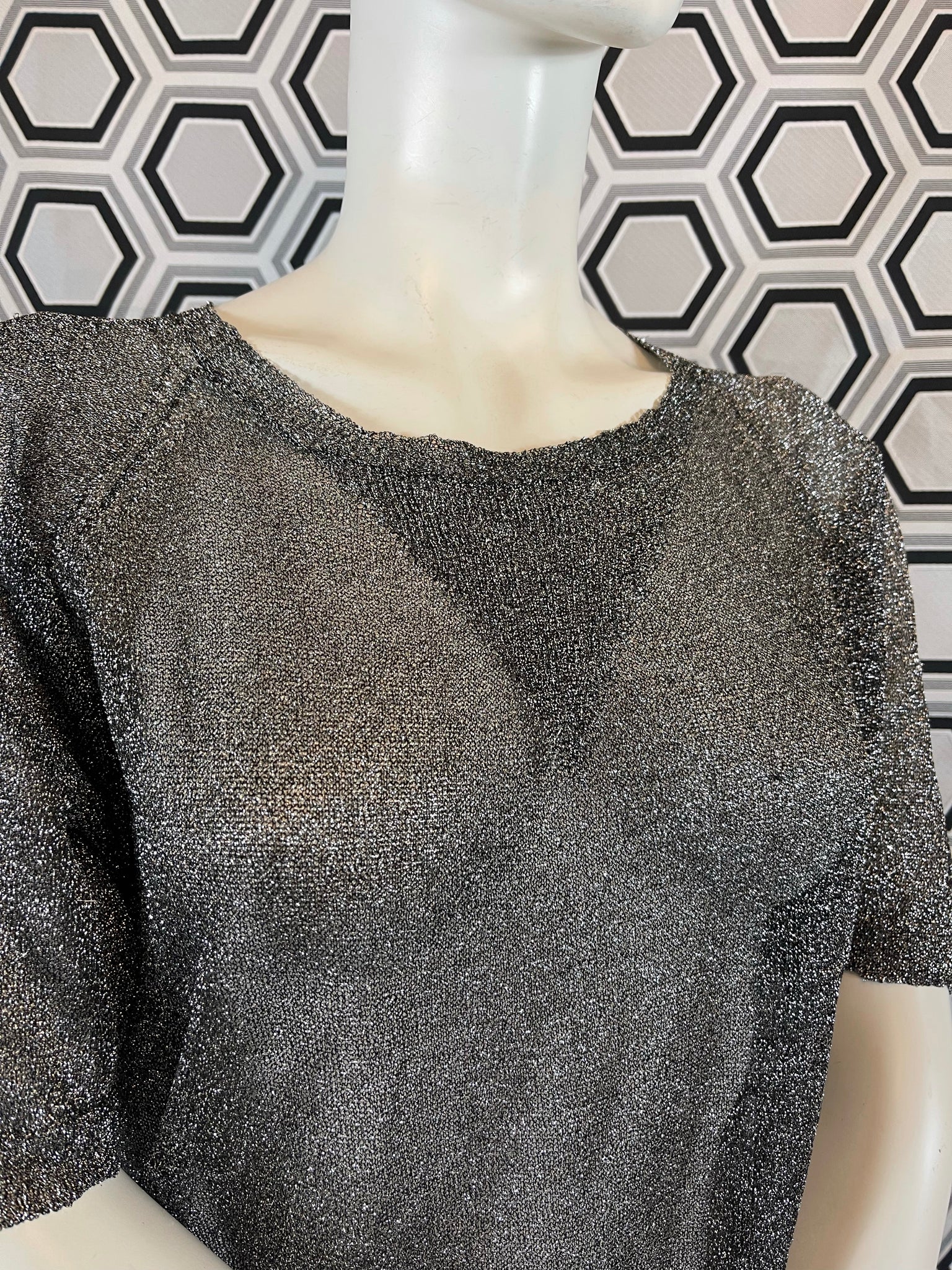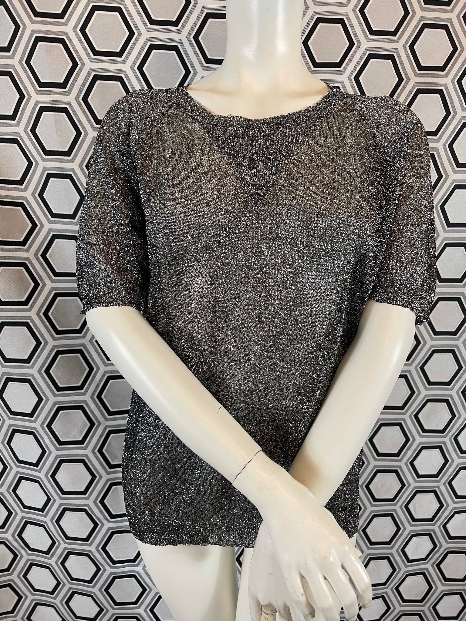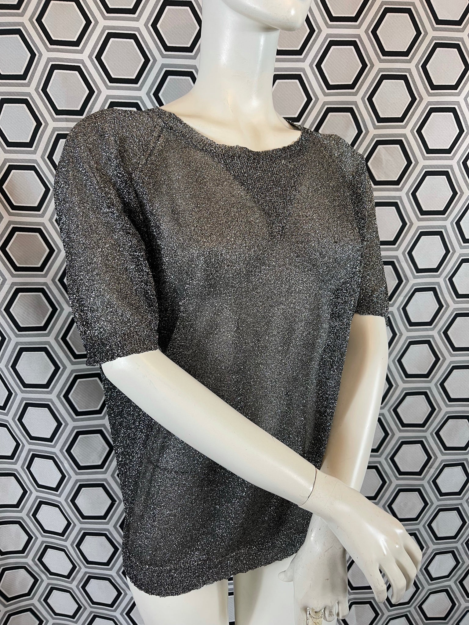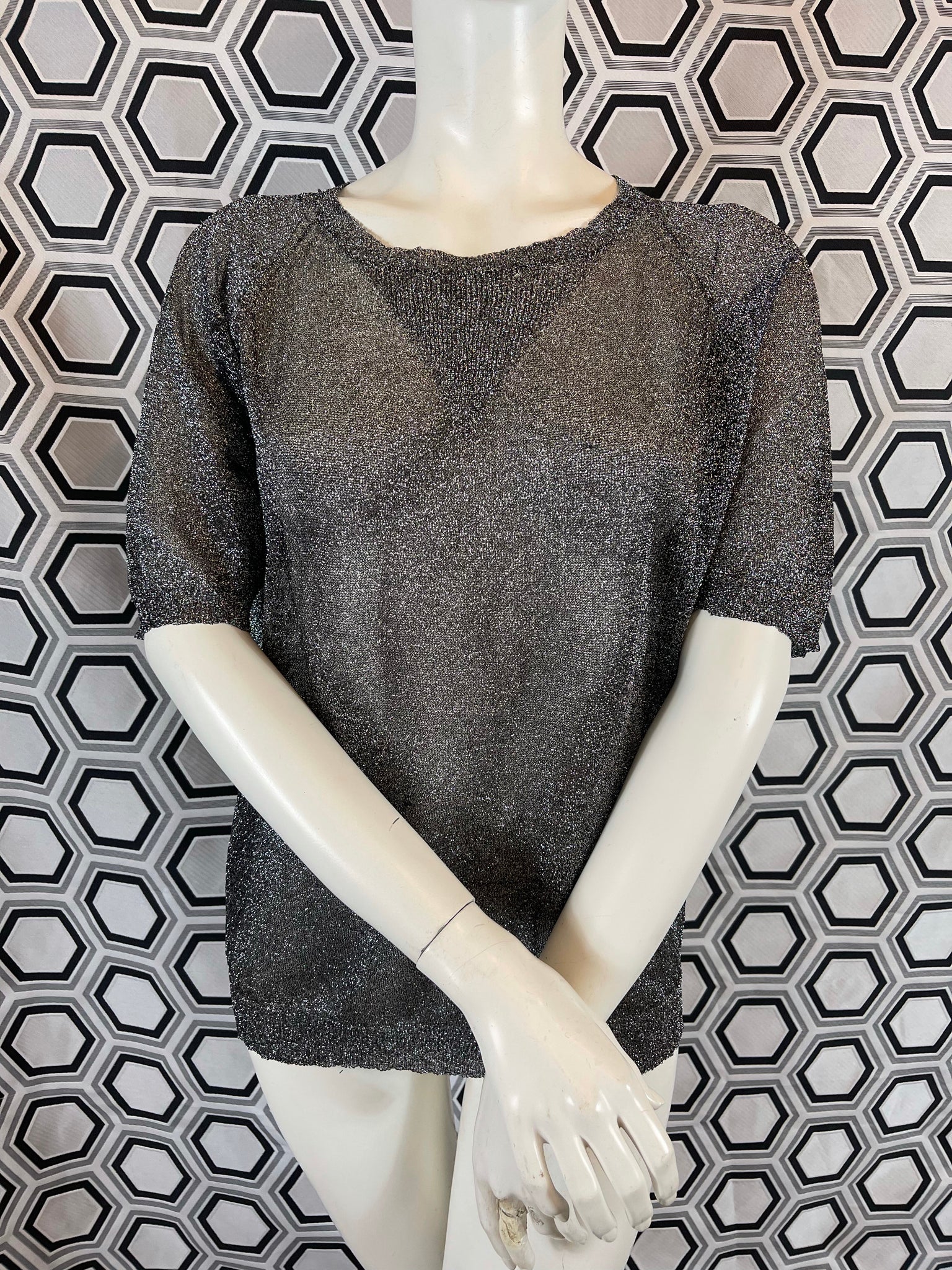 Haut Isabel Marant : maille très fine et vaporeuse, toute en lurex argenté.