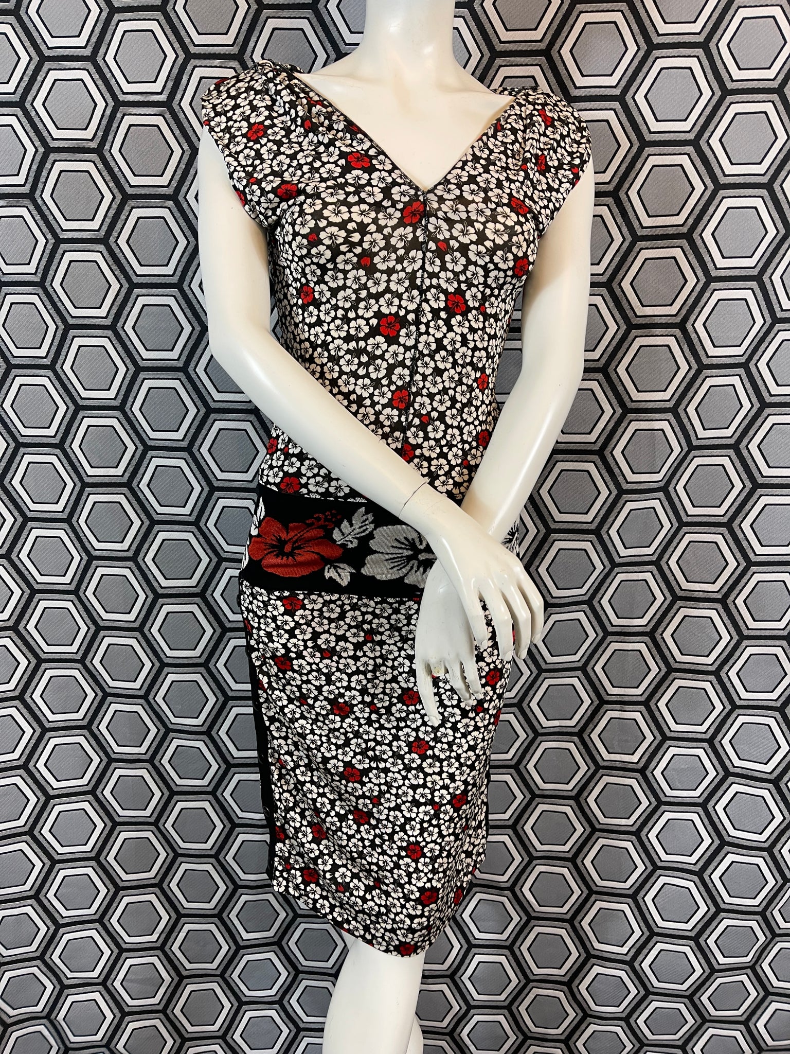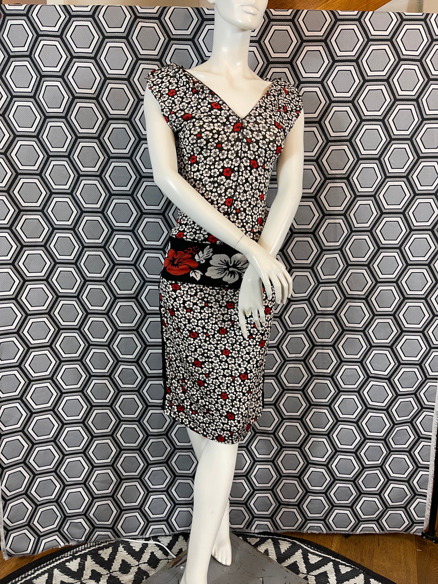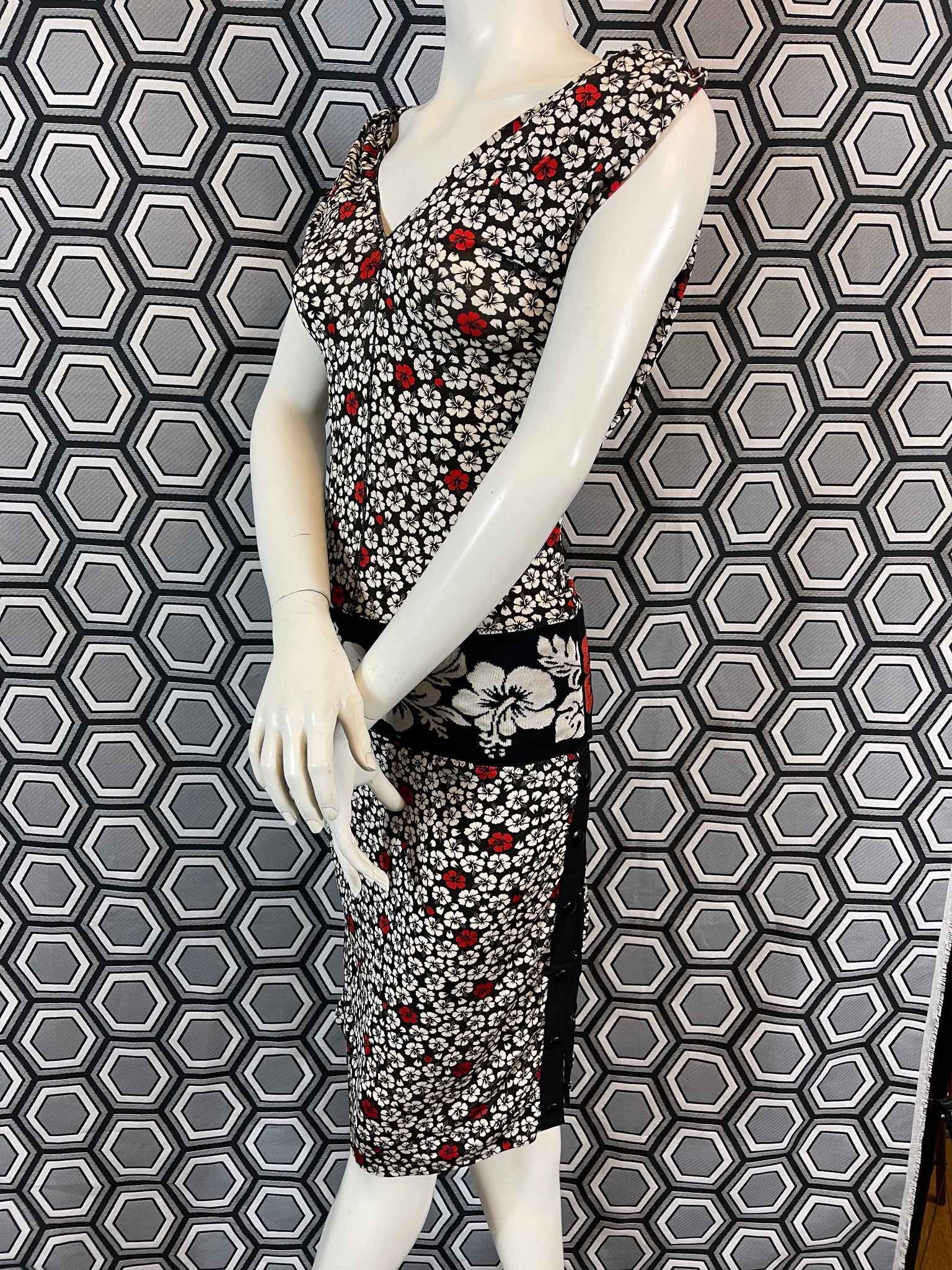 Pas d’étiquette de composition (mais étiquette présente sur la jupe : 96% viscose et 4% élastane).