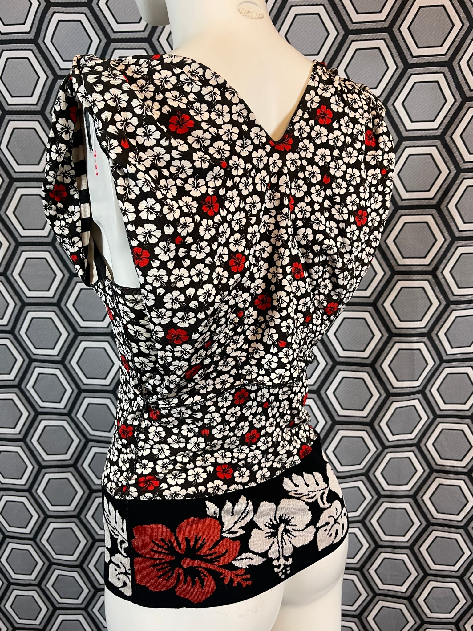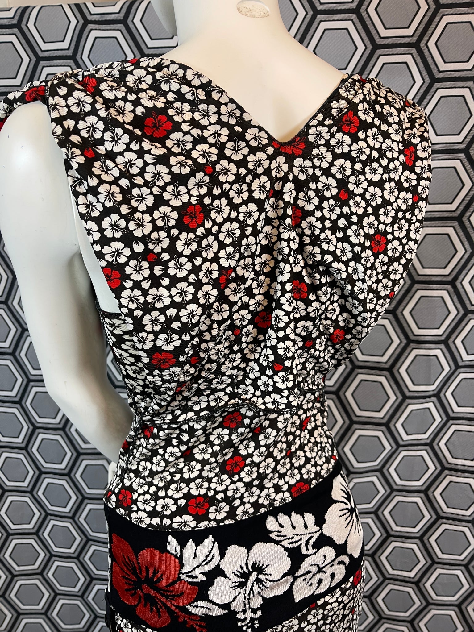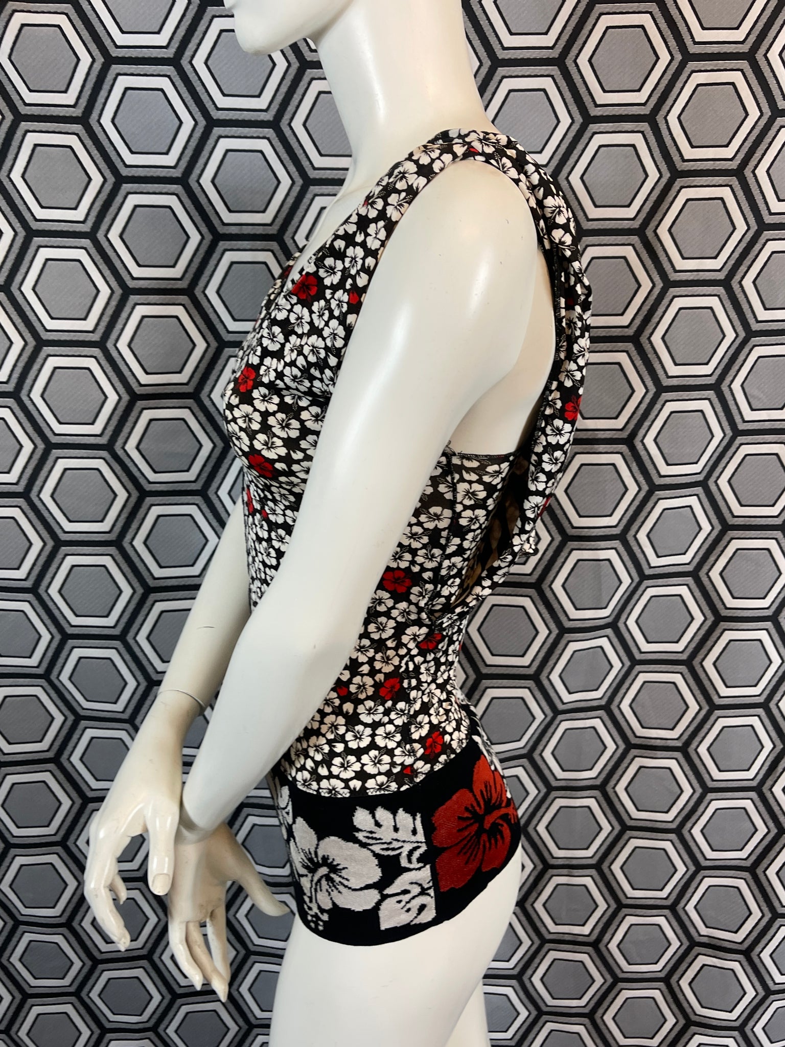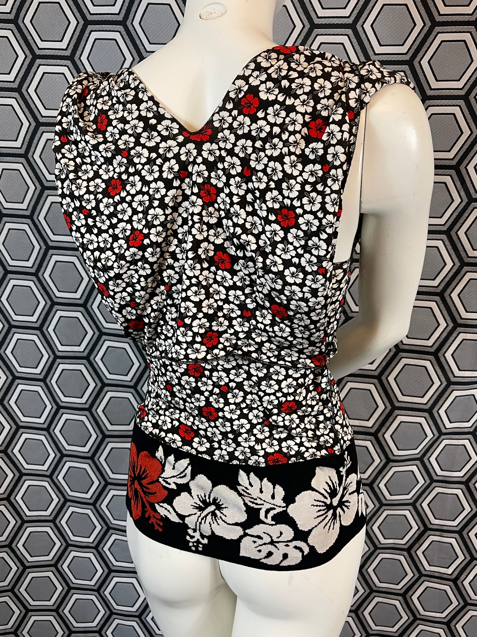 Mesures à plat (matière très extensible) ; largeur sous aisselles 34 cms, largeur taille 36 cms et longueur 62 cms,