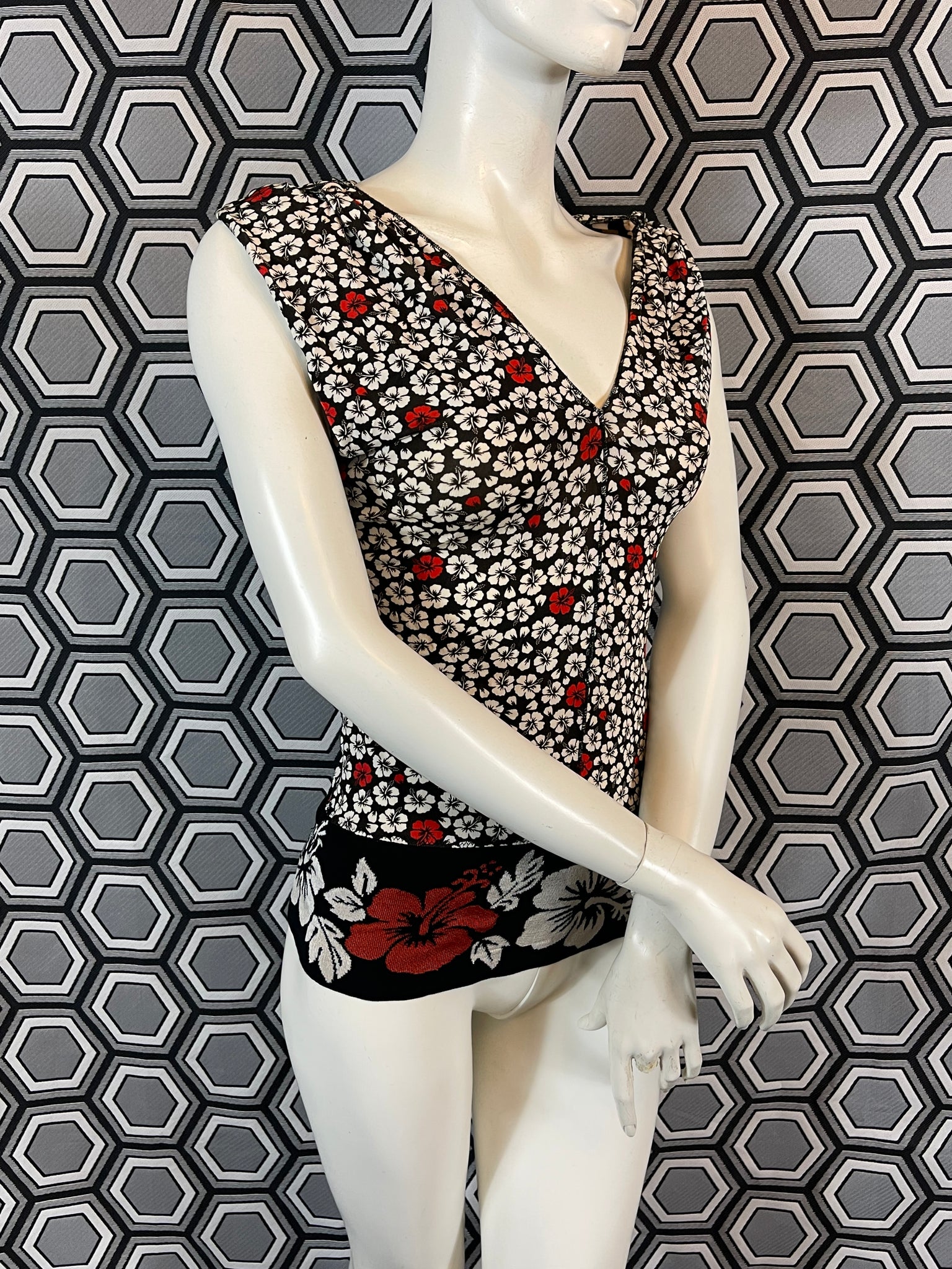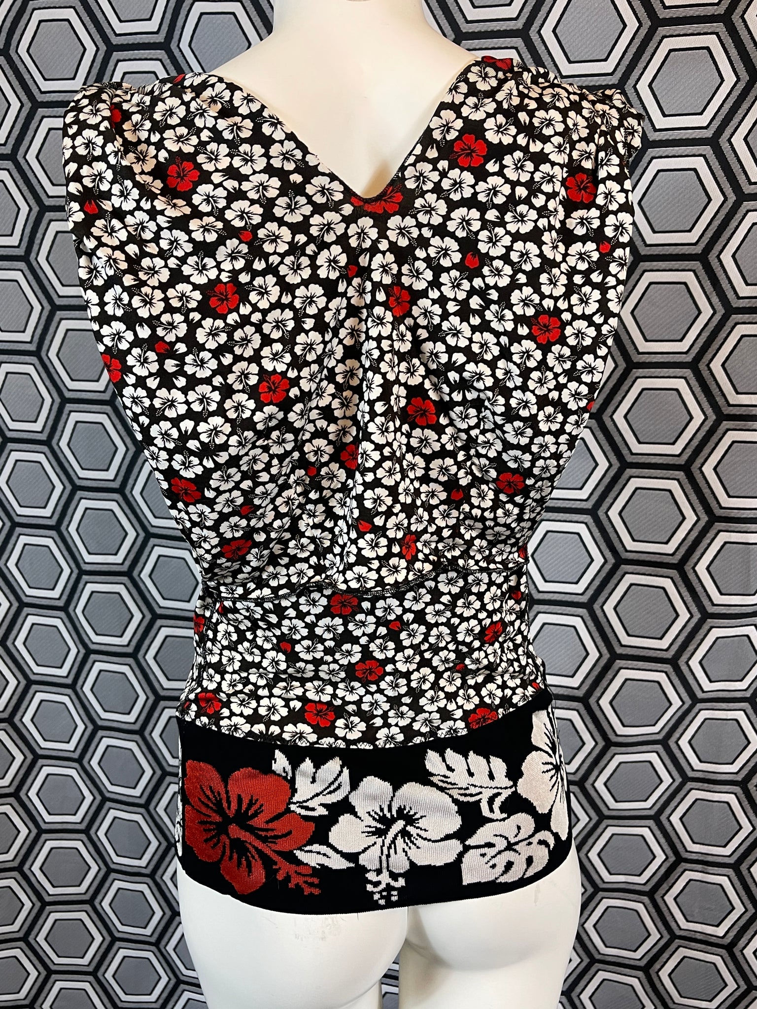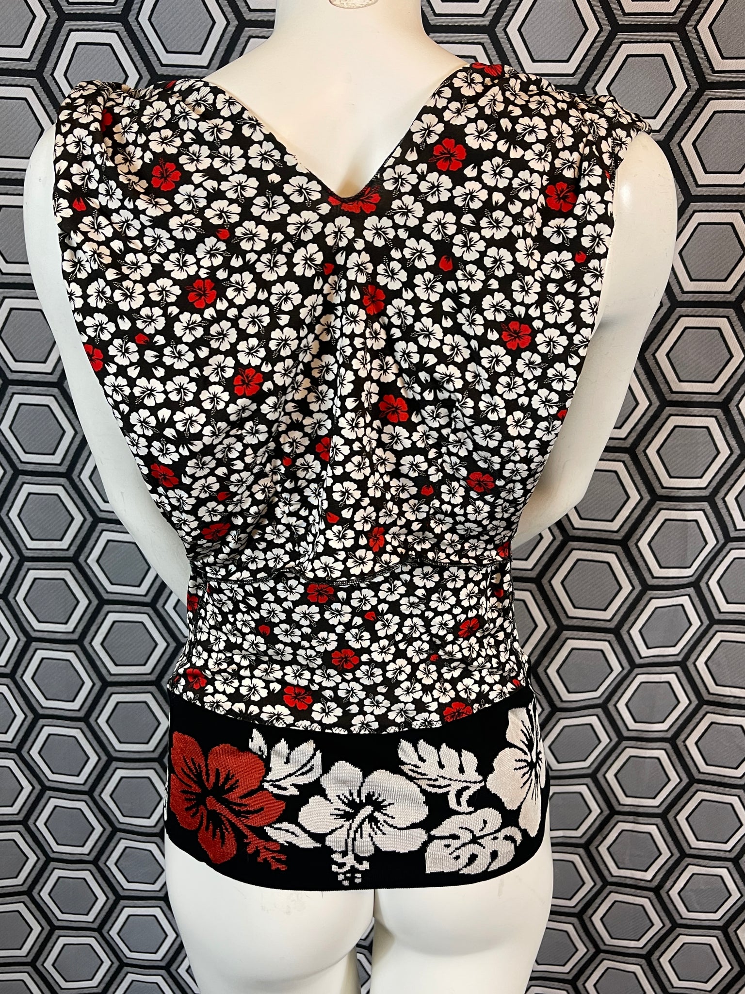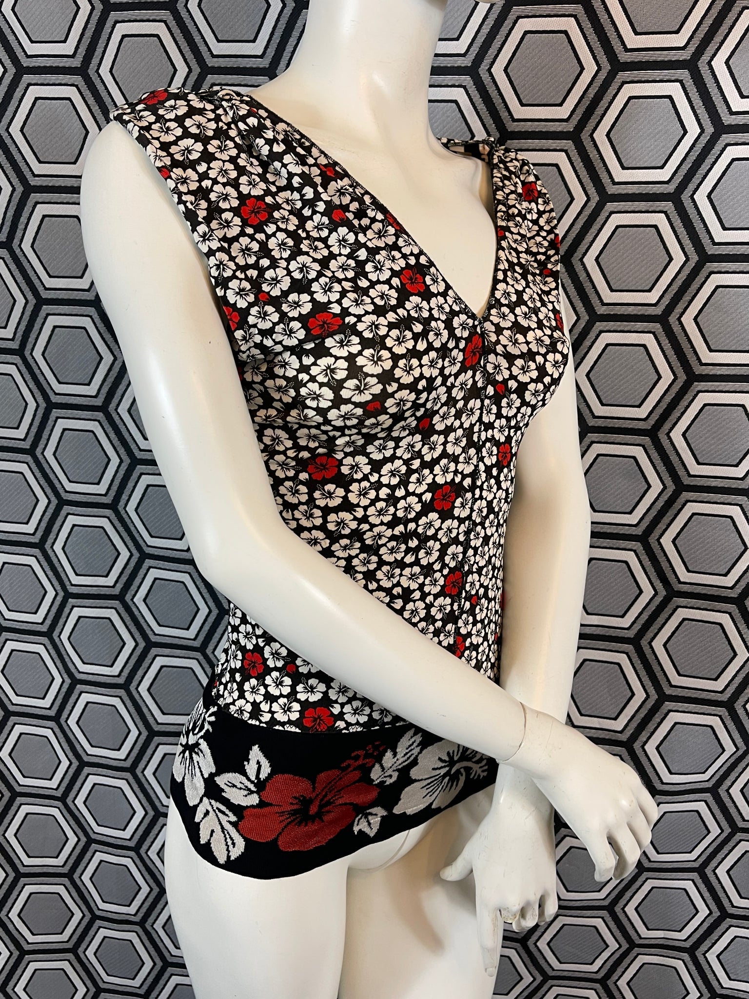 Mesures à plat (matière très extensible) ; largeur sous aisselles 34 cms, largeur taille 36 cms et longueur 62 cms,