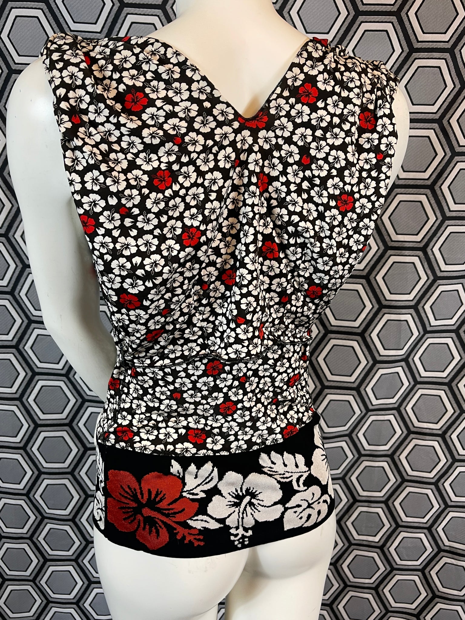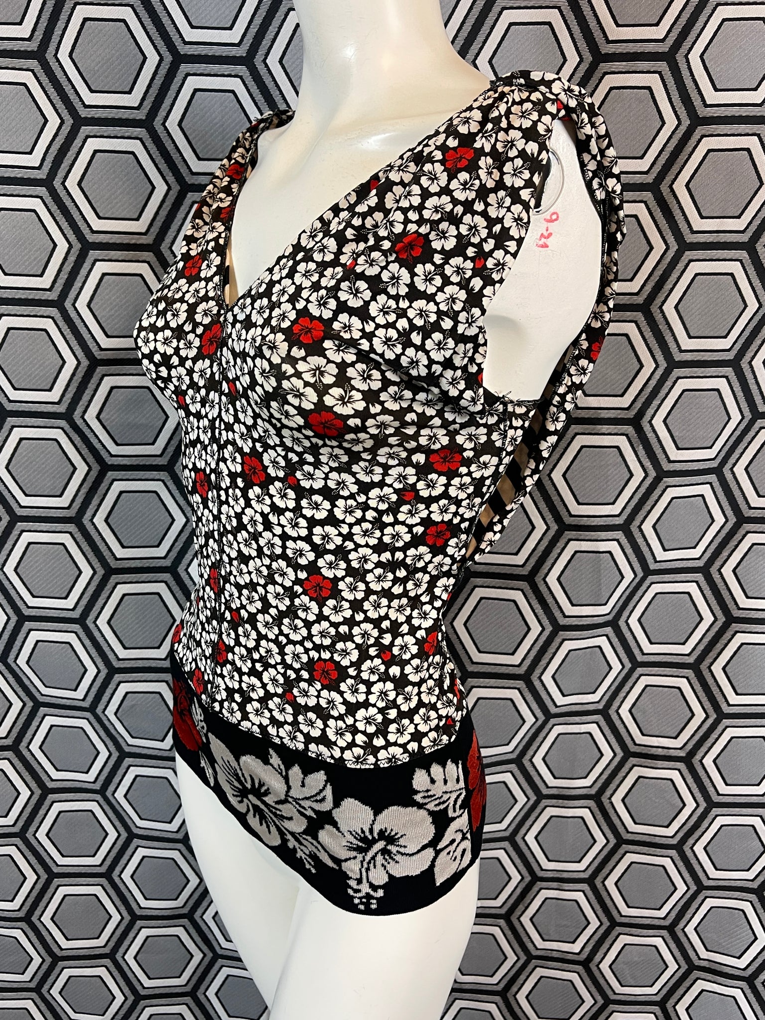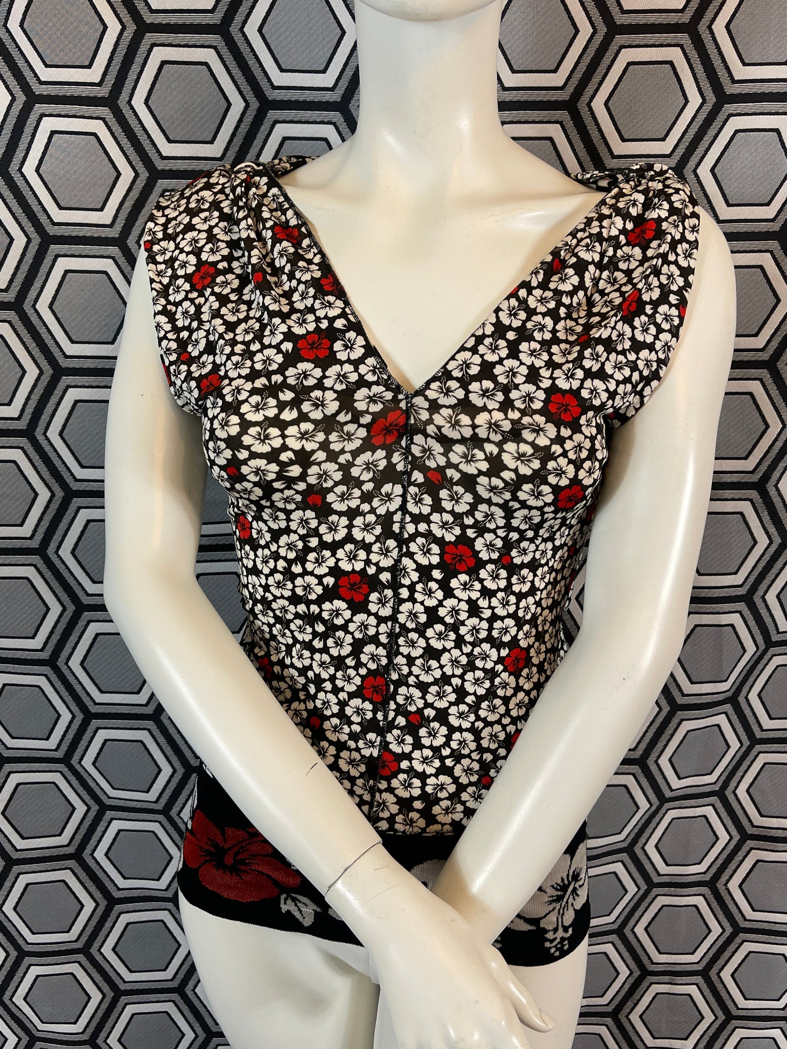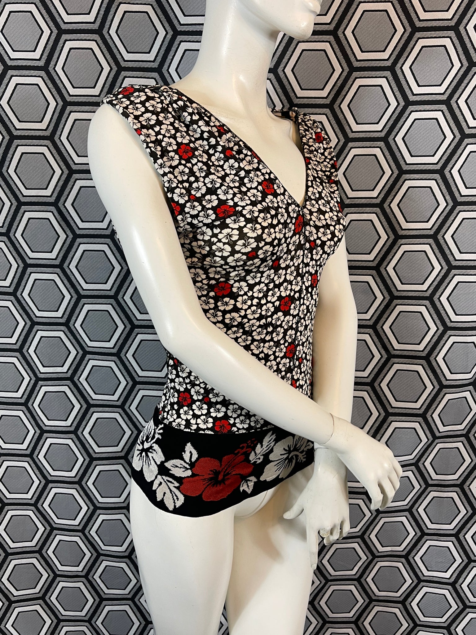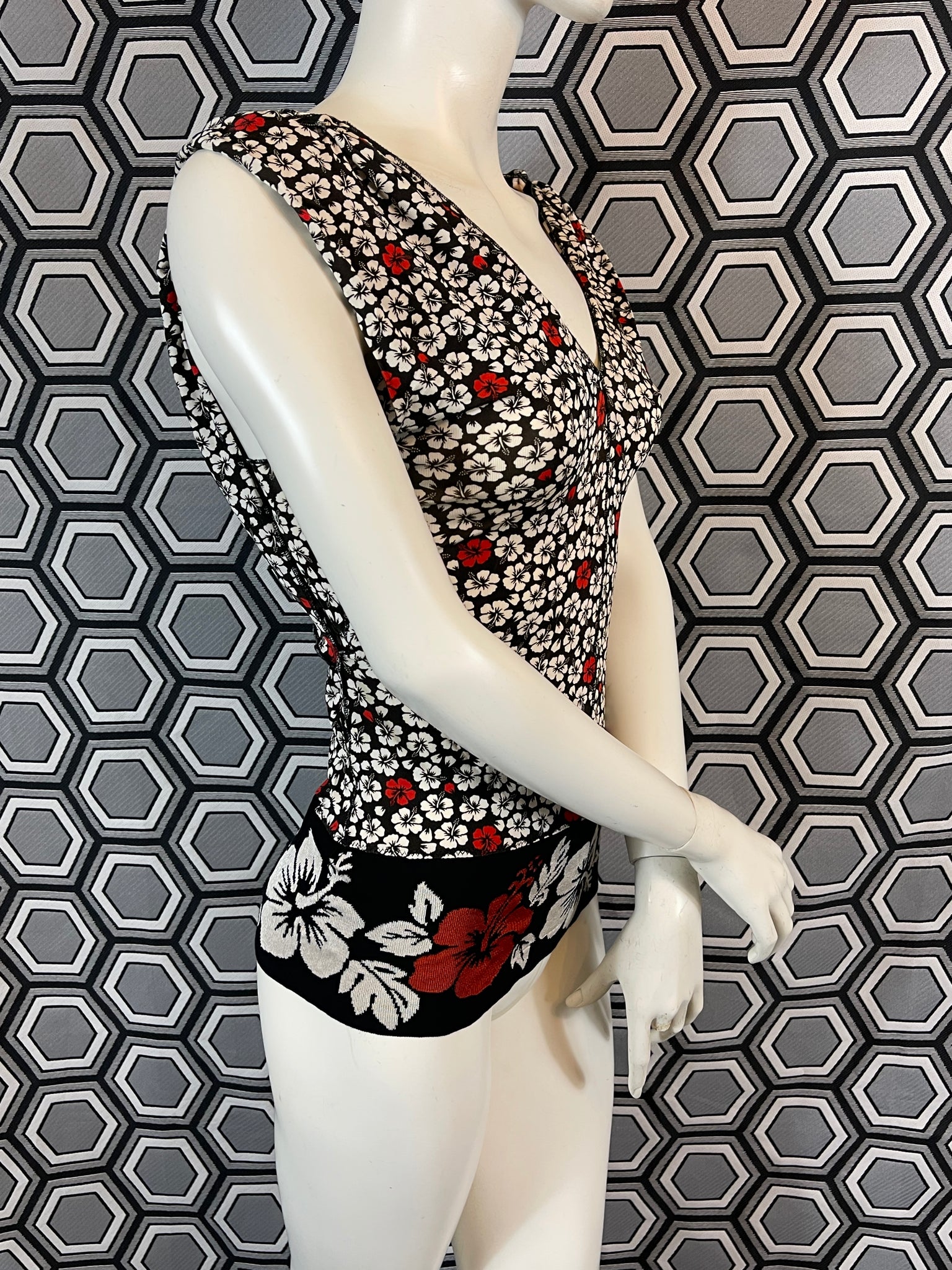 Mesures à plat (matière très extensible) ; largeur sous aisselles 34 cms, largeur taille 36 cms et longueur 62 cms,