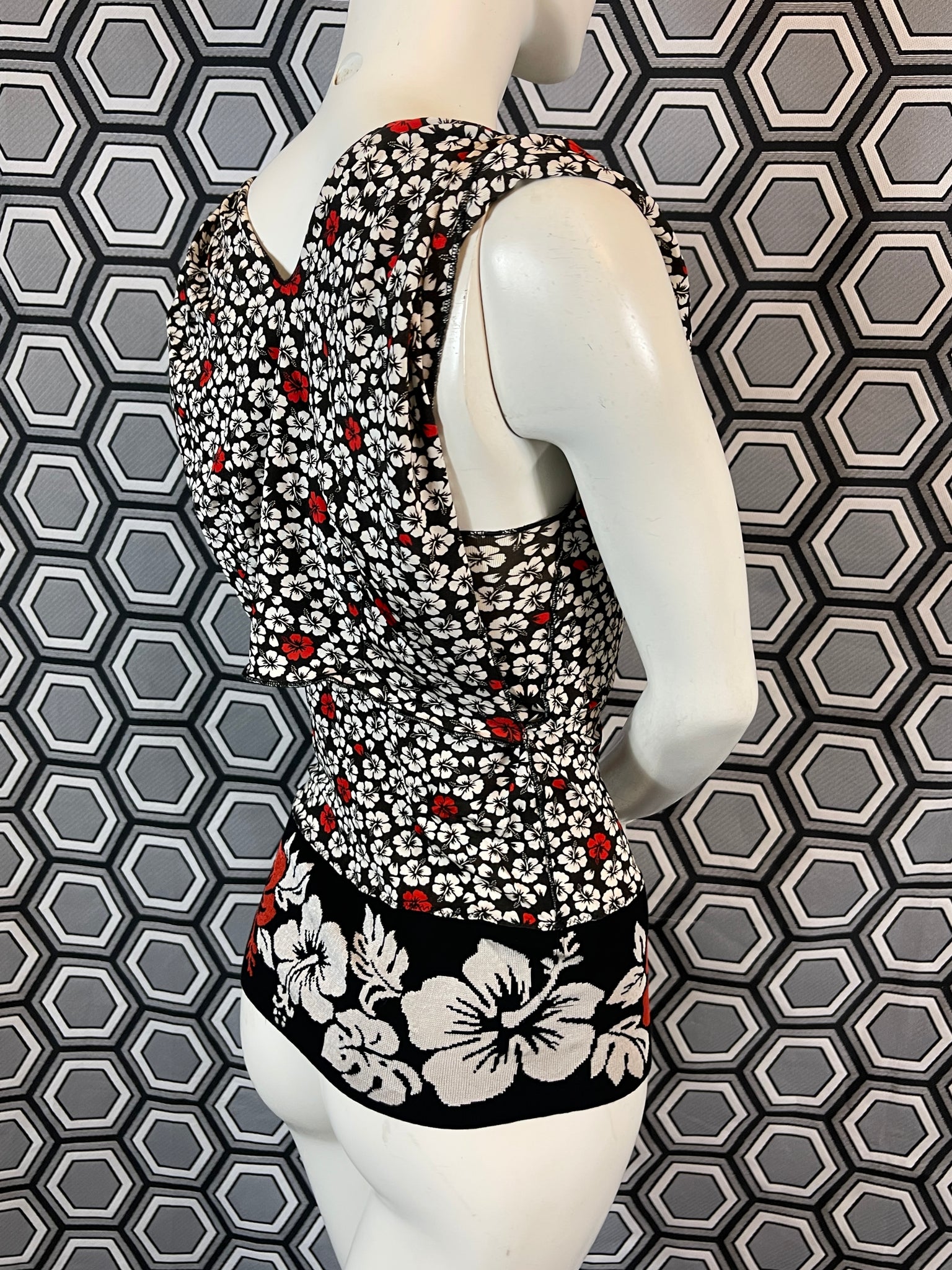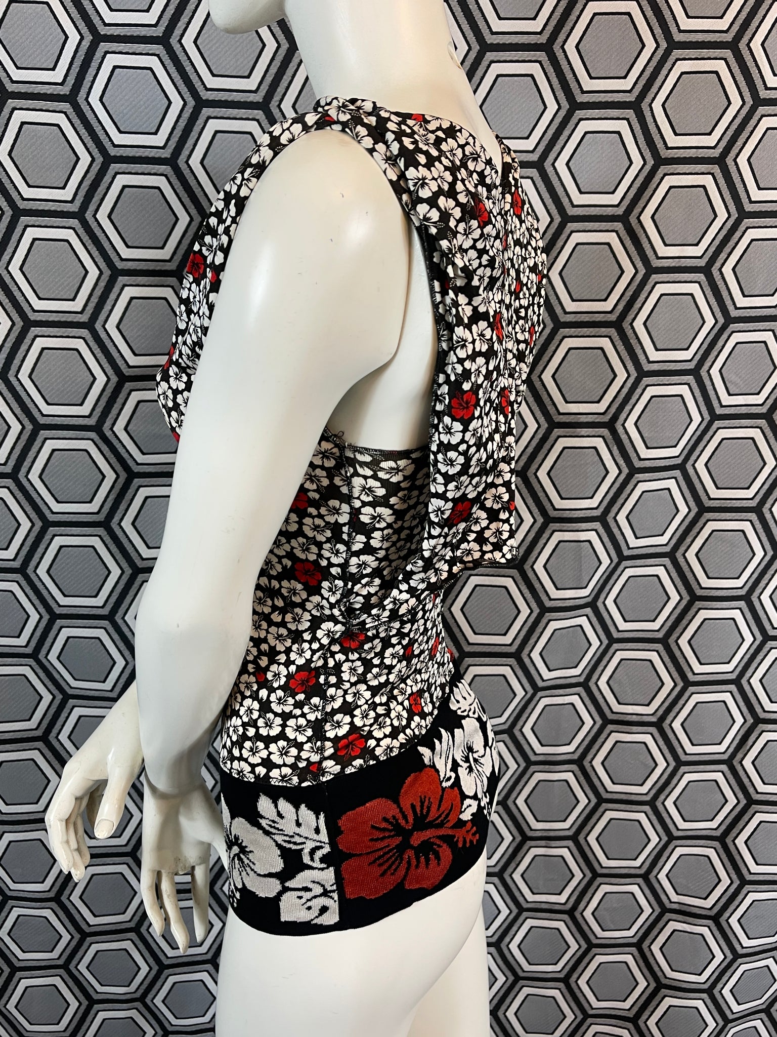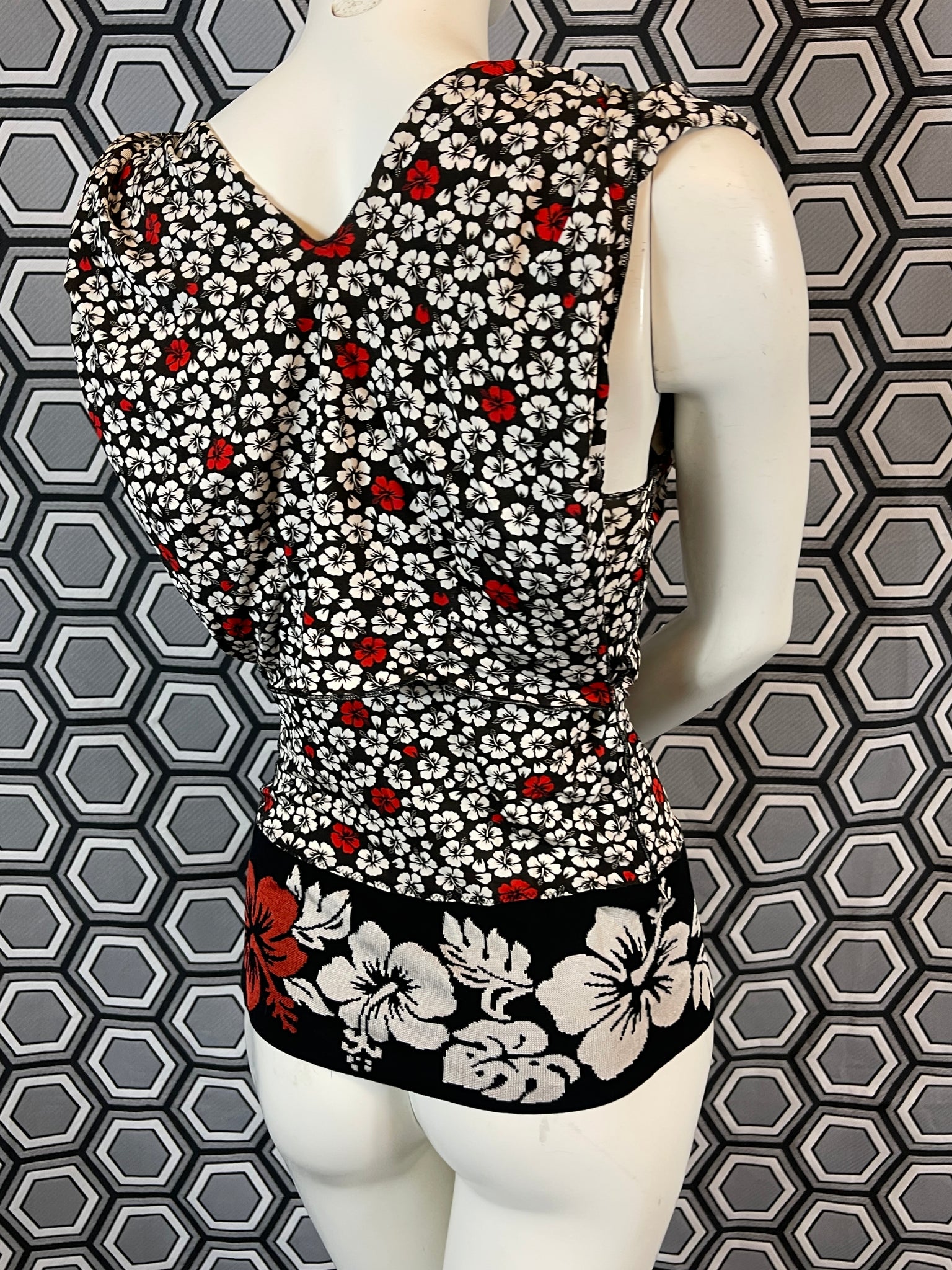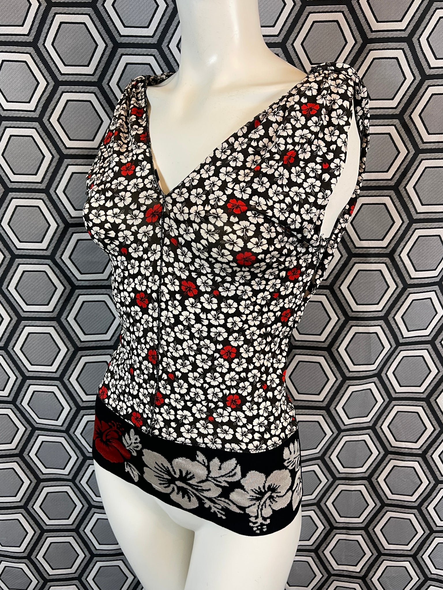 Mesures à plat (matière très extensible) ; largeur sous aisselles 34 cms, largeur taille 36 cms et longueur 62 cms,