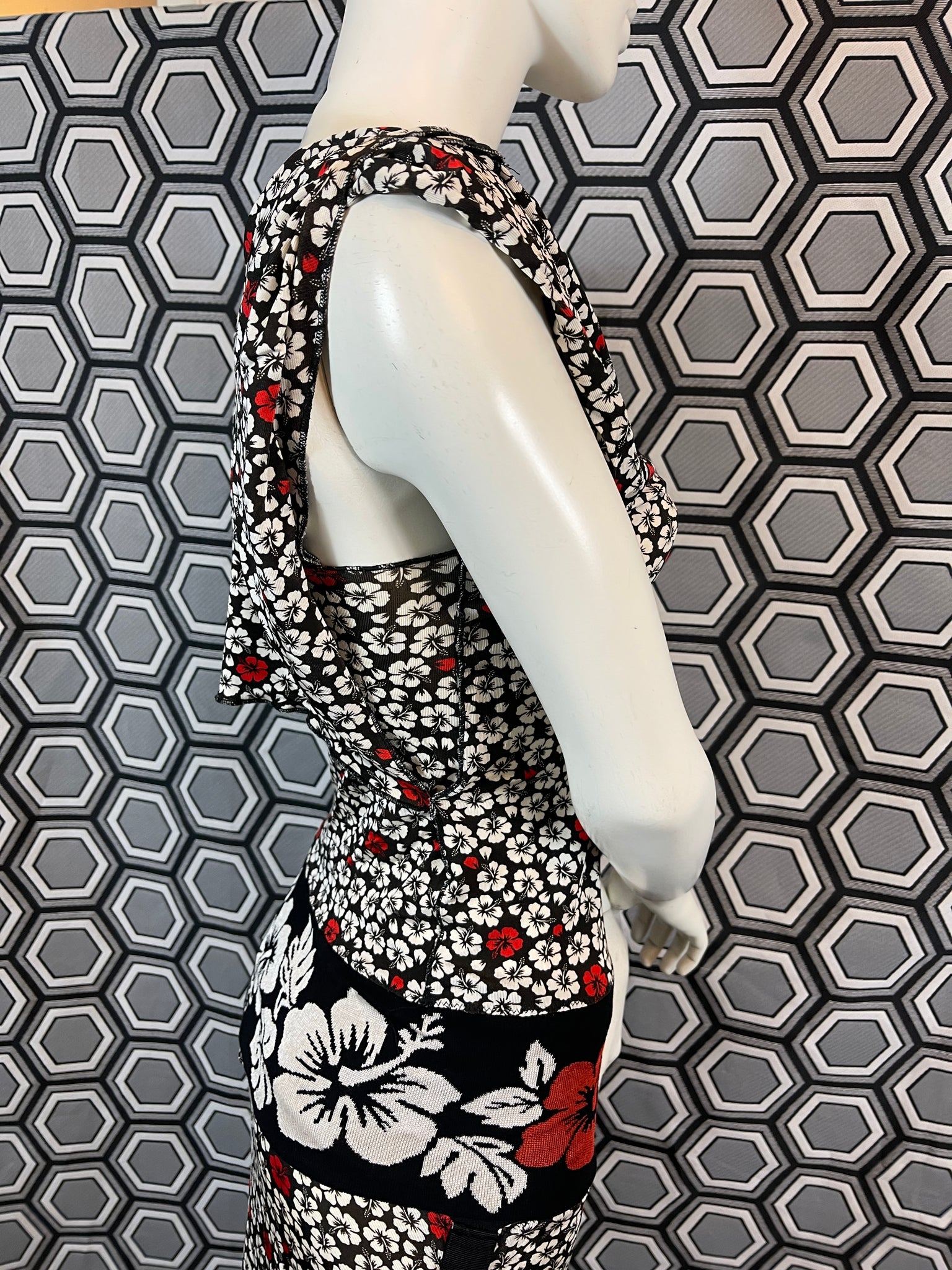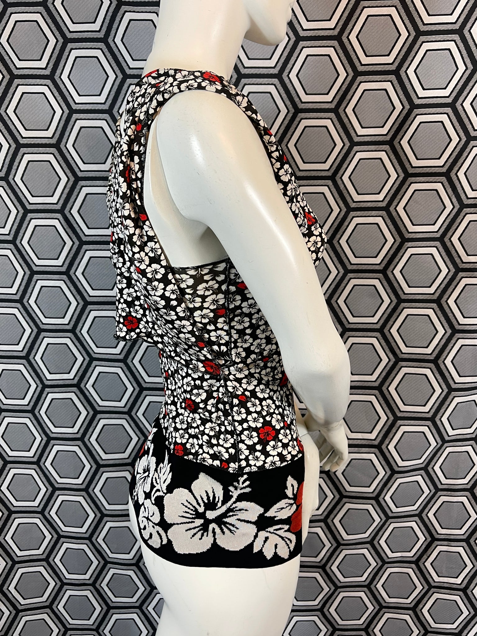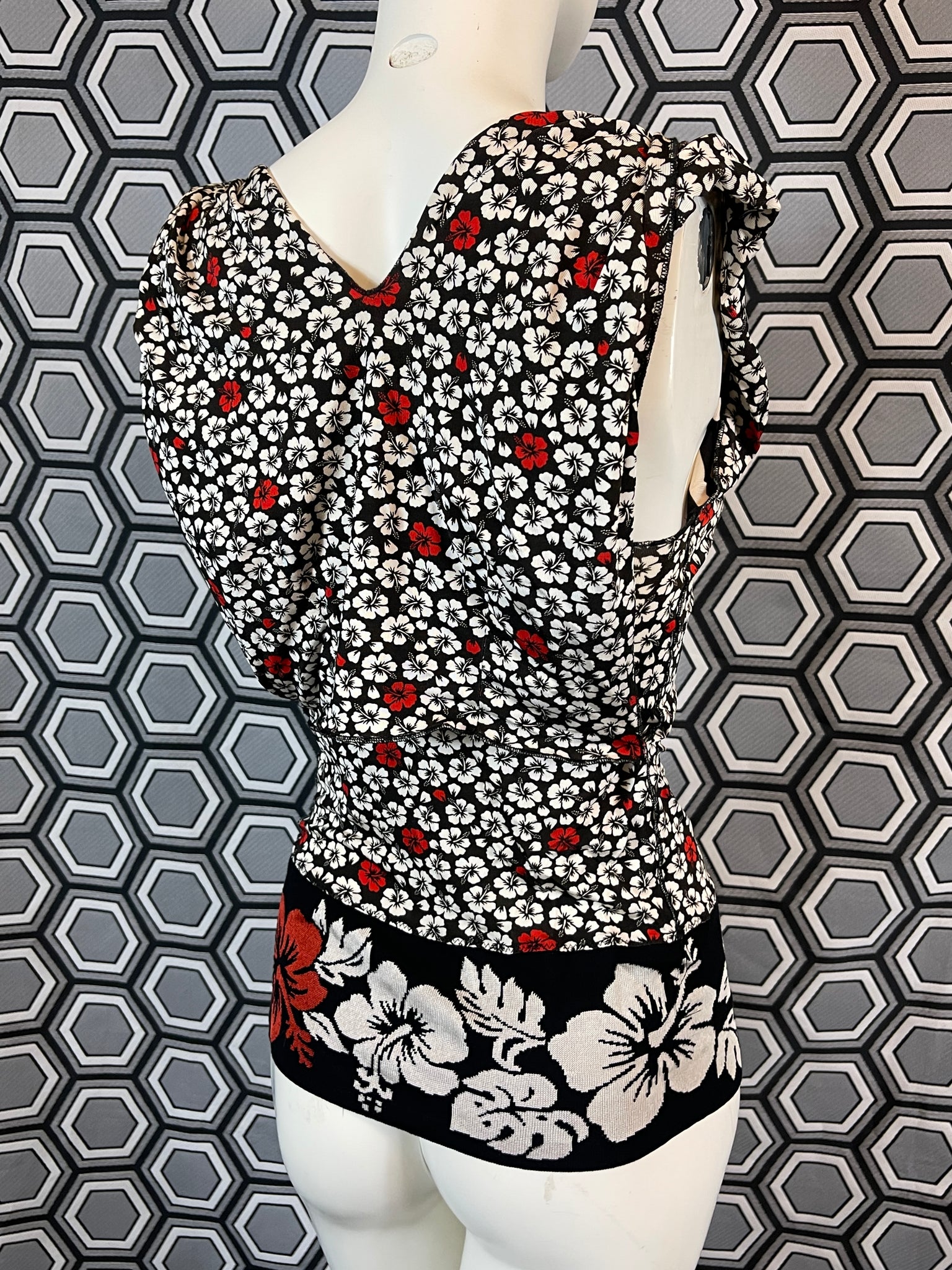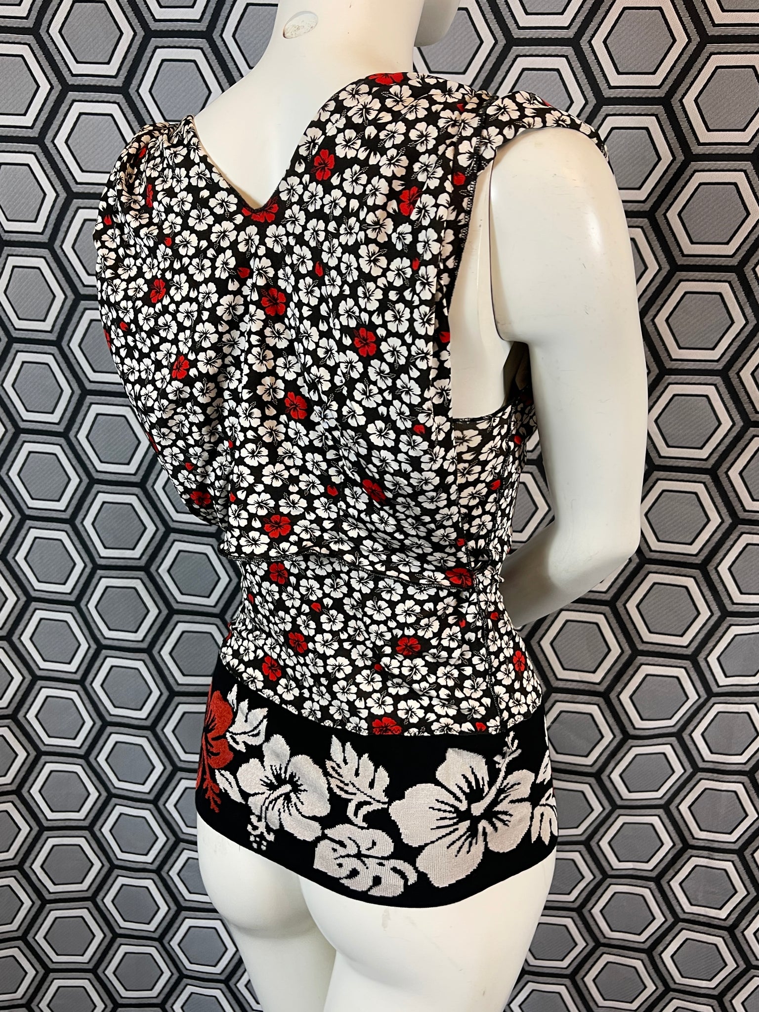 Mesures à plat (matière très extensible) ; largeur sous aisselles 34 cms, largeur taille 36 cms et longueur 62 cms,