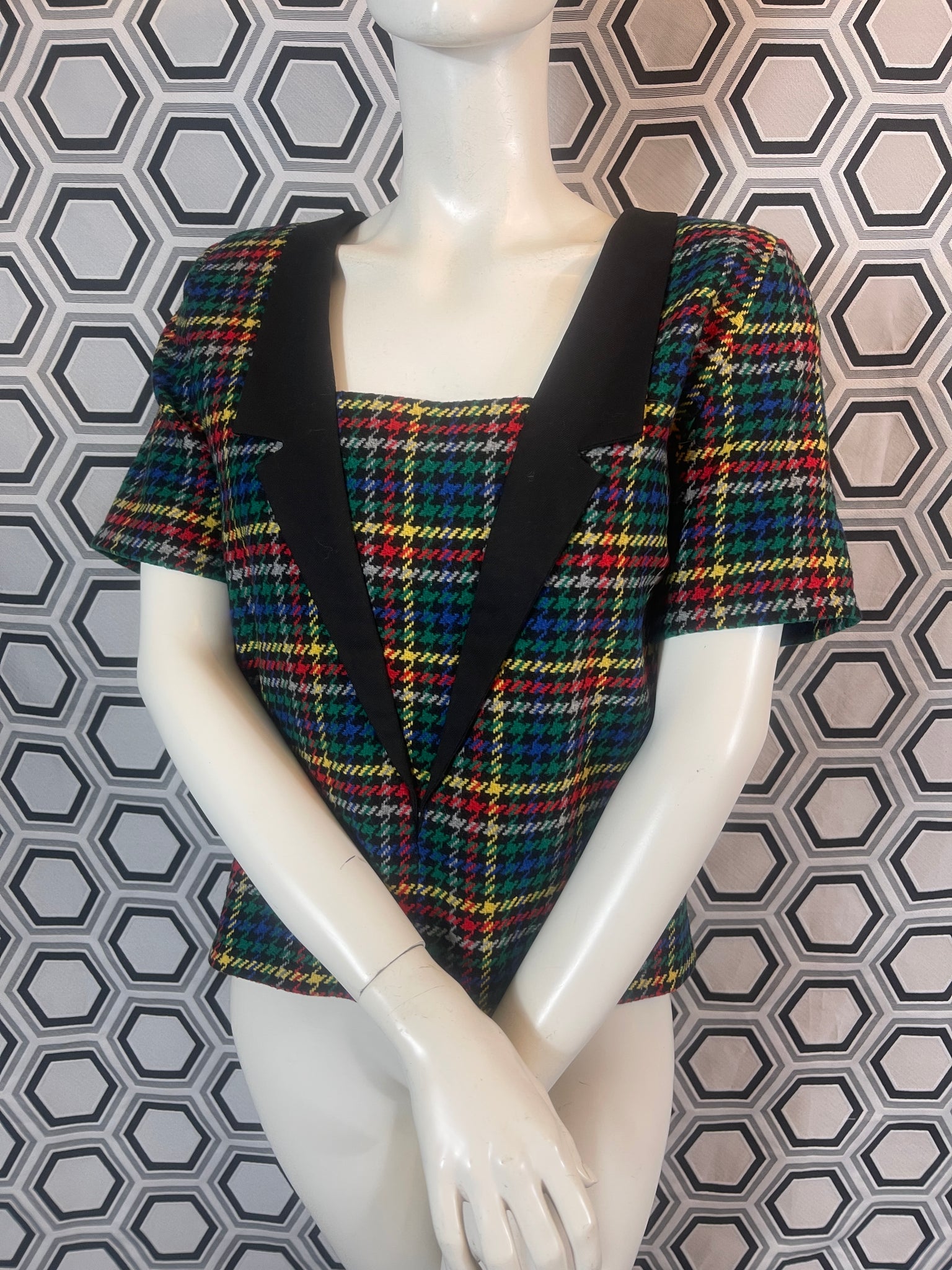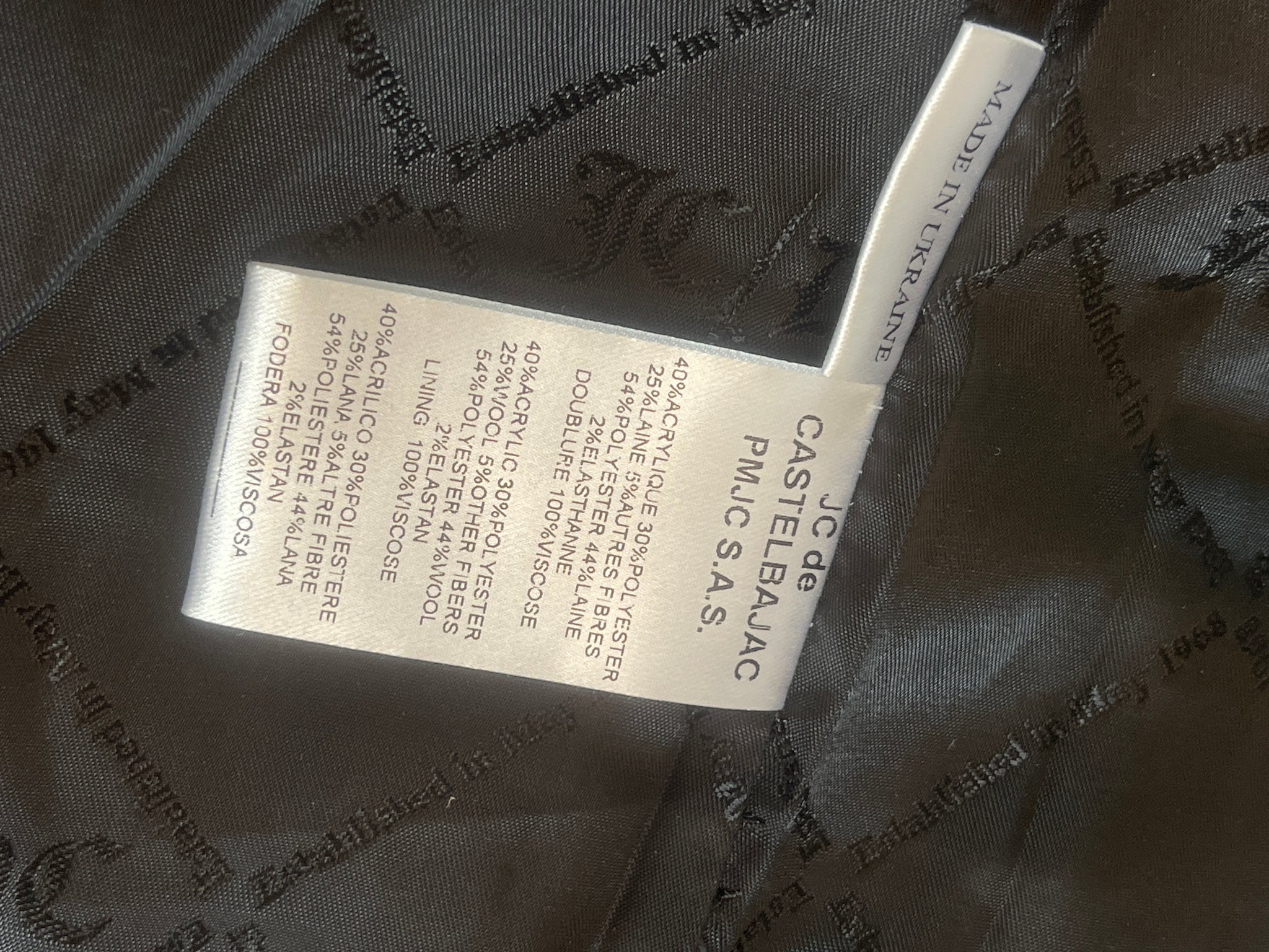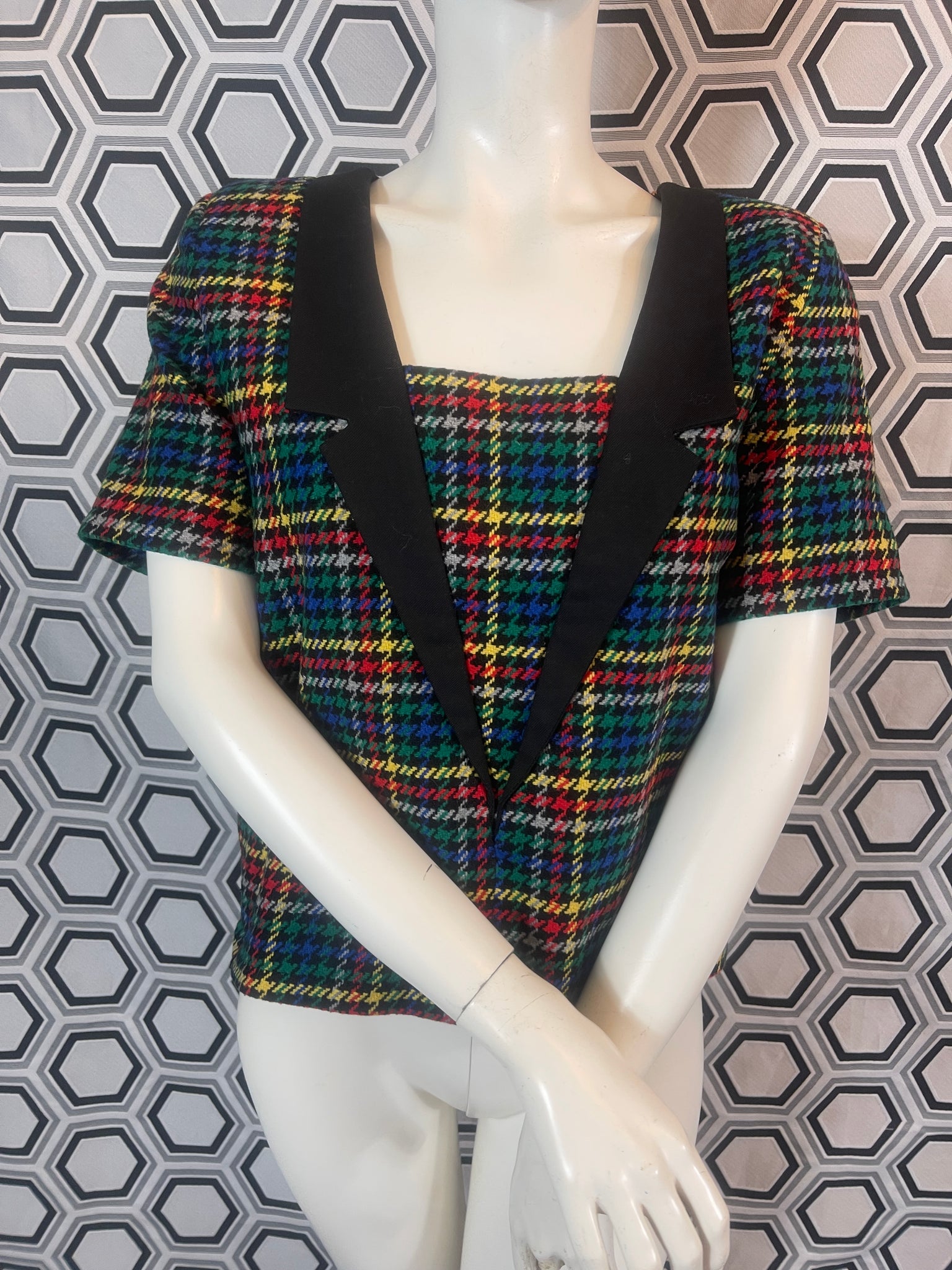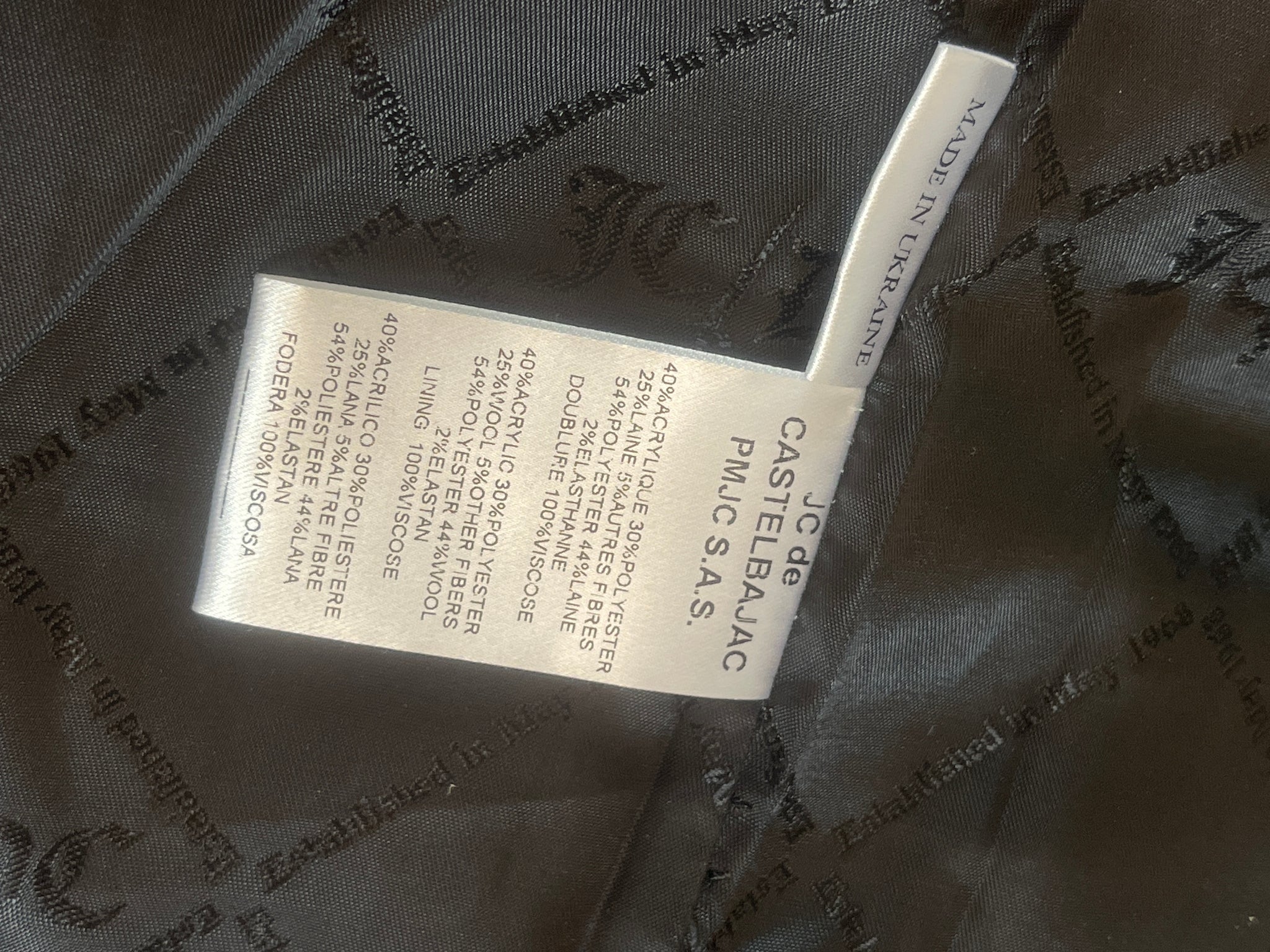 Mesures à plat : largeur épaules 38 cms, largeur sous aisselles 49 cms, largeur taille 48 cms et longueur 56 cms.
