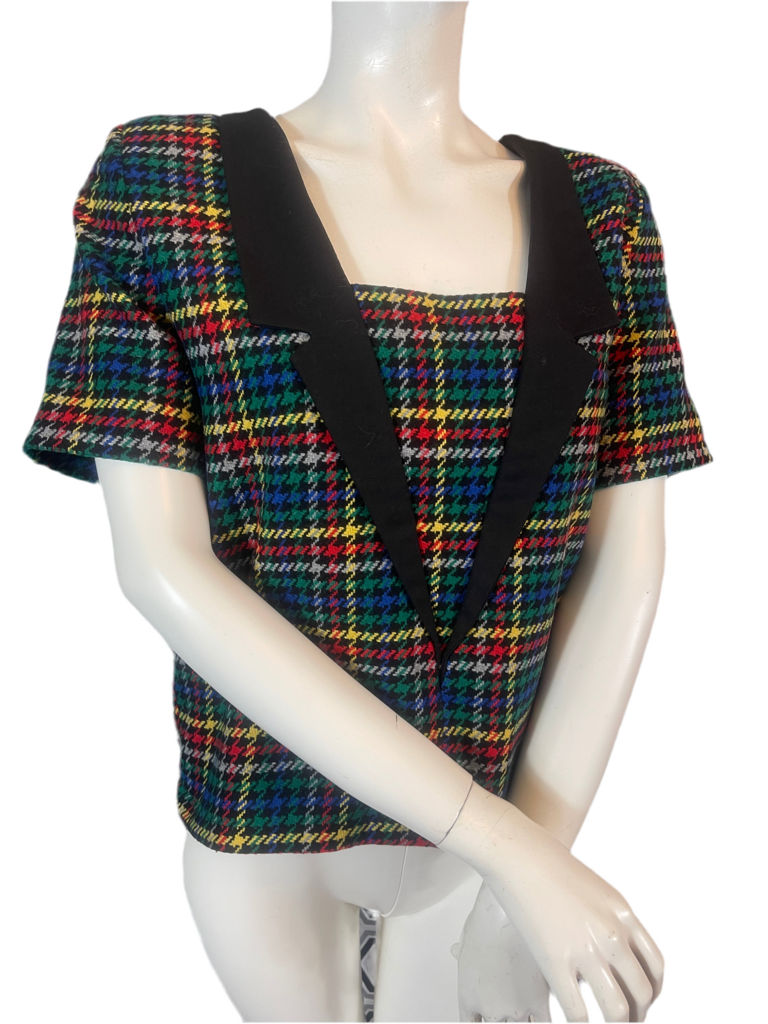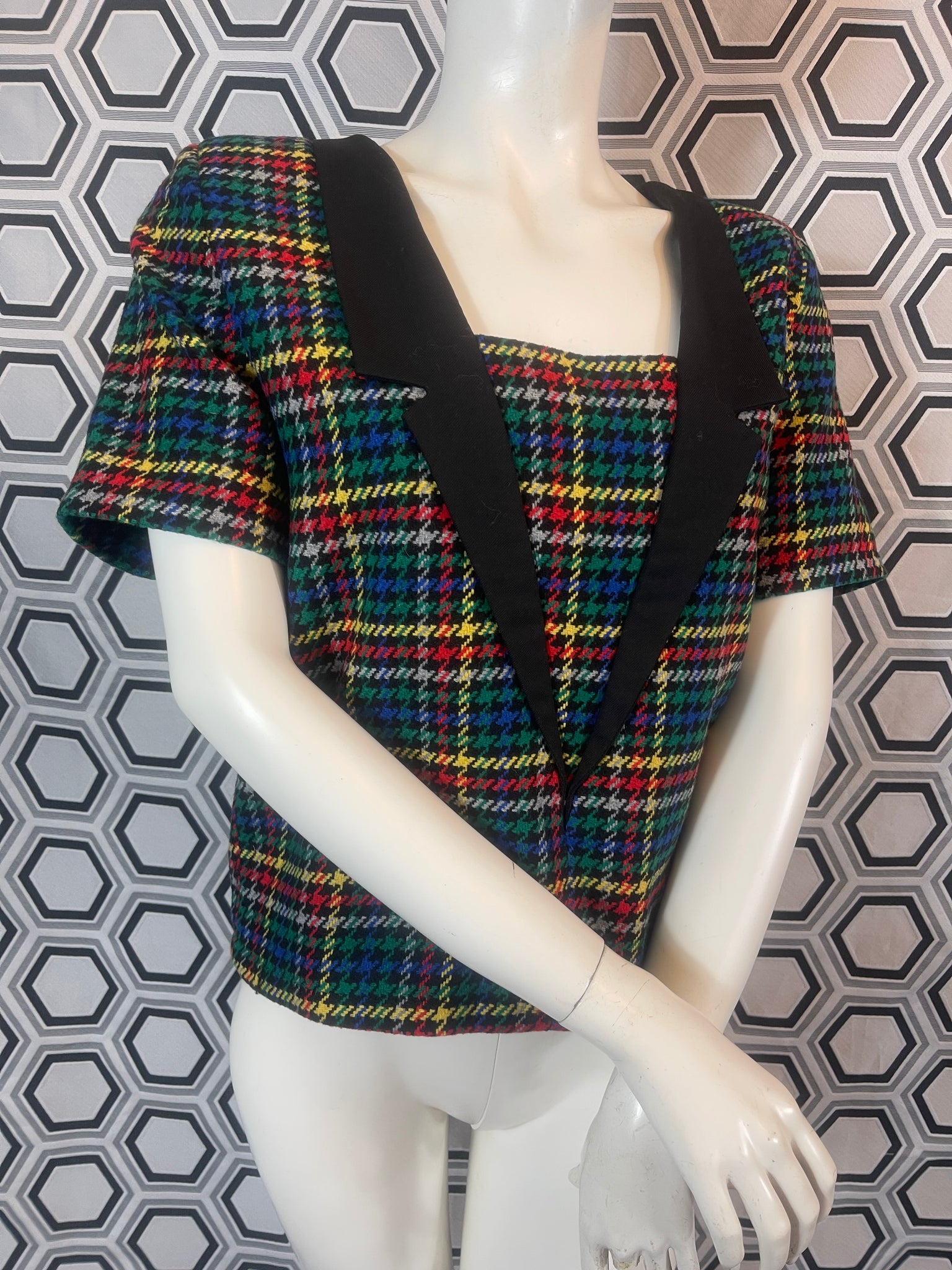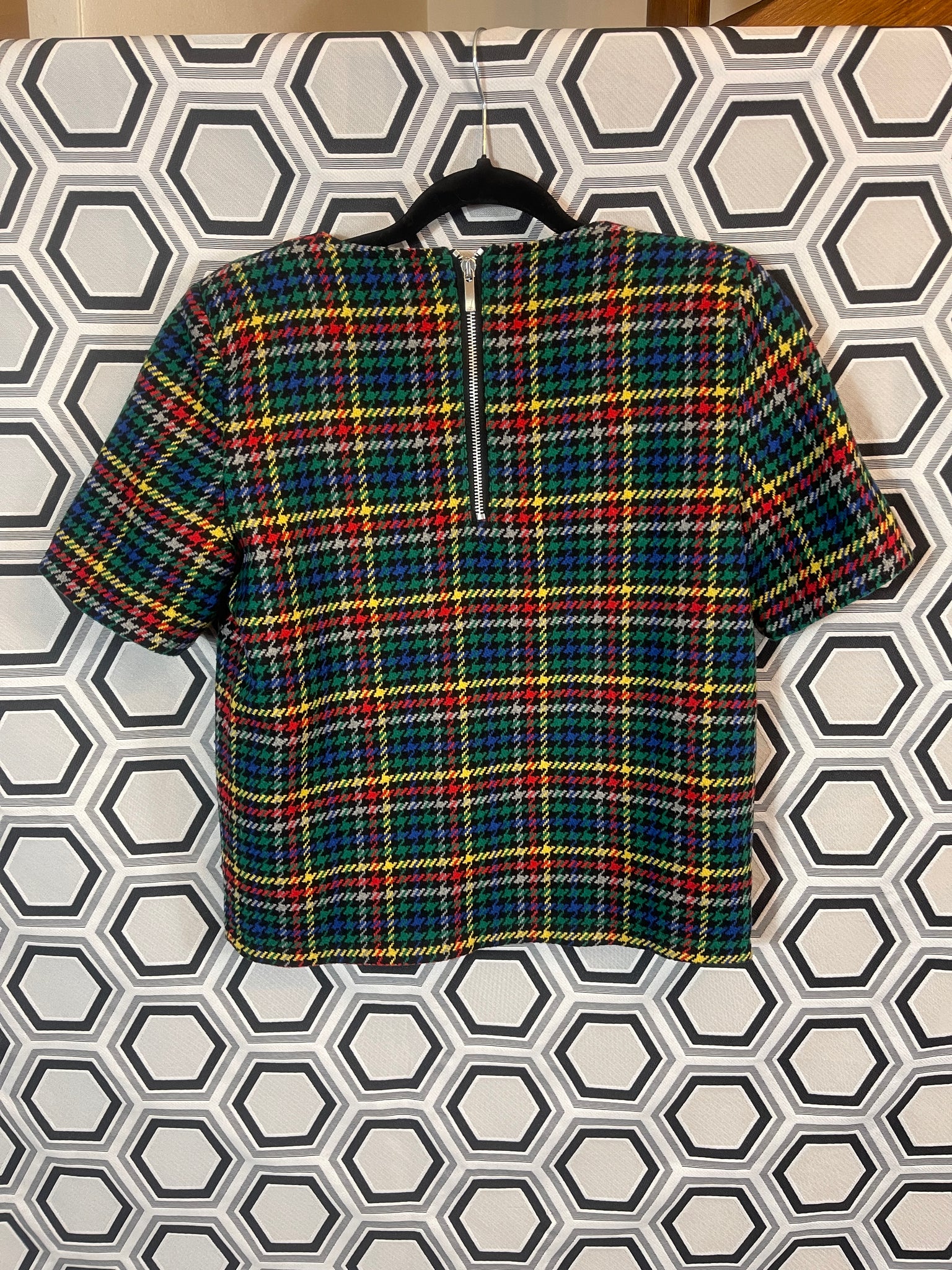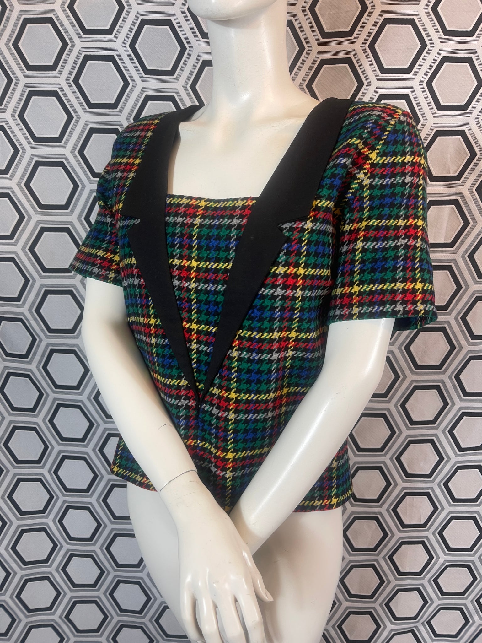 Mesures à plat : largeur épaules 38 cms, largeur sous aisselles 49 cms, largeur taille 48 cms et longueur 56 cms.
