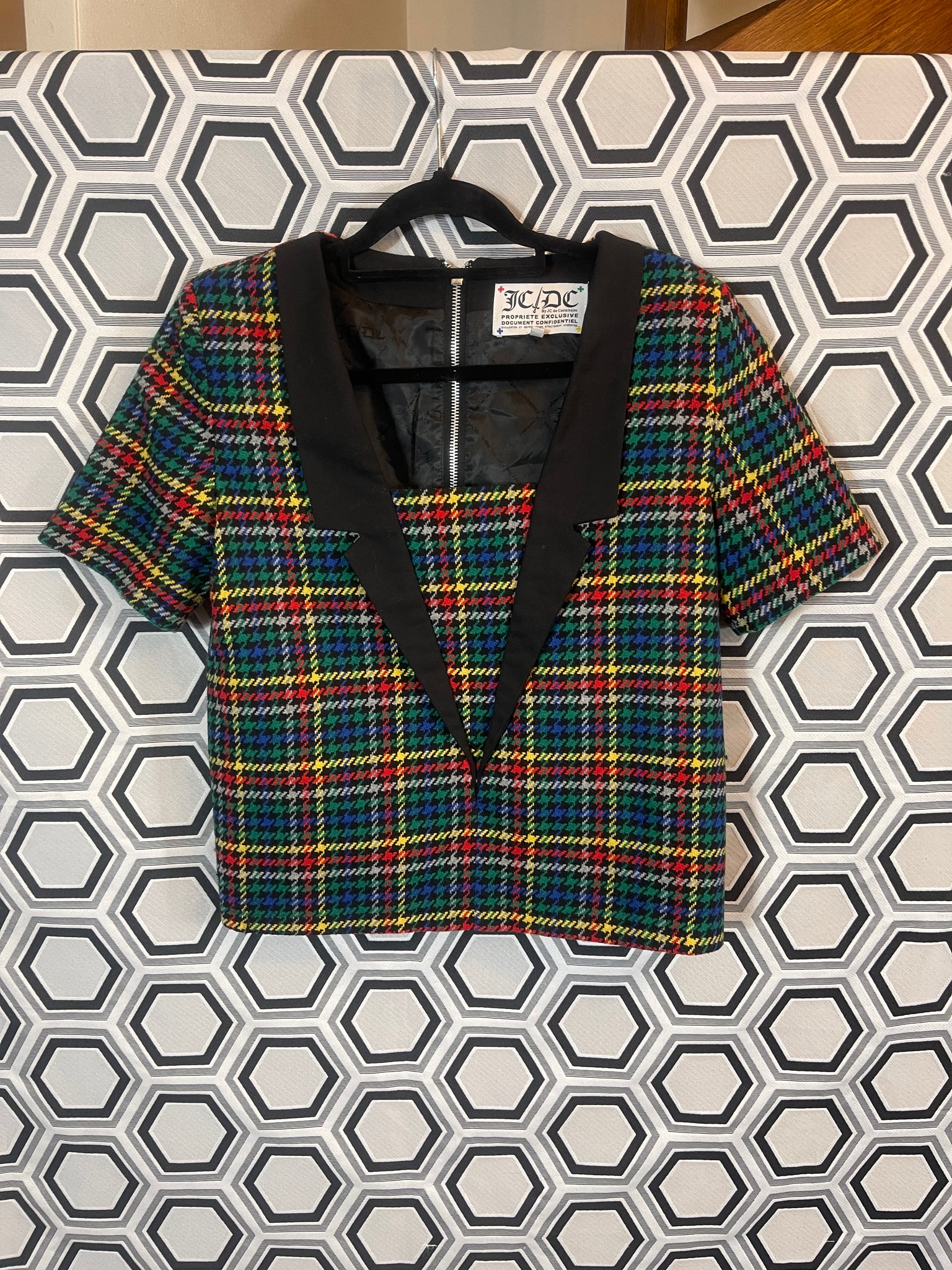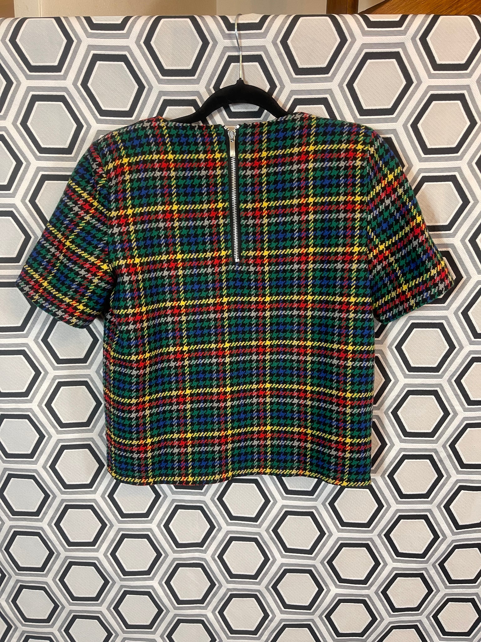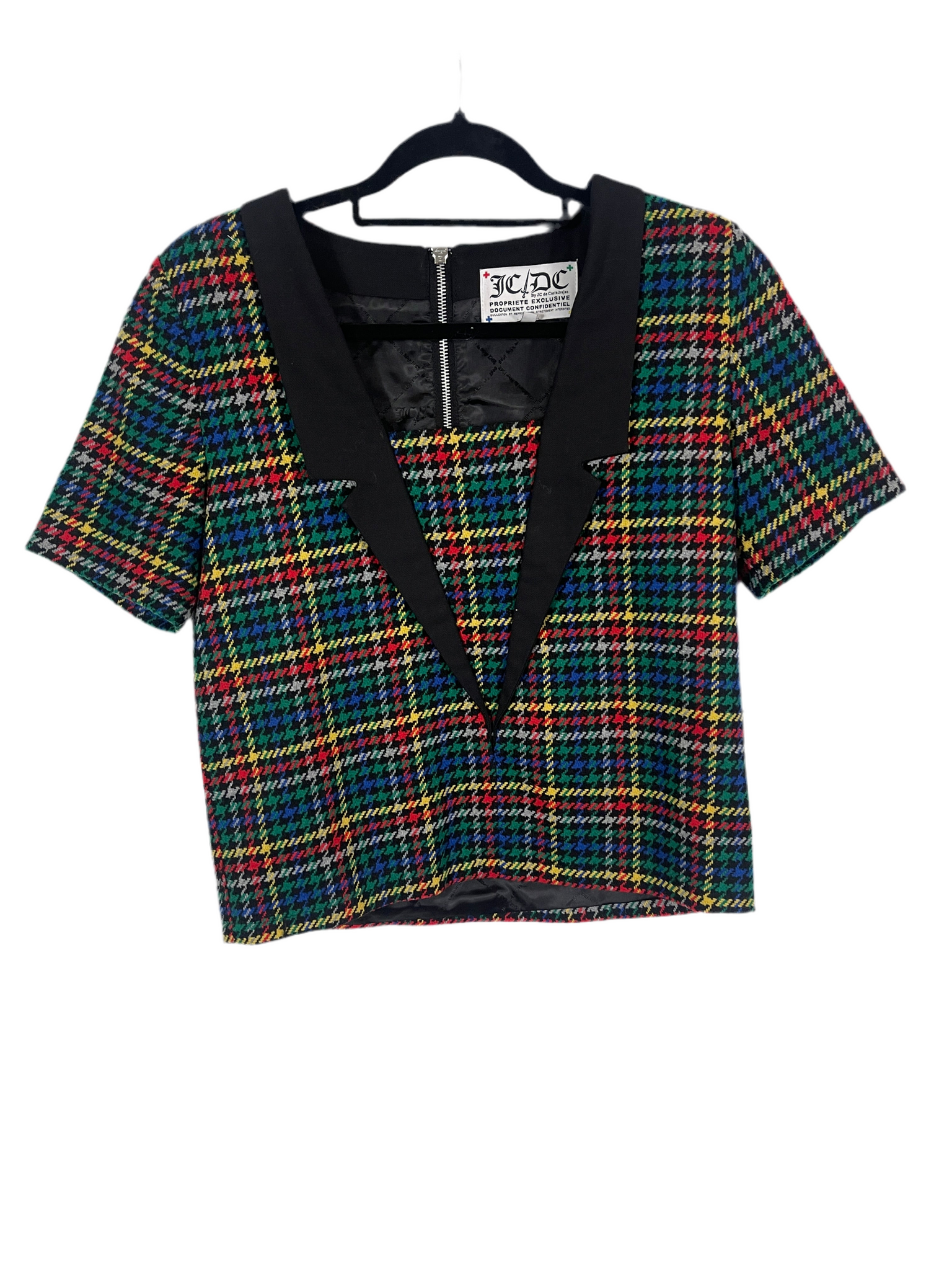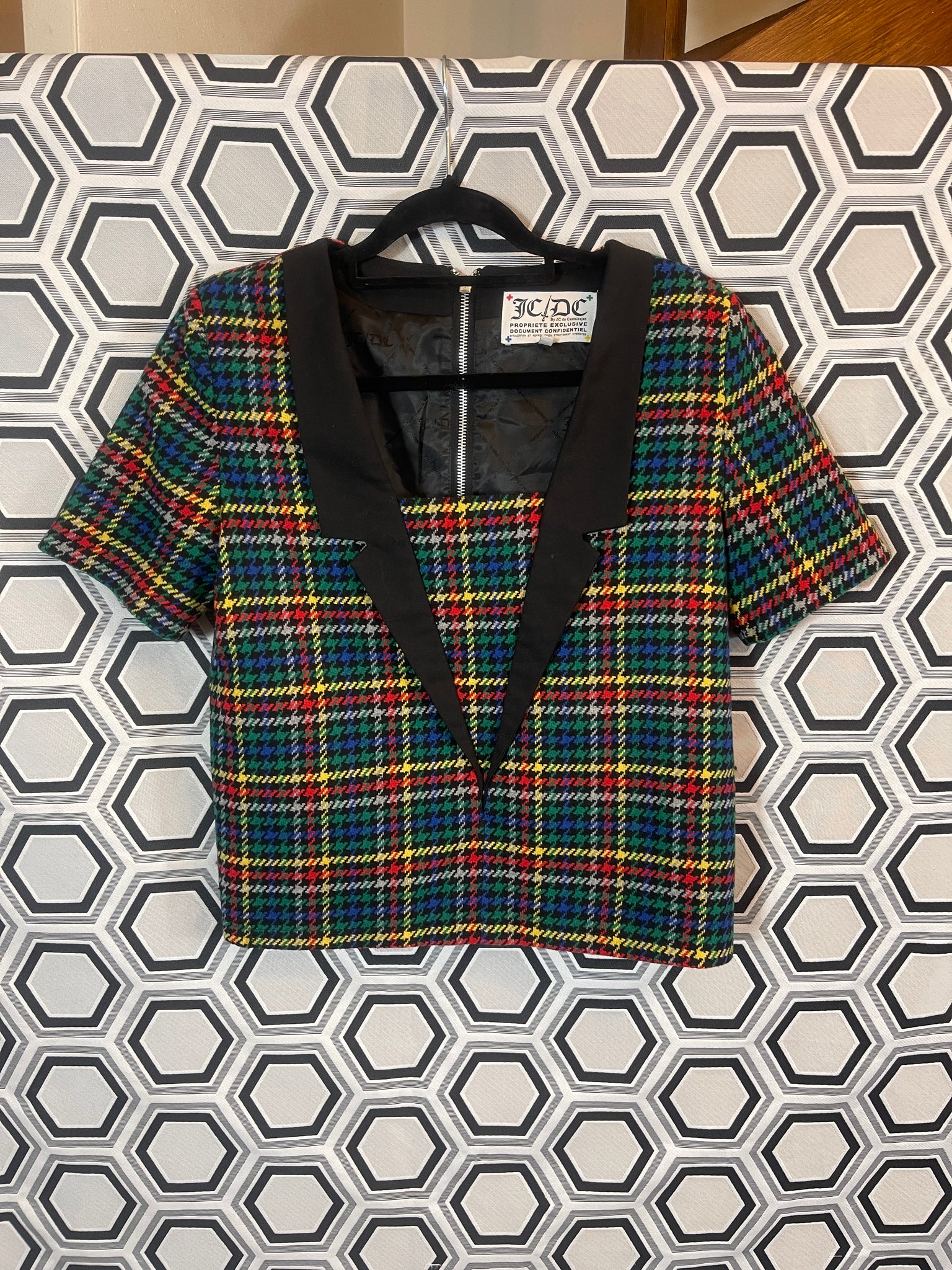 Mesures à plat : largeur épaules 38 cms, largeur sous aisselles 49 cms, largeur taille 48 cms et longueur 56 cms.