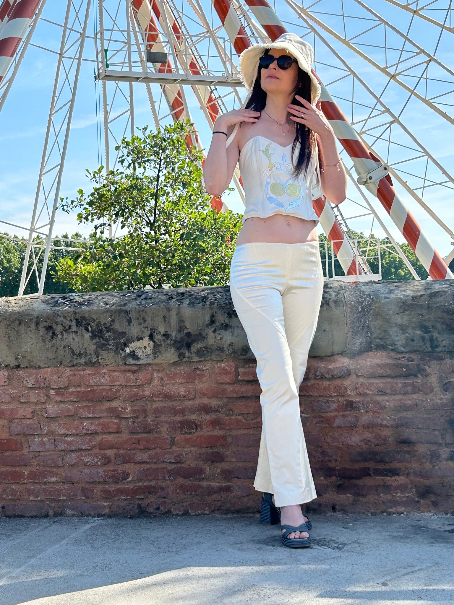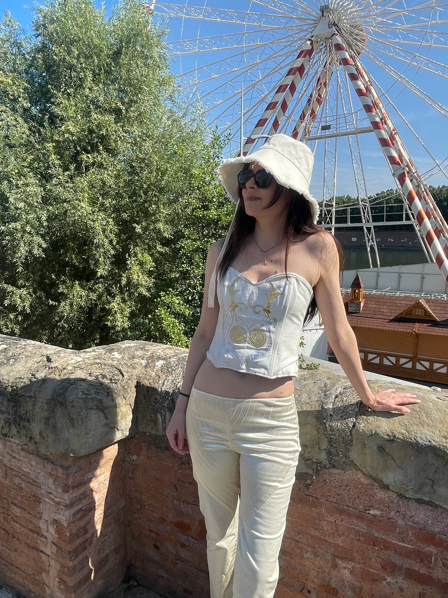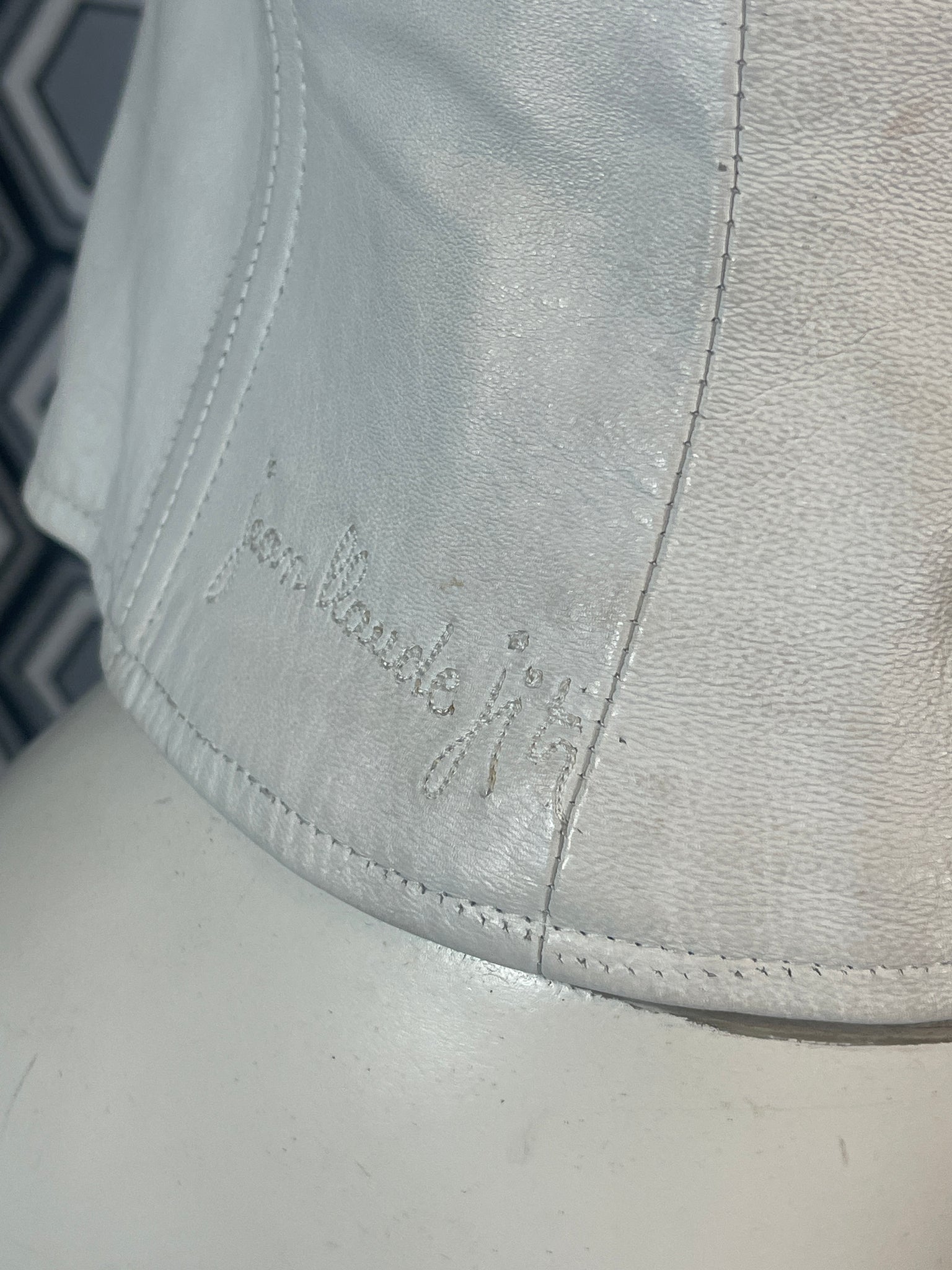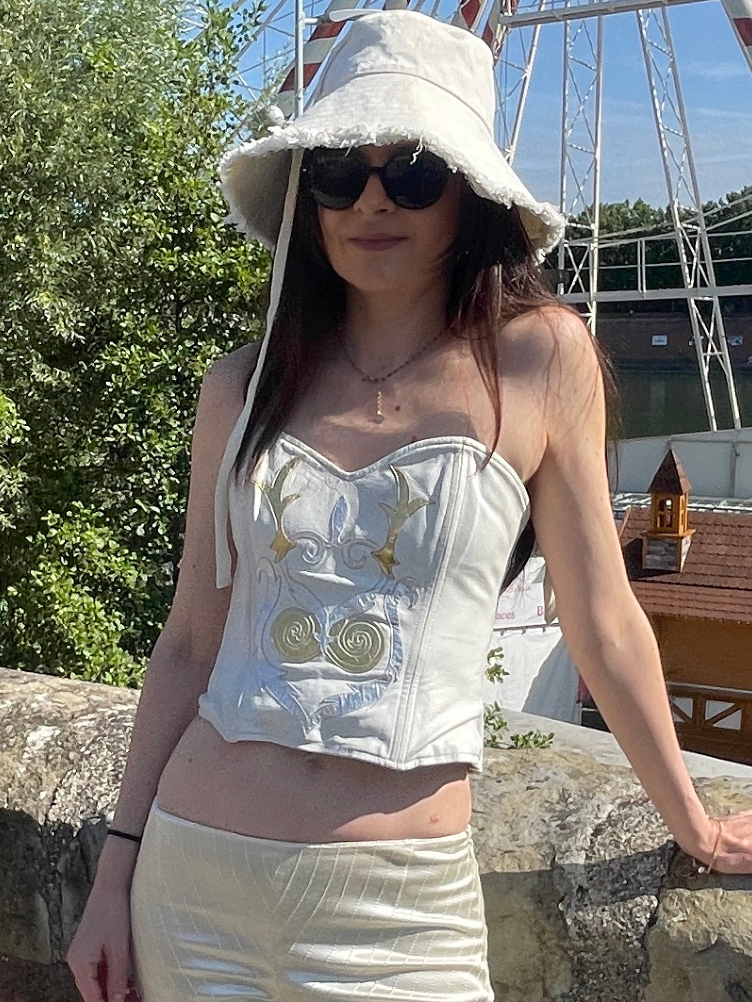 Superbe bustier en cuir Jean Claude Jitrois blanc avec des empiècements argentés et dorés.
