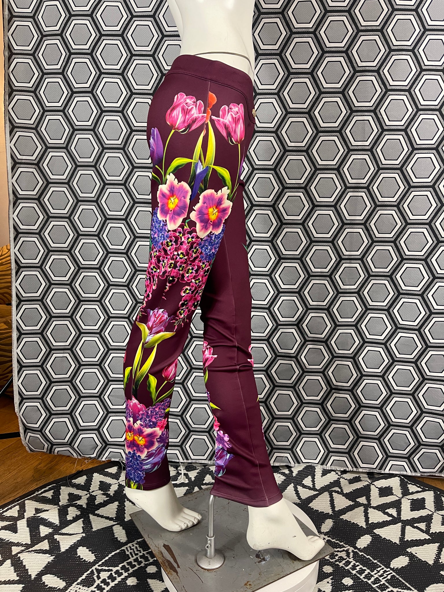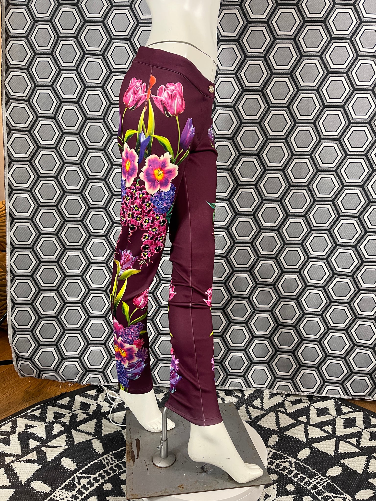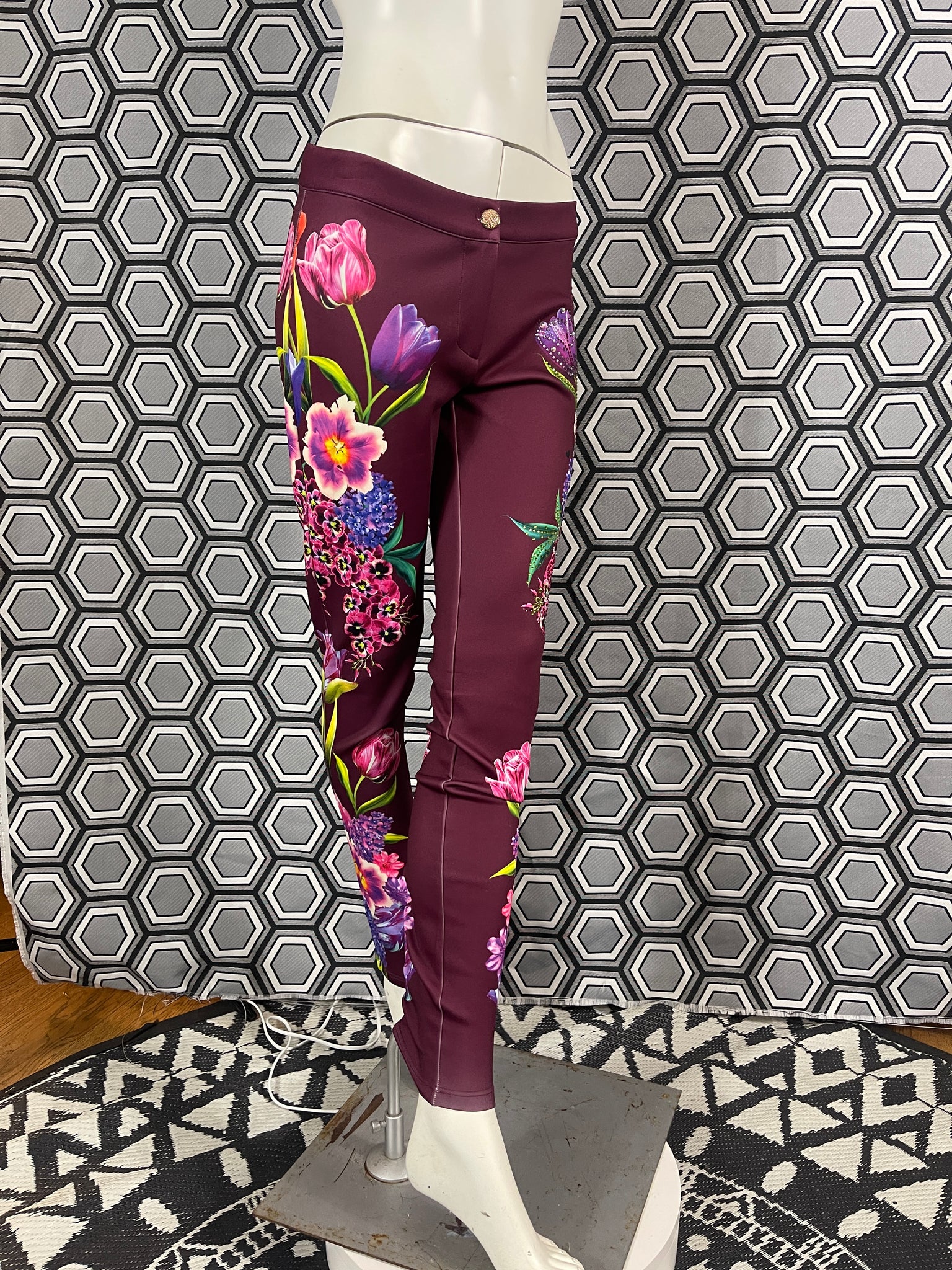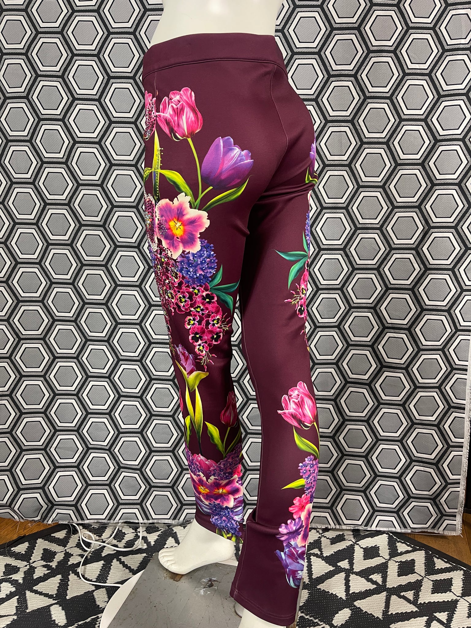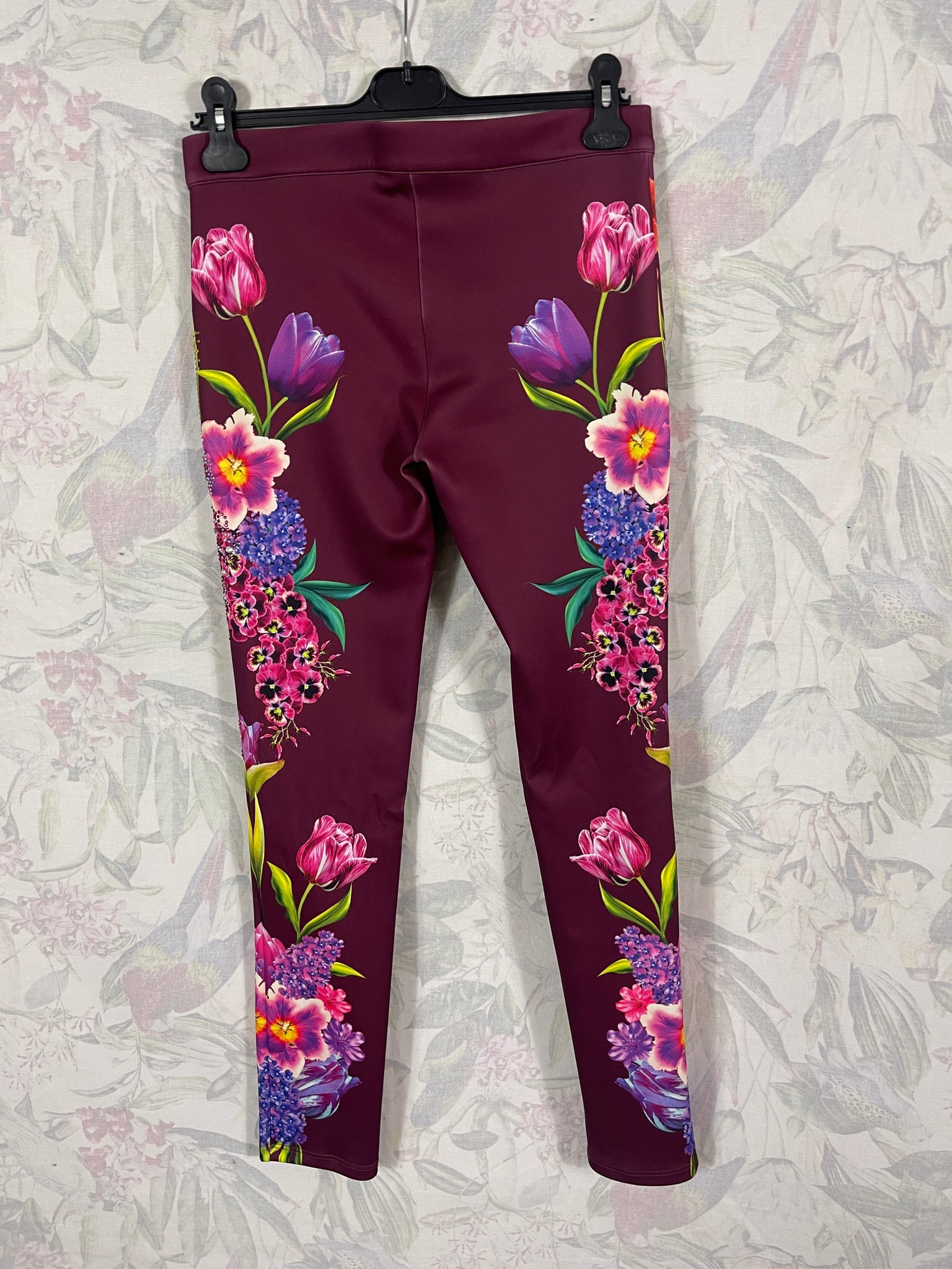 Magnifique pantalon Gai Mattiolo à décors de fleurs et de strass.