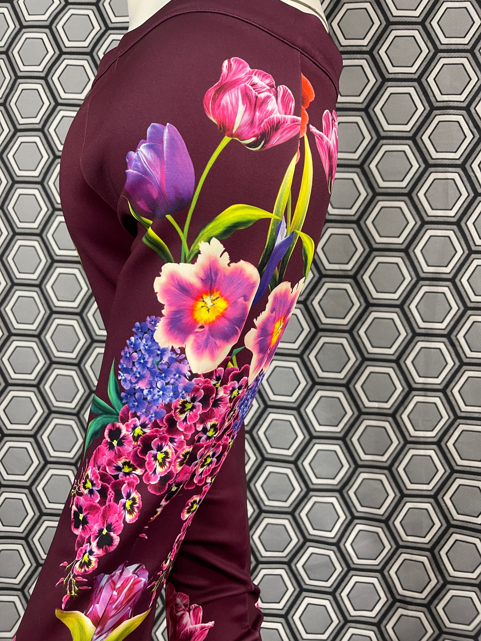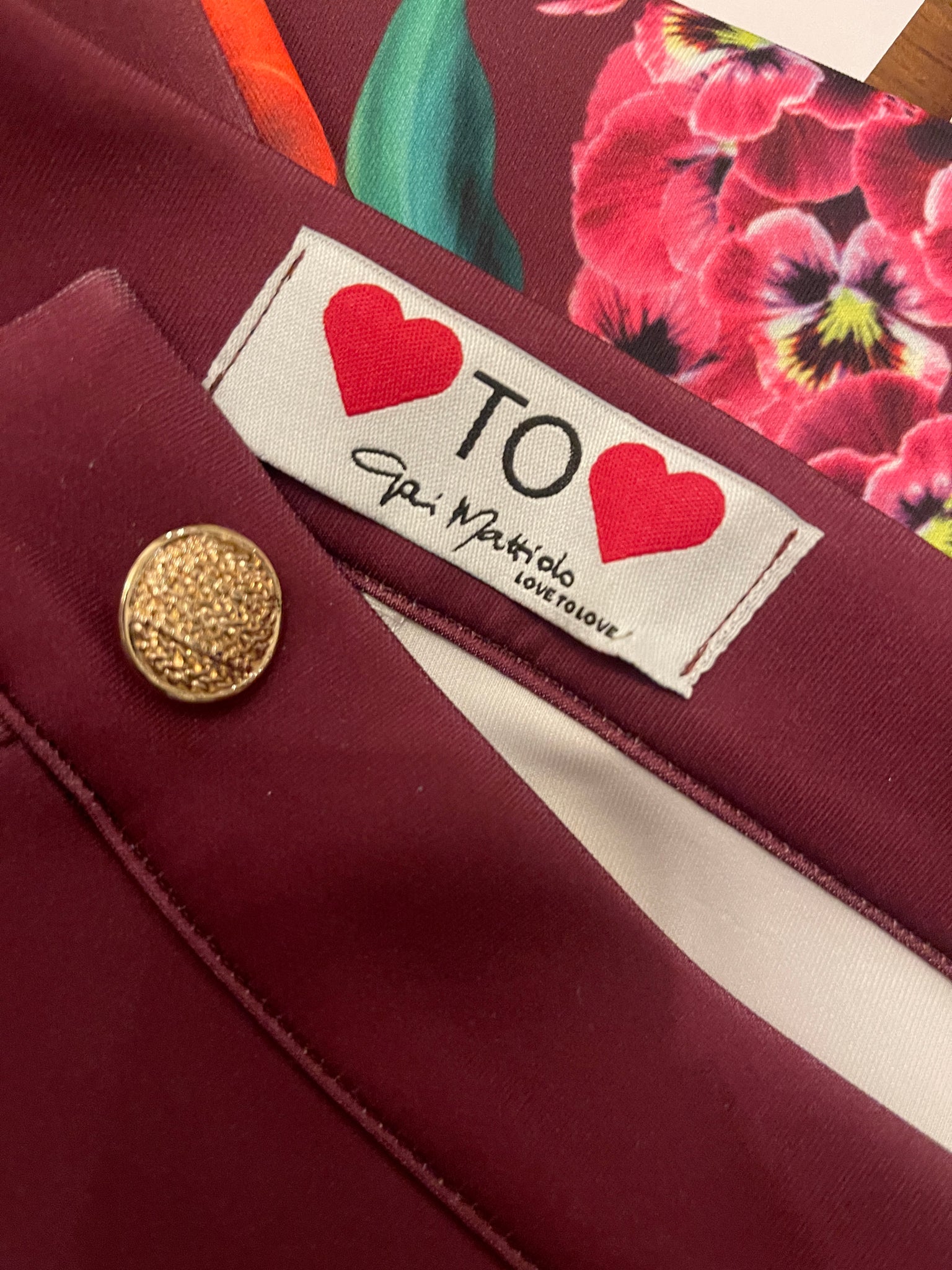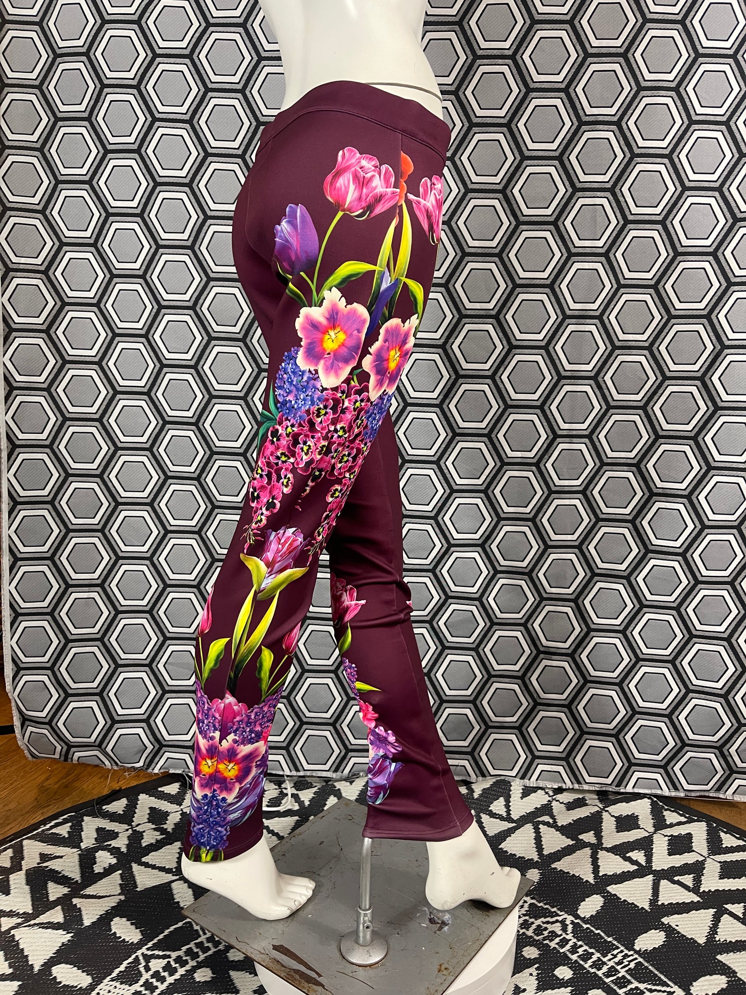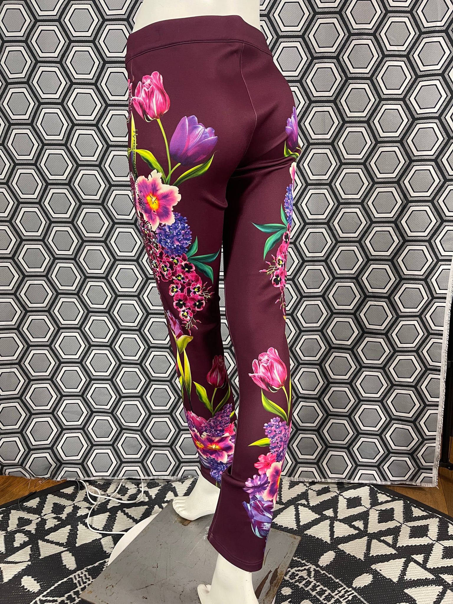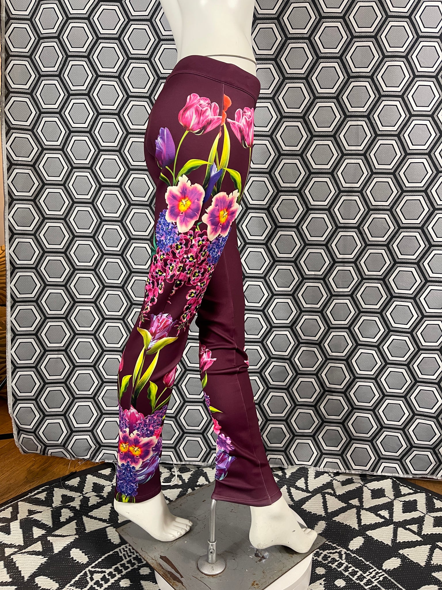 Magnifique pantalon Gai Mattiolo à décors de fleurs et de strass.