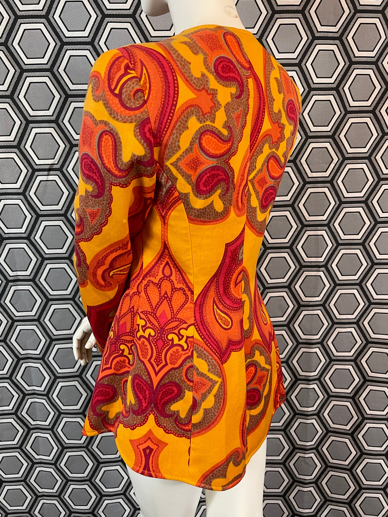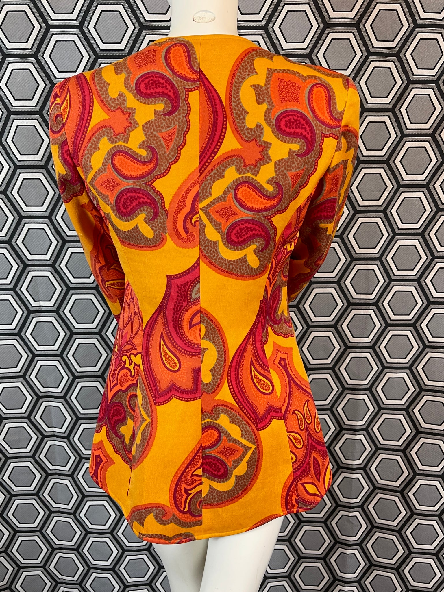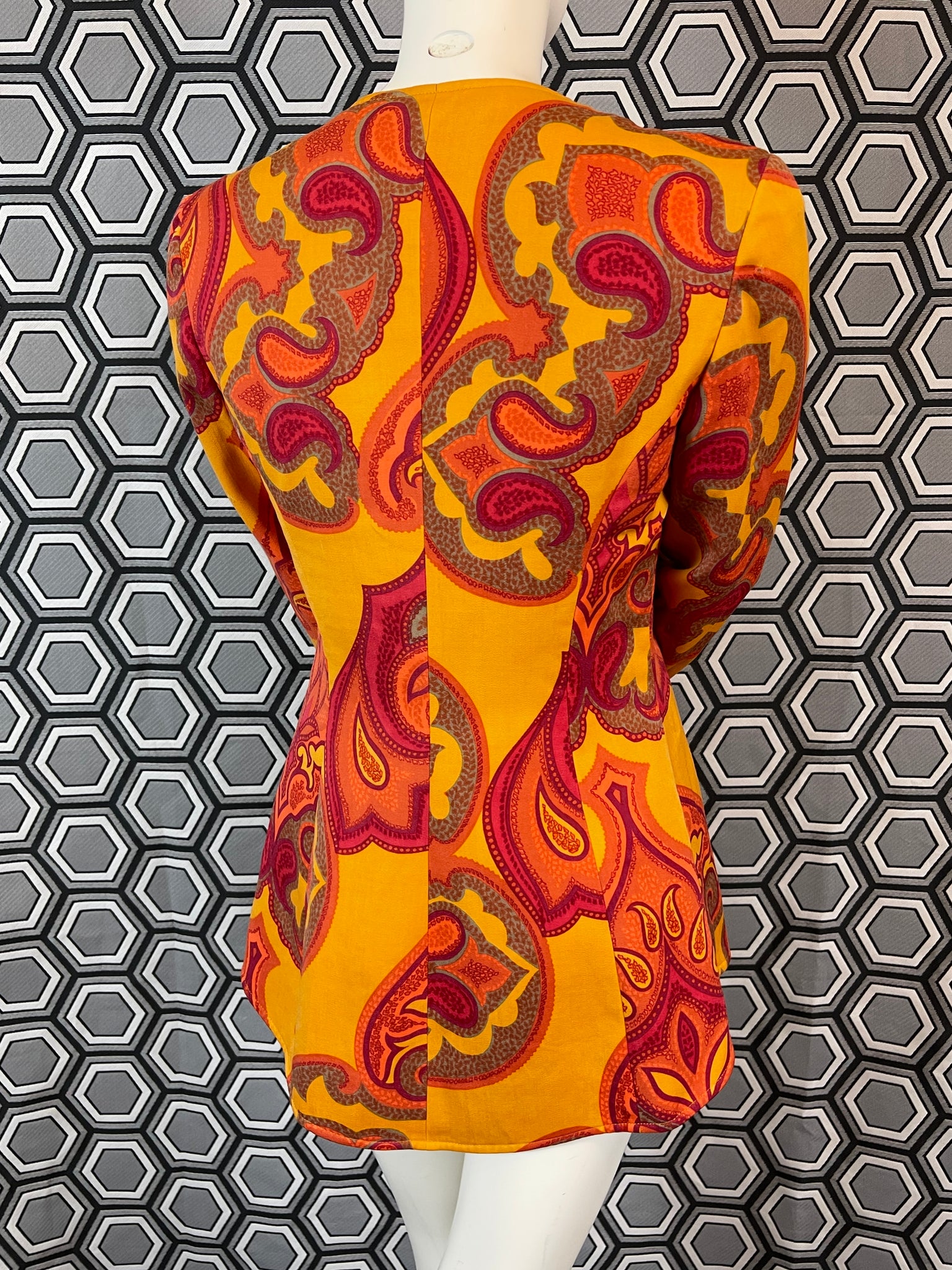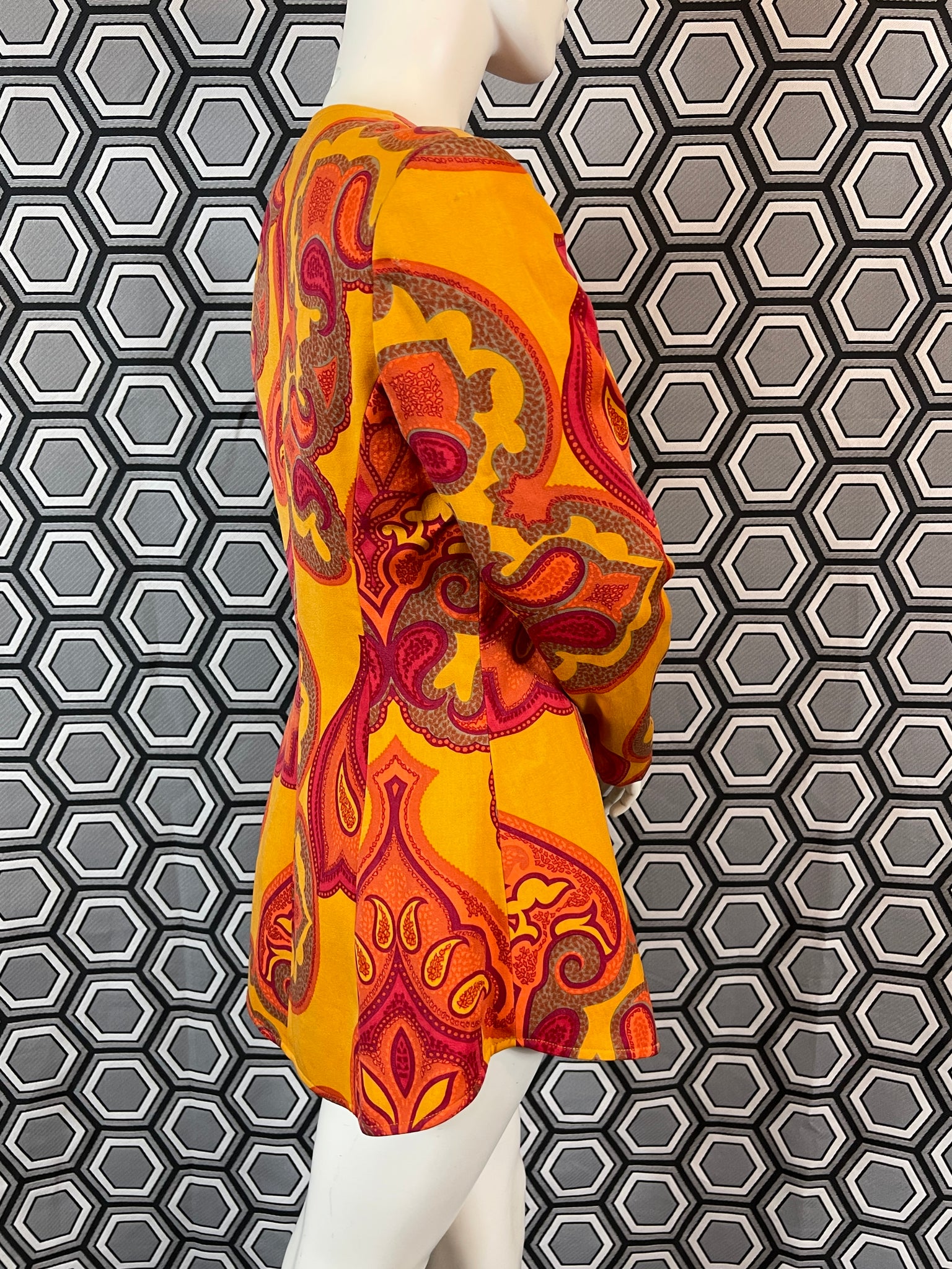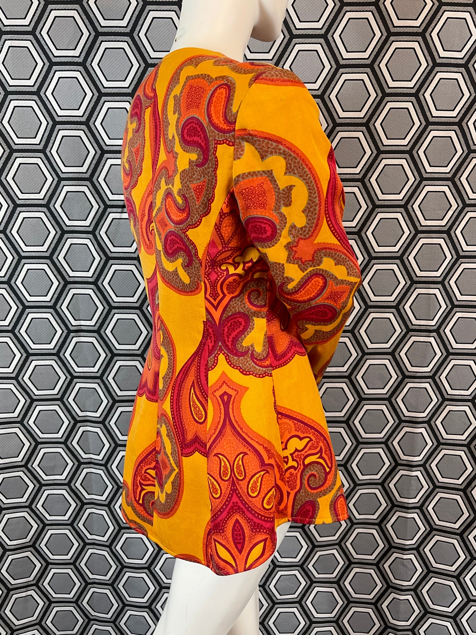 Mesures à plat : largeur épaules 40 cms, largeur sous aisselles 46 cms, largeur taille 40 cms et longueur 68 cms.