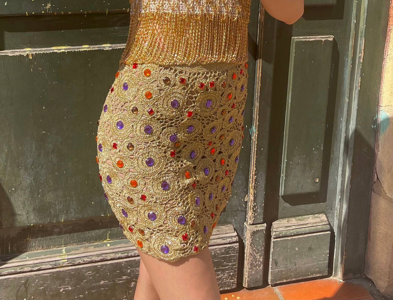 facebook-domain-verification=ixonferok9m6e2khtkiqosuyea21b0 Jupe dorée Quatro Moscas taille 36 – Dress’in Toulouse