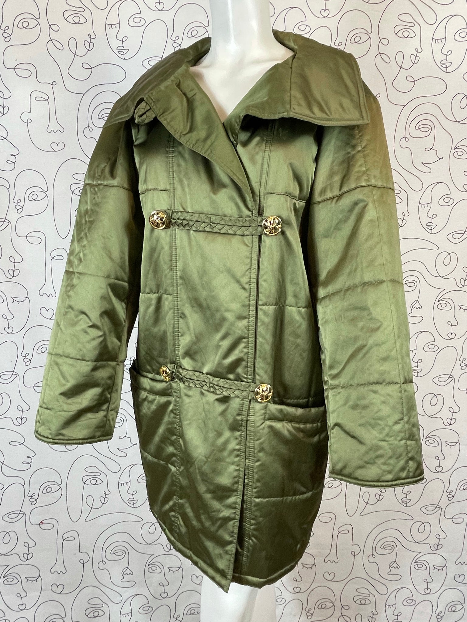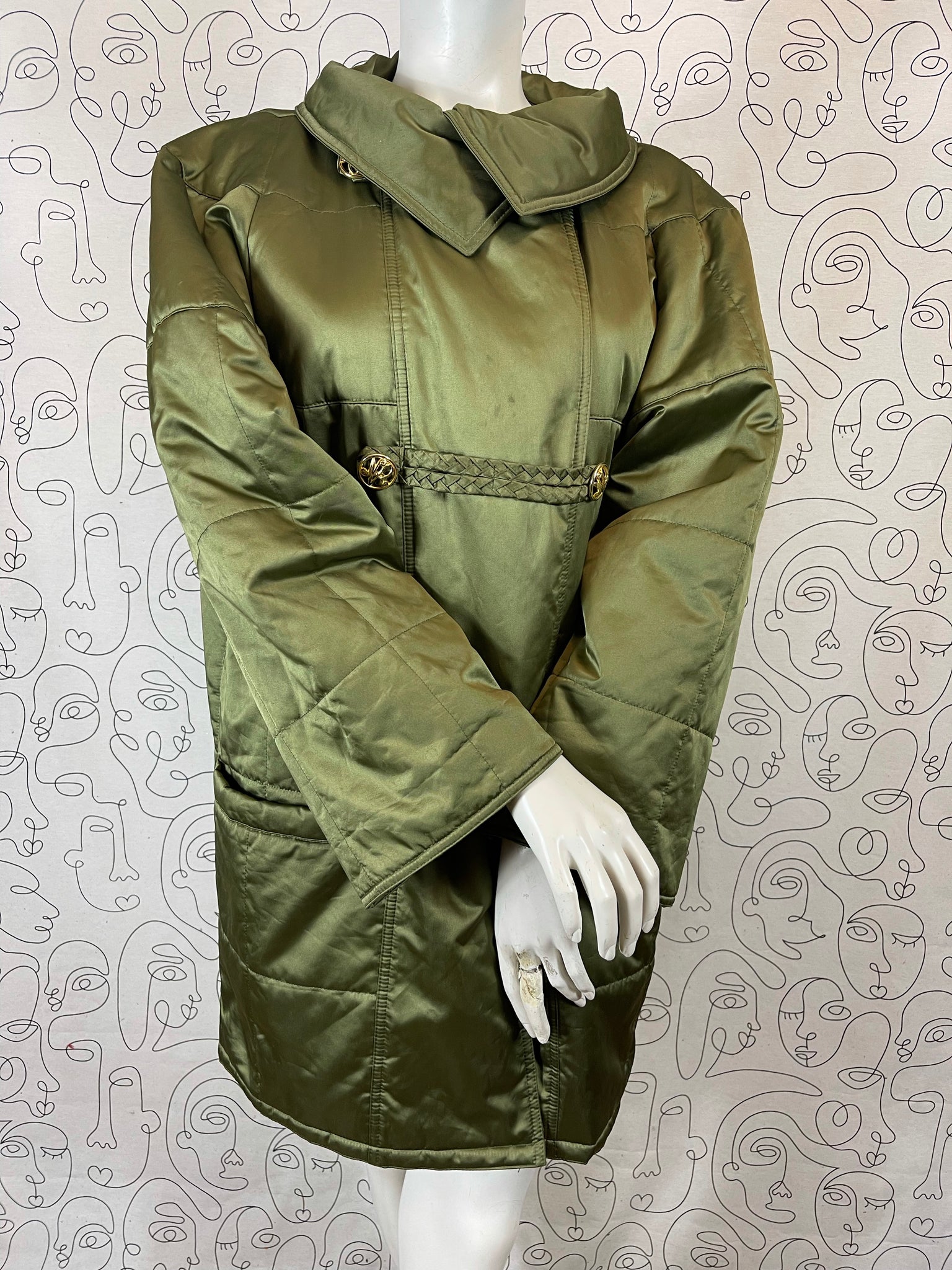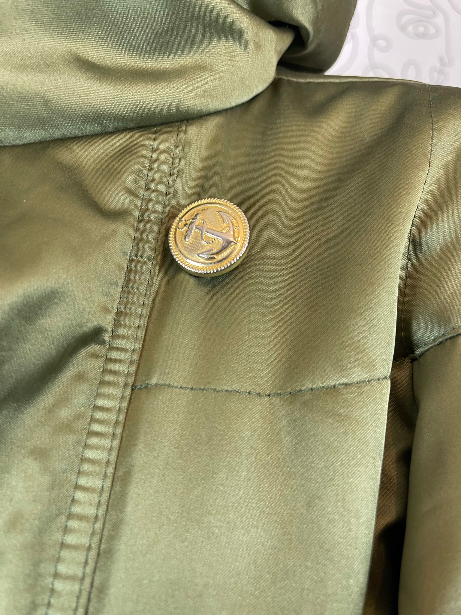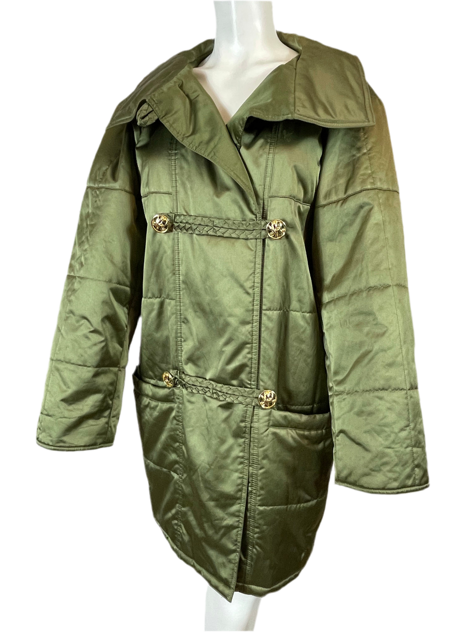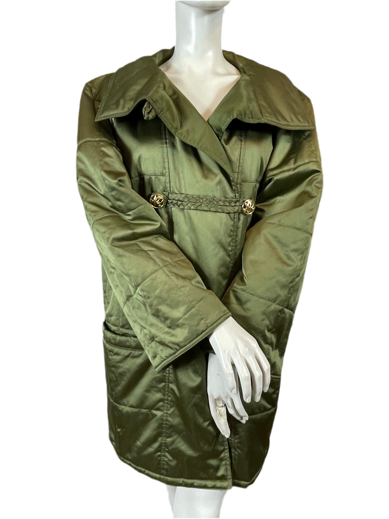 Superbe manteau matelassé kaki avec des très beaux boutons aux initiales de la marque (un des boutons au niveau du col à été changé, ne se voit pas car caché par le col).