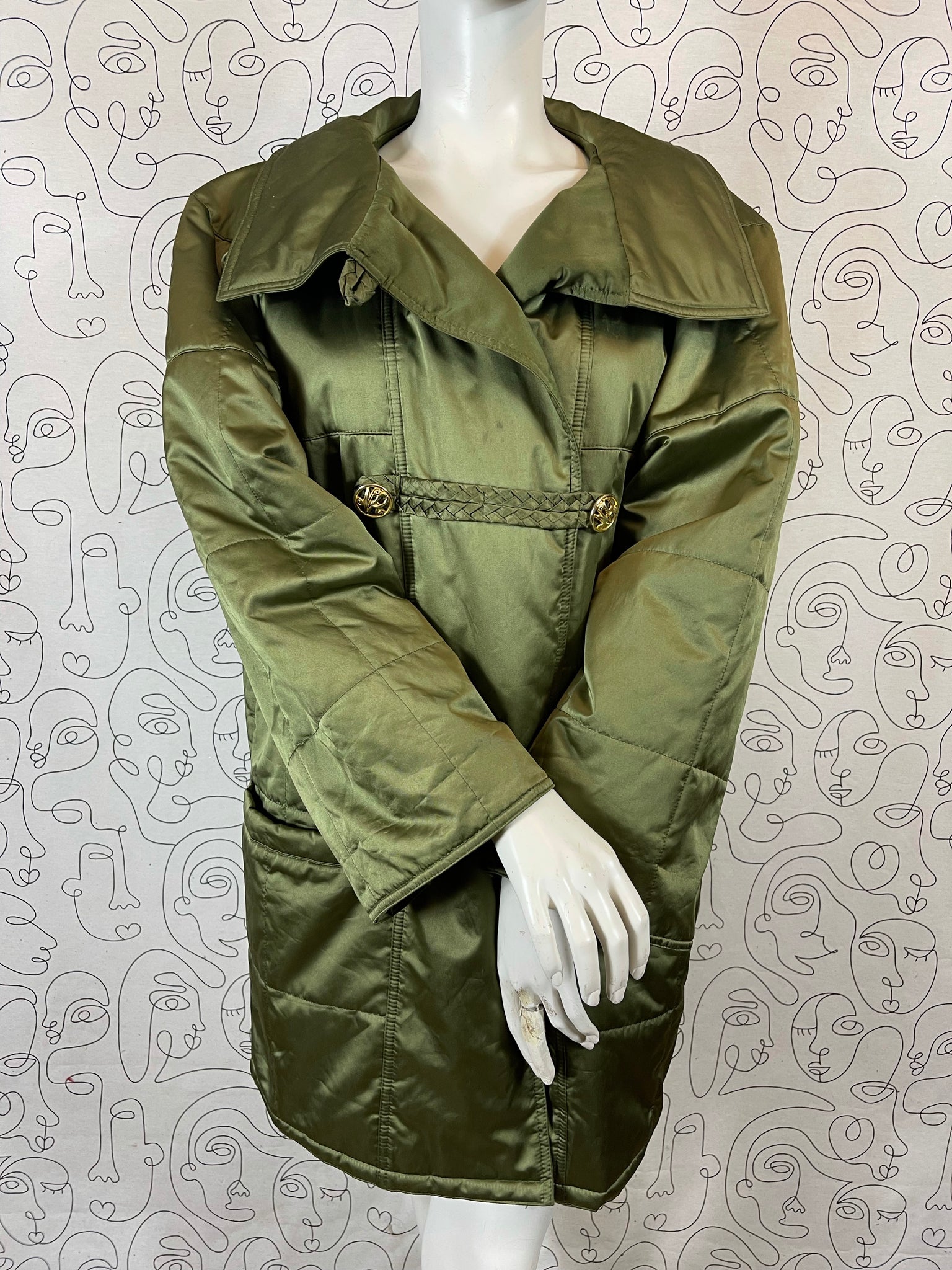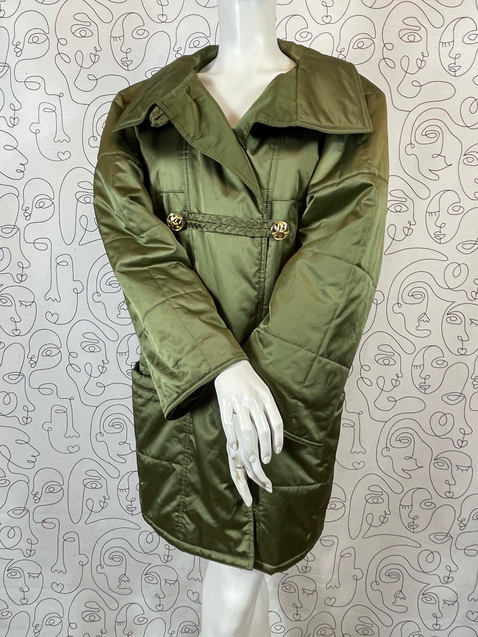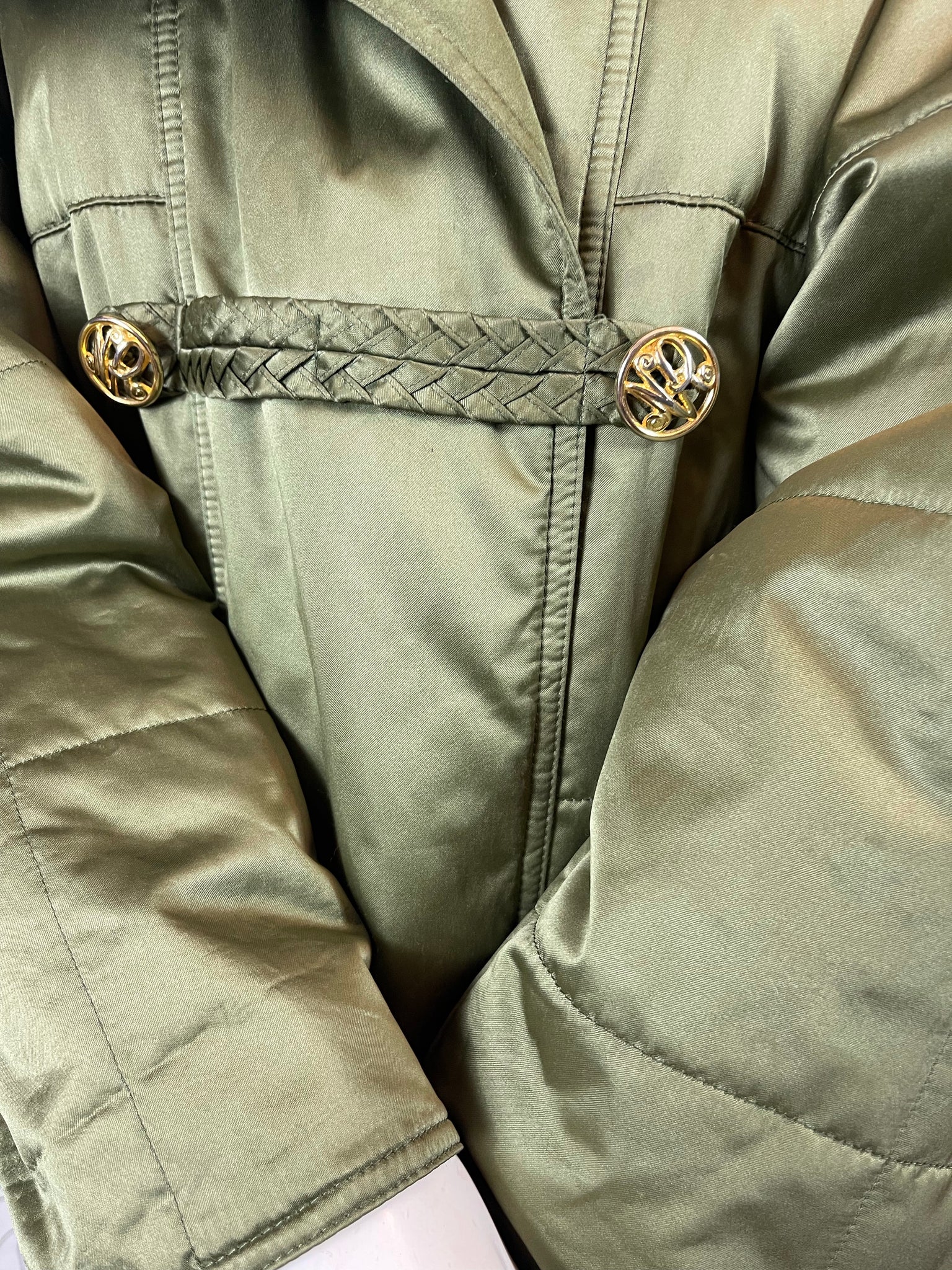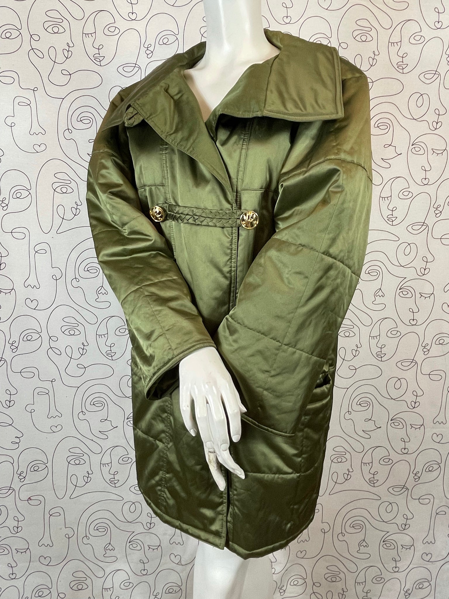 Superbe manteau matelassé kaki avec des très beaux boutons aux initiales de la marque (un des boutons au niveau du col à été changé, ne se voit pas car caché par le col).