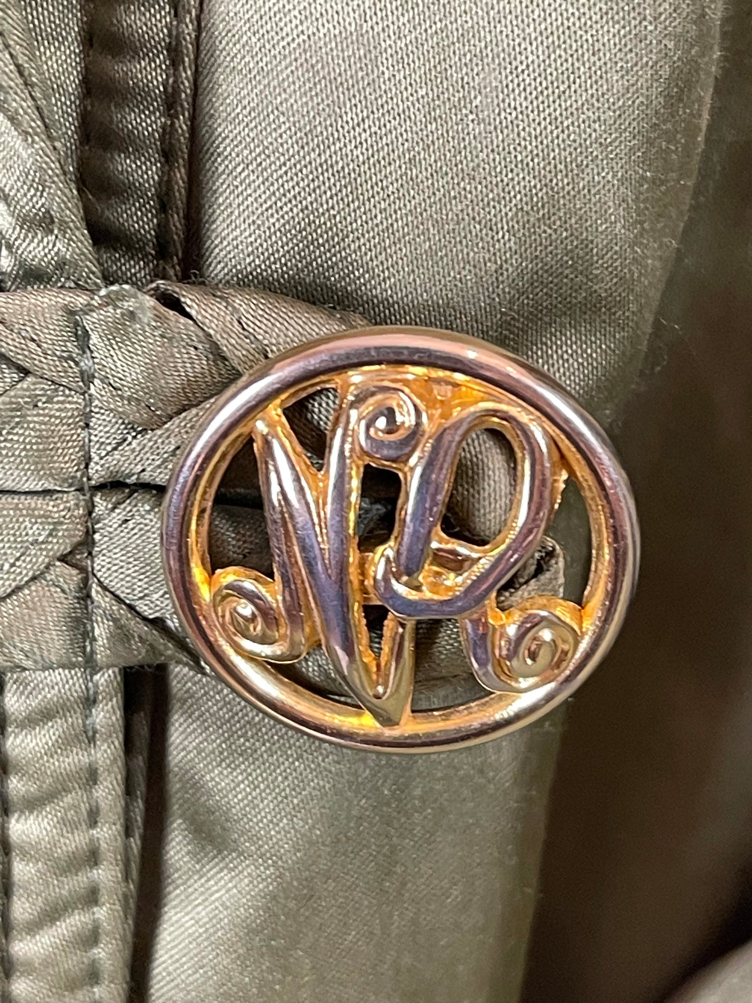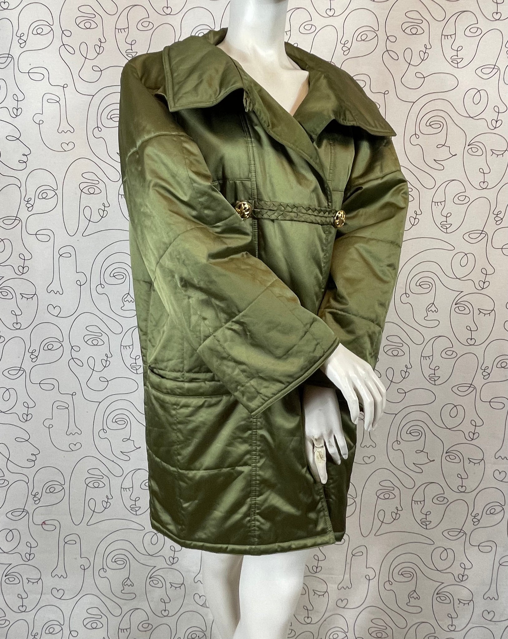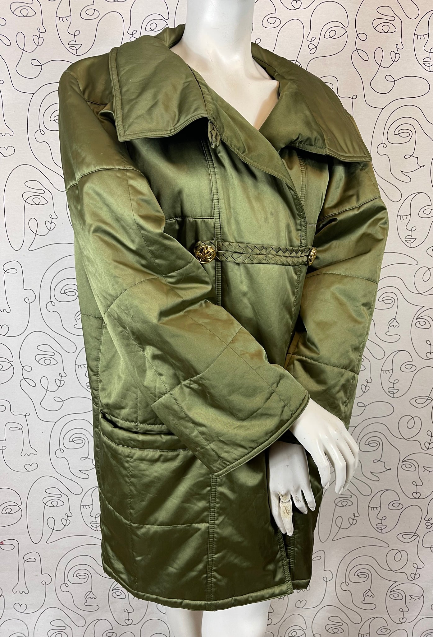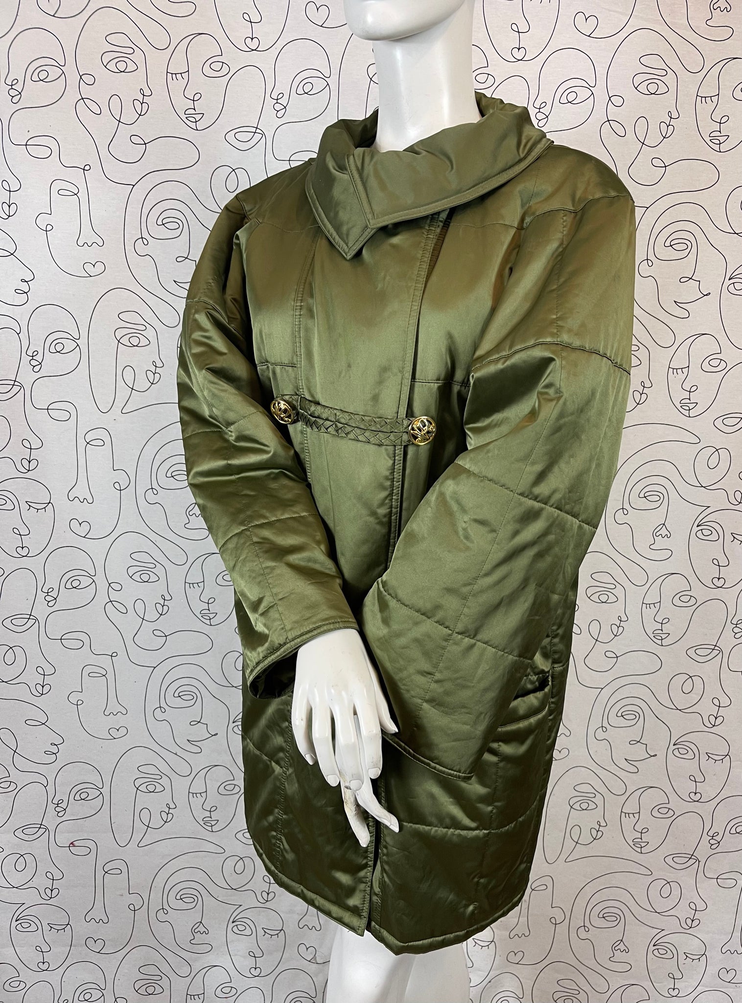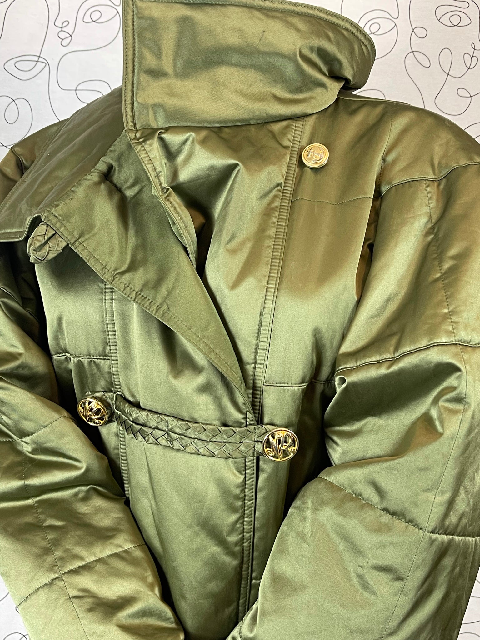 Superbe manteau matelassé kaki avec des très beaux boutons aux initiales de la marque (un des boutons au niveau du col à été changé, ne se voit pas car caché par le col).