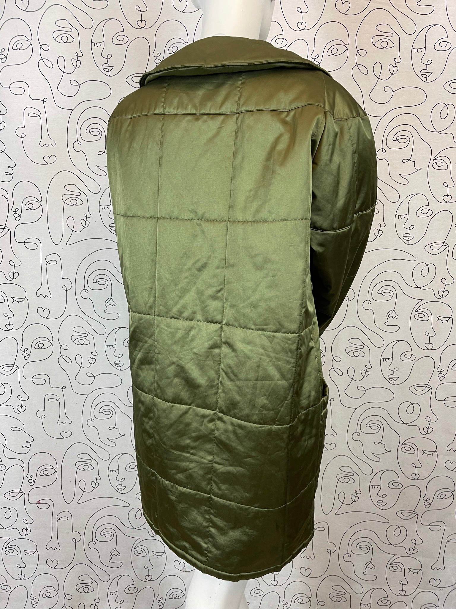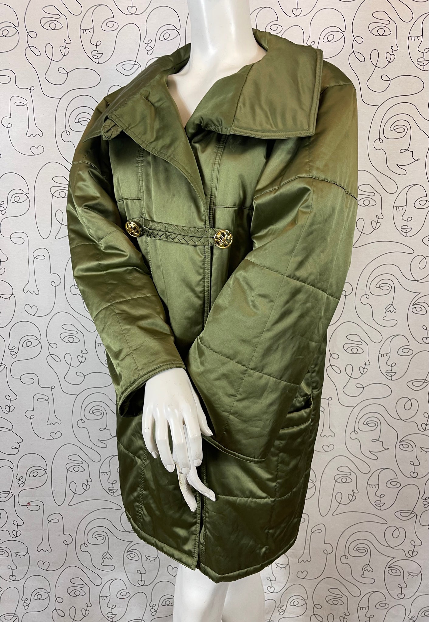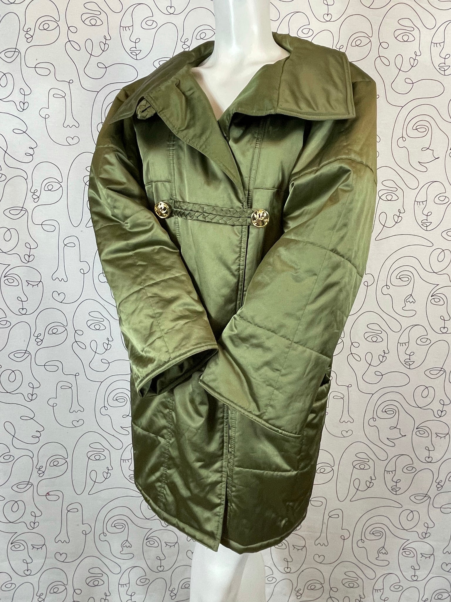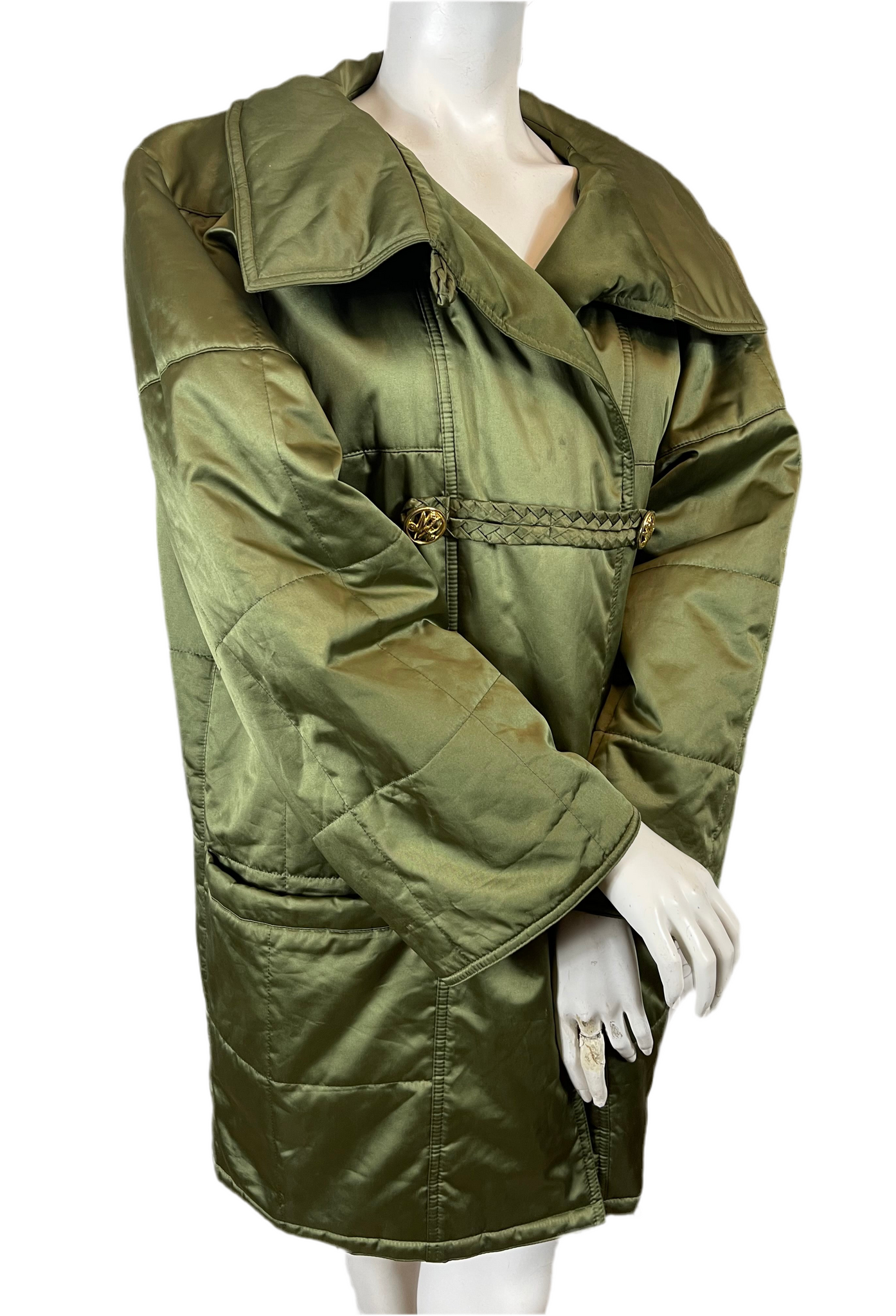 Superbe manteau matelassé kaki avec des très beaux boutons aux initiales de la marque (un des boutons au niveau du col à été changé, ne se voit pas car caché par le col).
