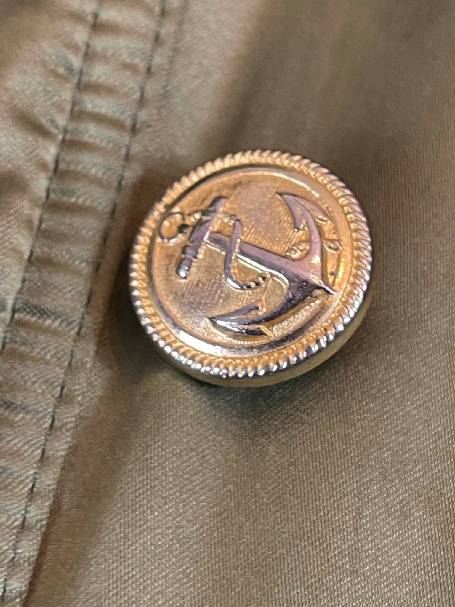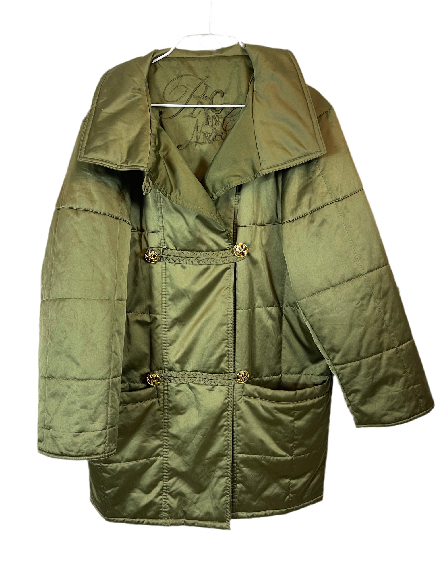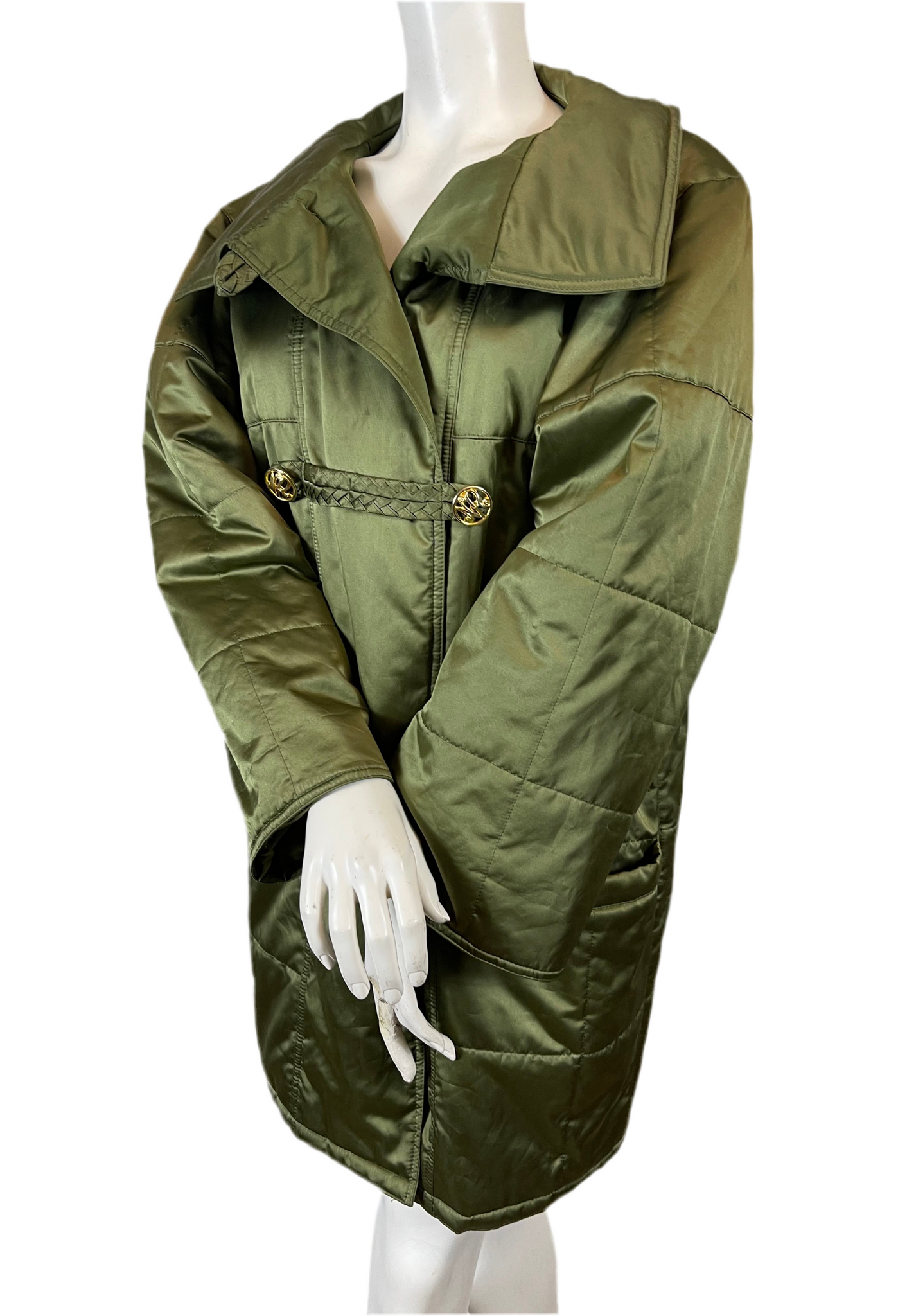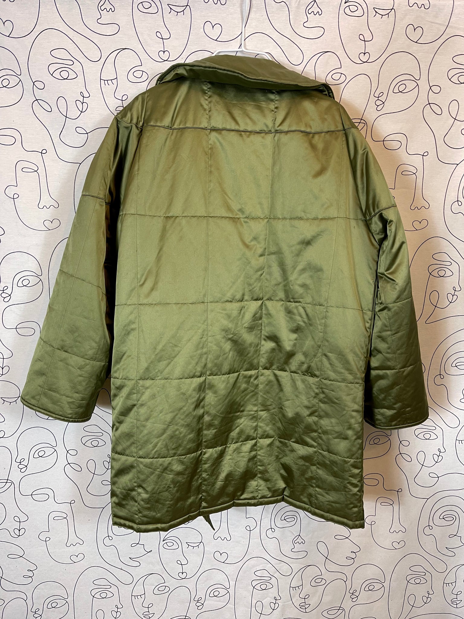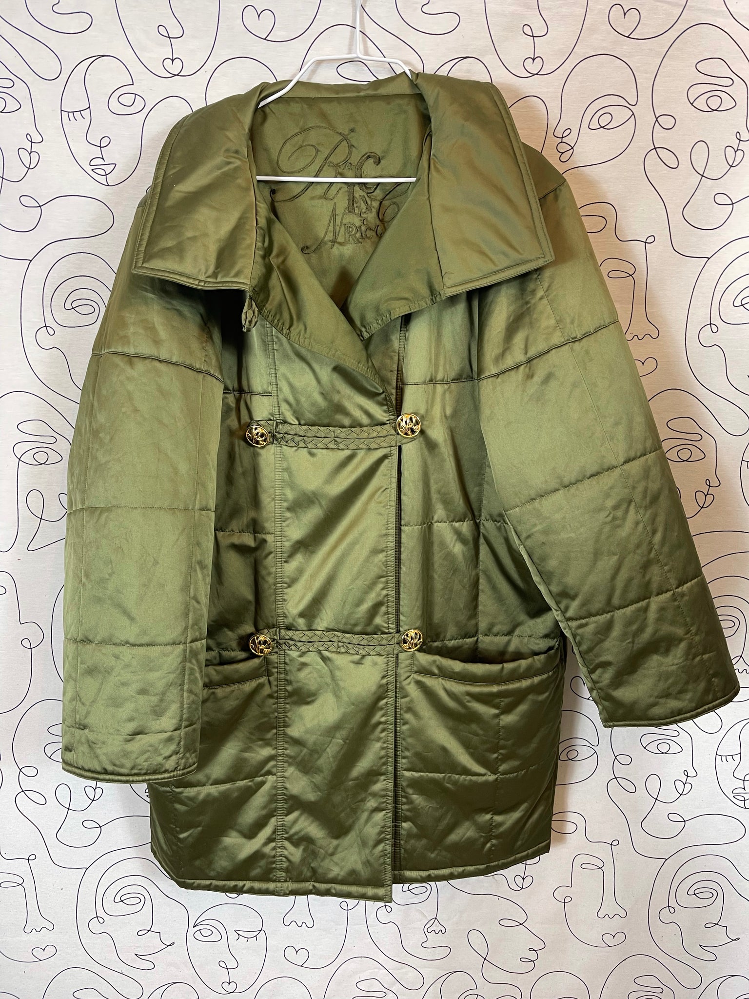 Superbe manteau matelassé kaki avec des très beaux boutons aux initiales de la marque (un des boutons au niveau du col à été changé, ne se voit pas car caché par le col).