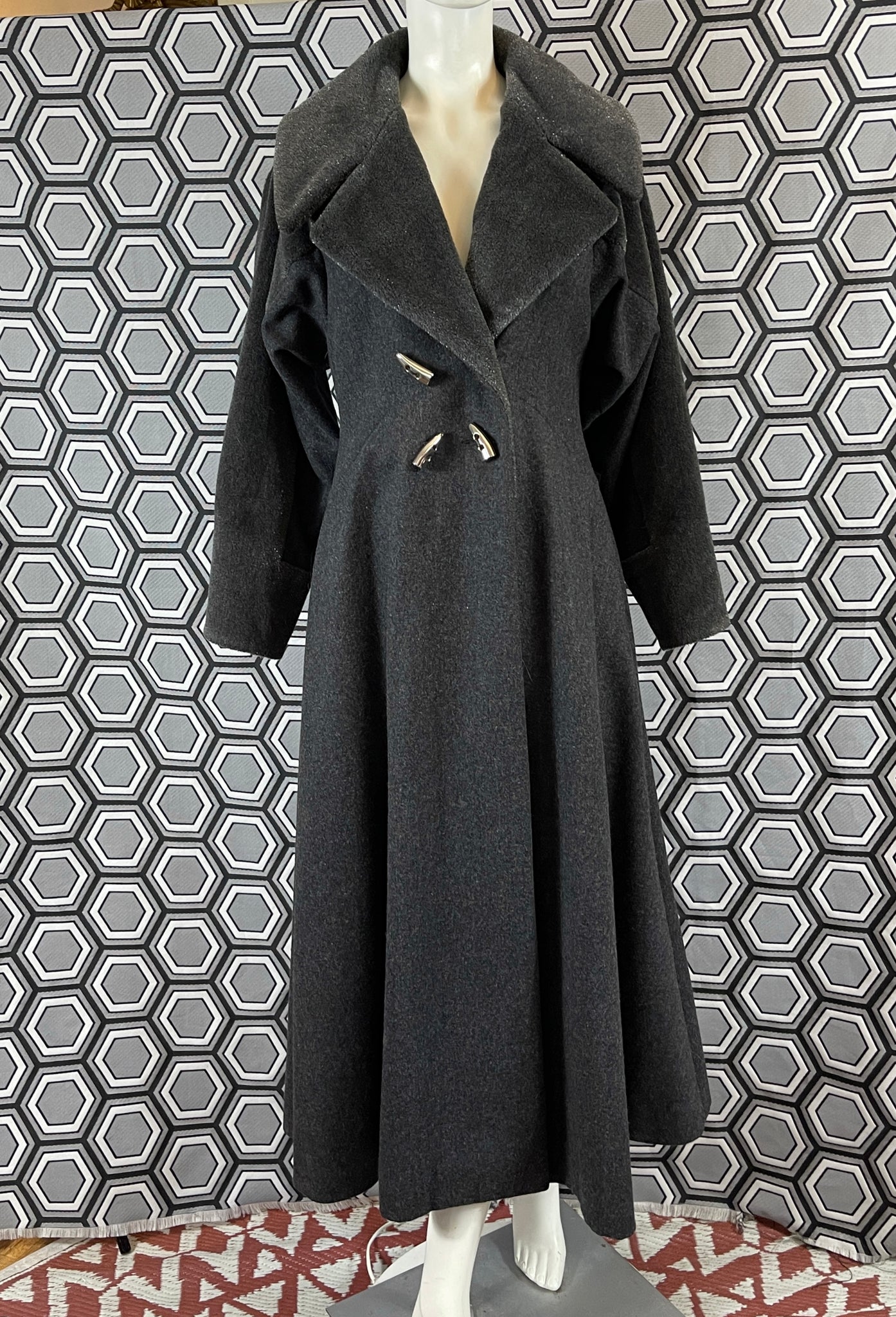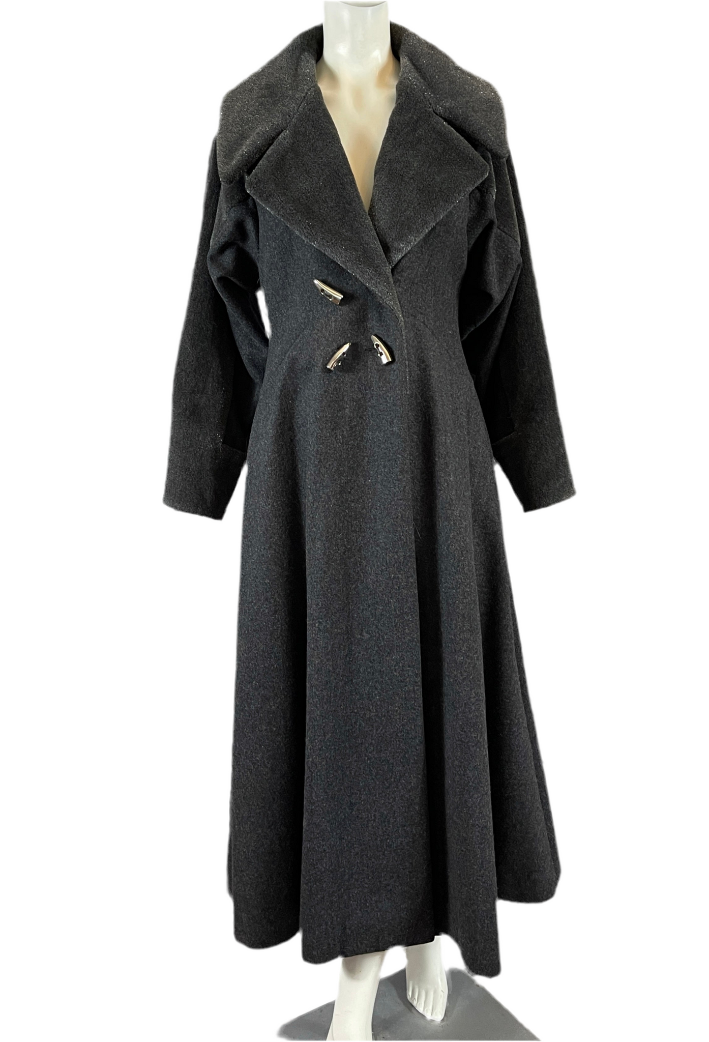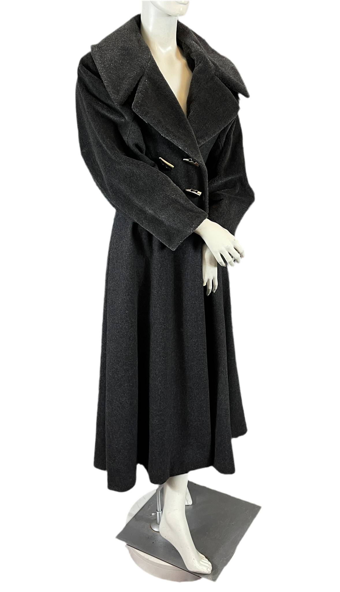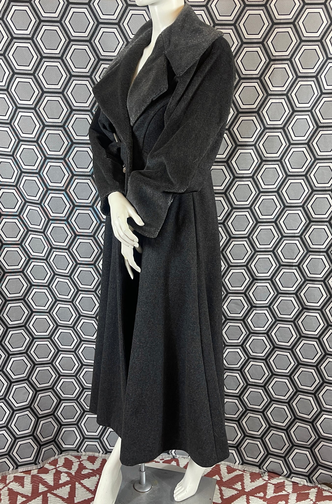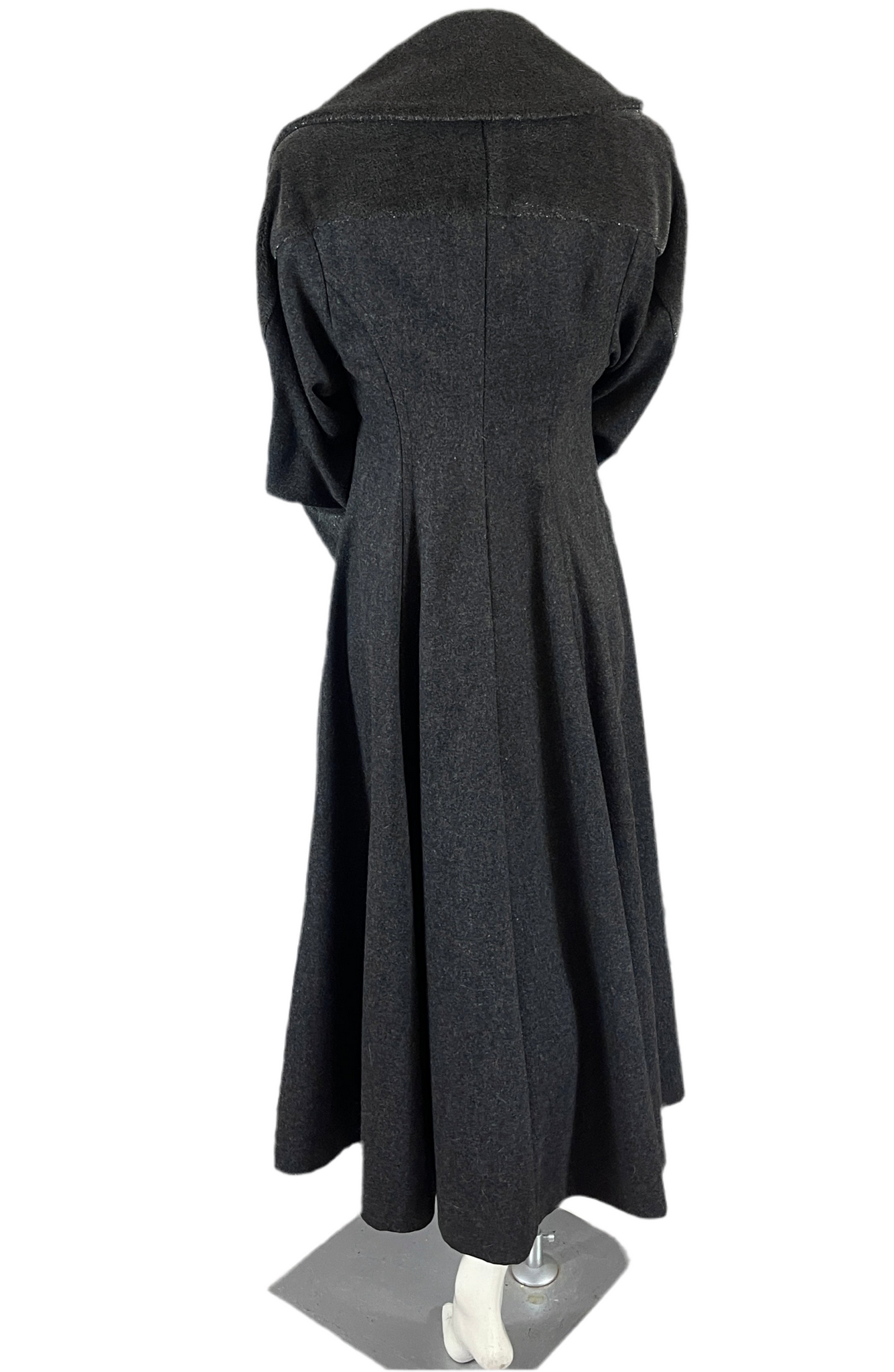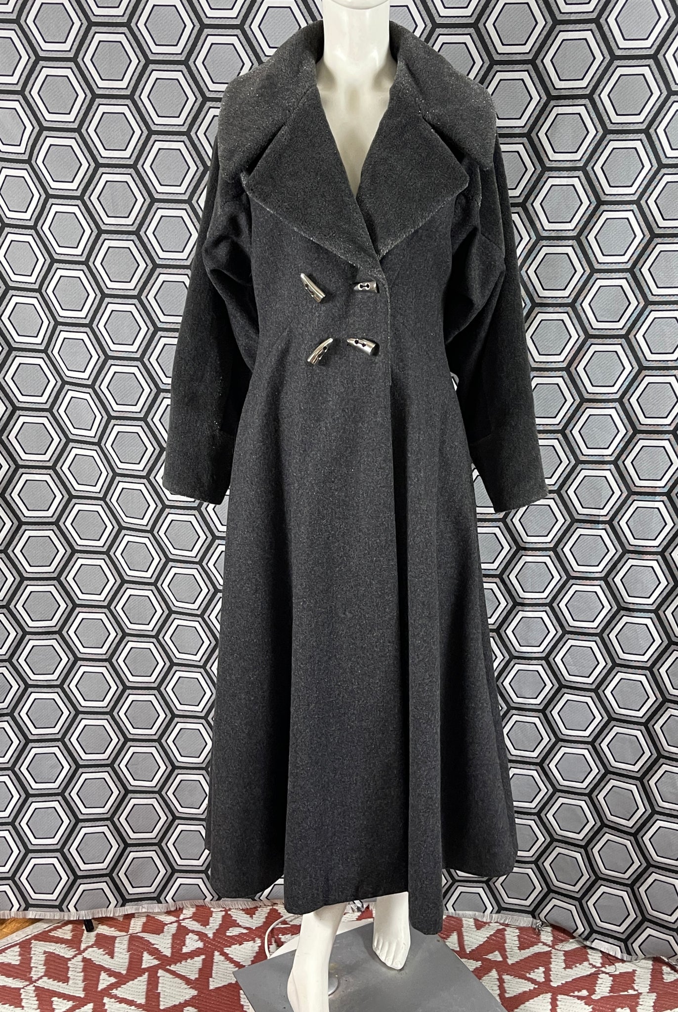 100% laine : certaines parties du manteau sont en laine sèche de couleur grise et mate, tandis que d’autres (le dessus des manches, le col, le haut du dos), sont en laine façon fourrure subtilement pailletée.