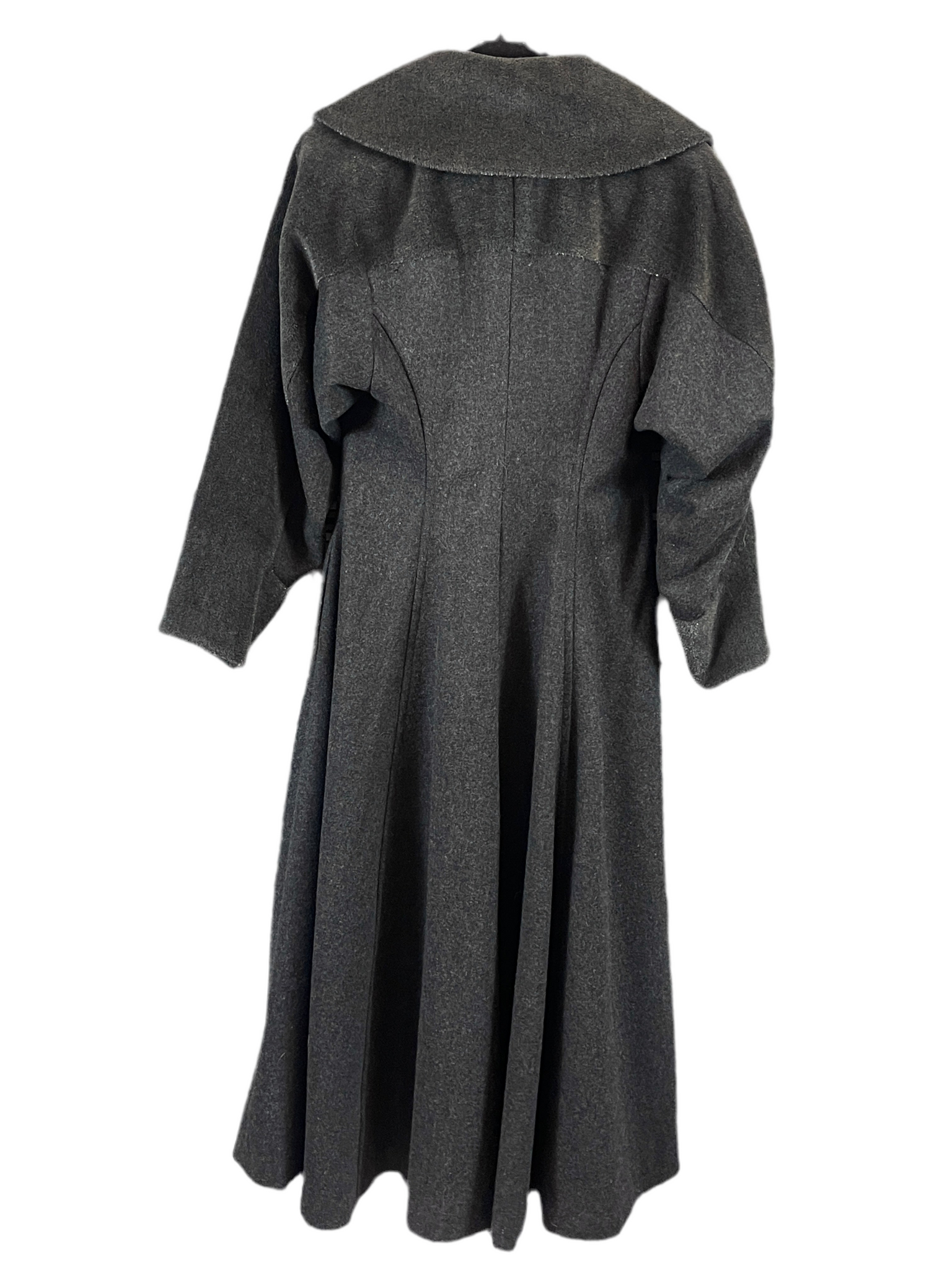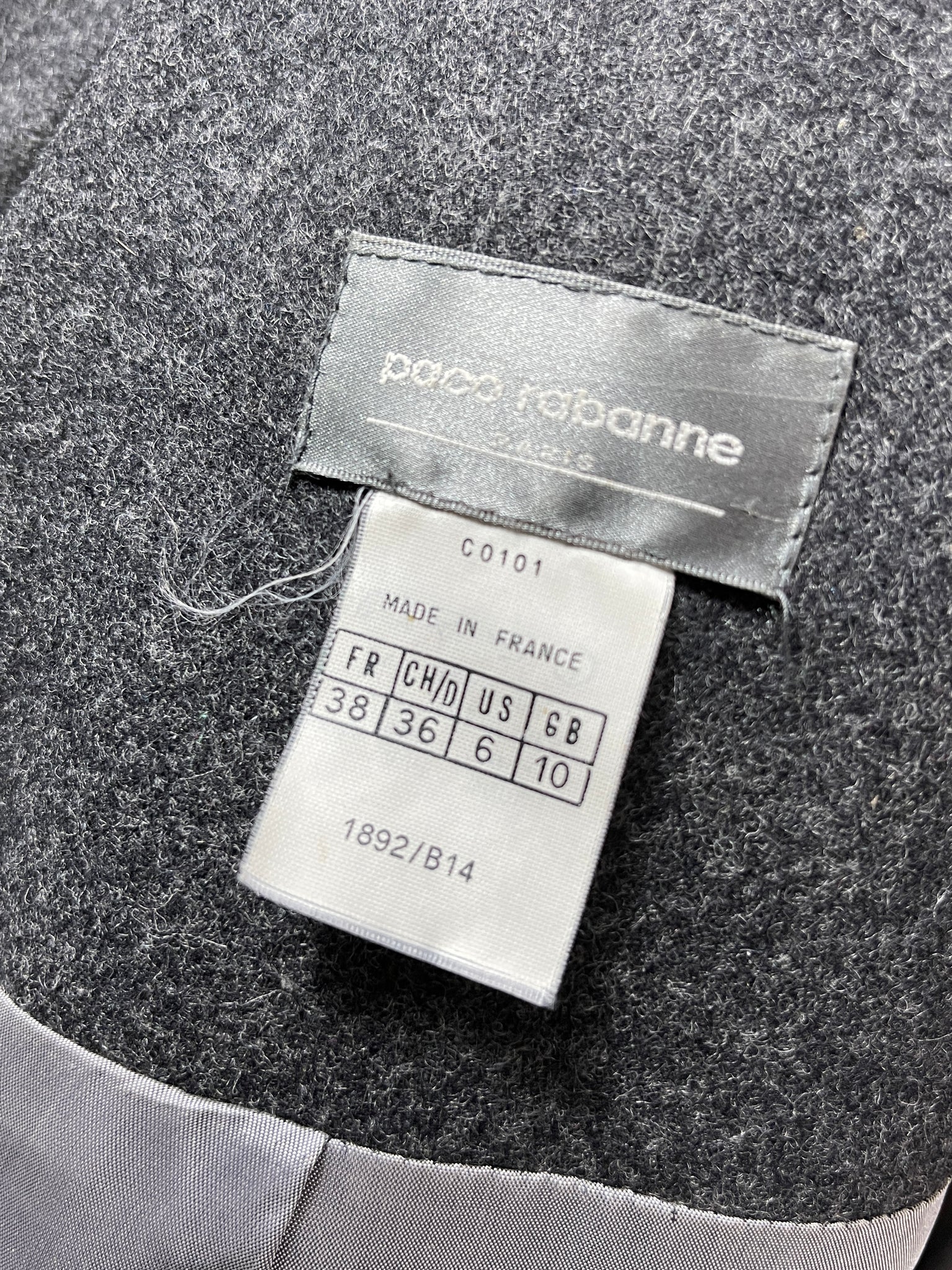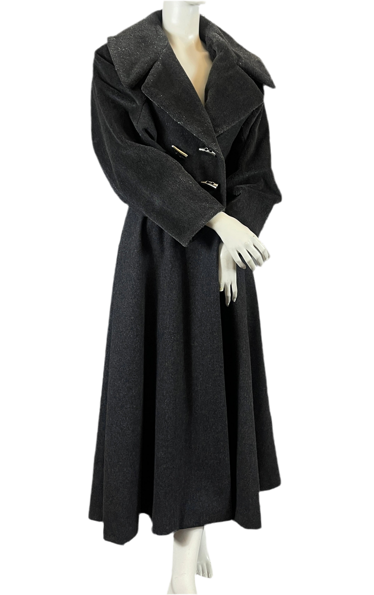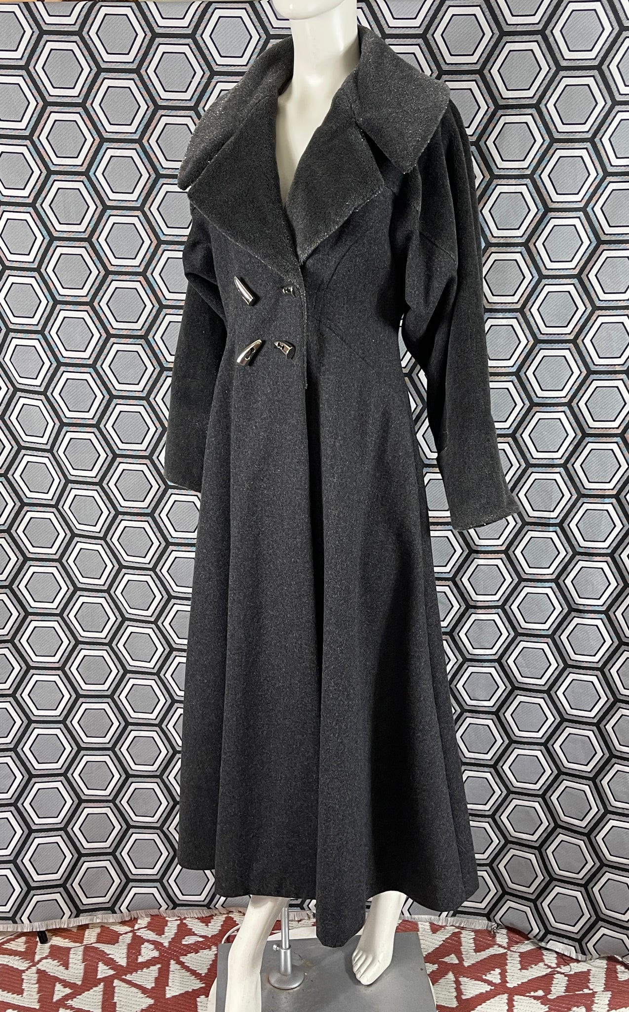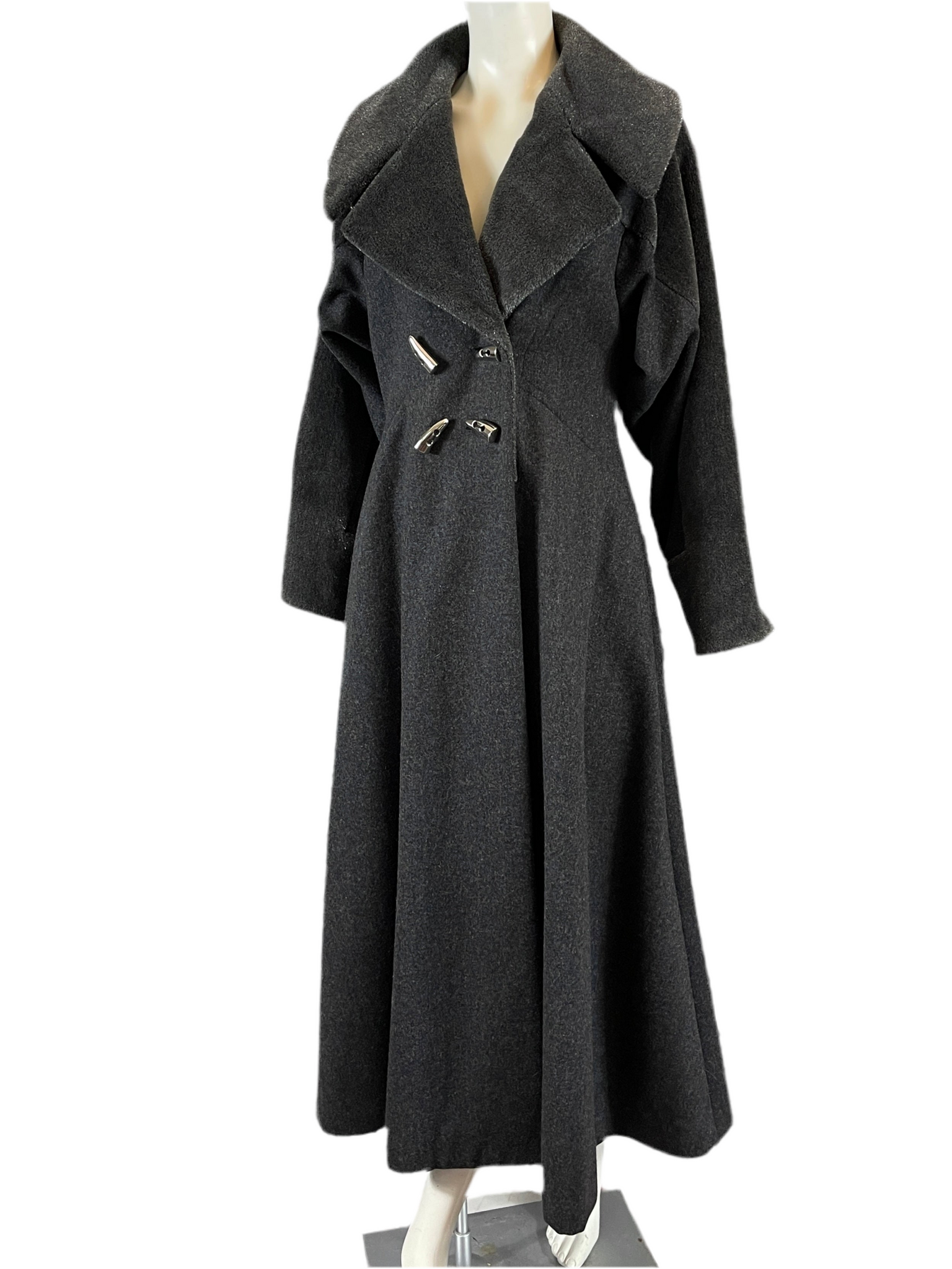 100% laine : certaines parties du manteau sont en laine sèche de couleur grise et mate, tandis que d’autres (le dessus des manches, le col, le haut du dos), sont en laine façon fourrure subtilement pailletée.