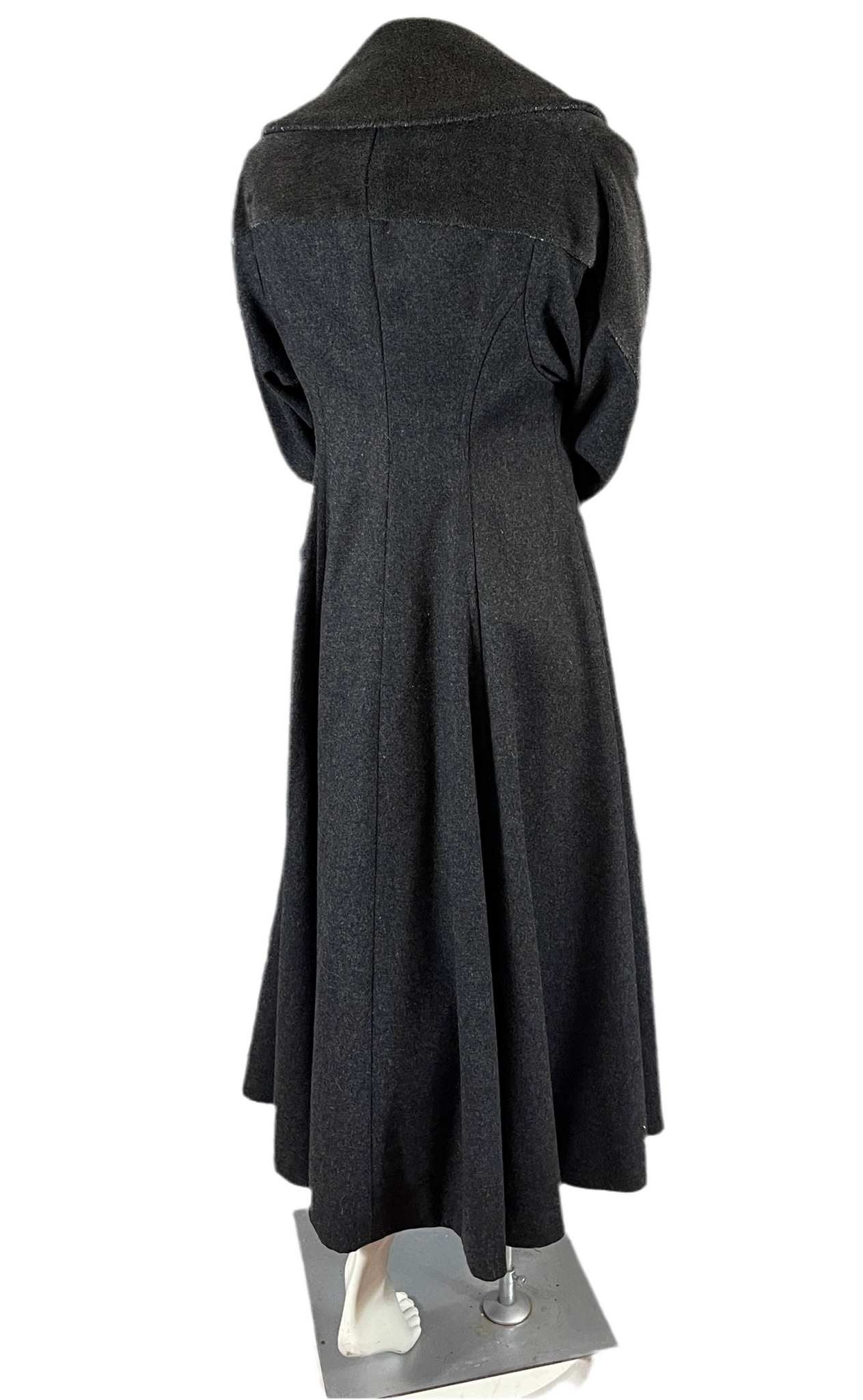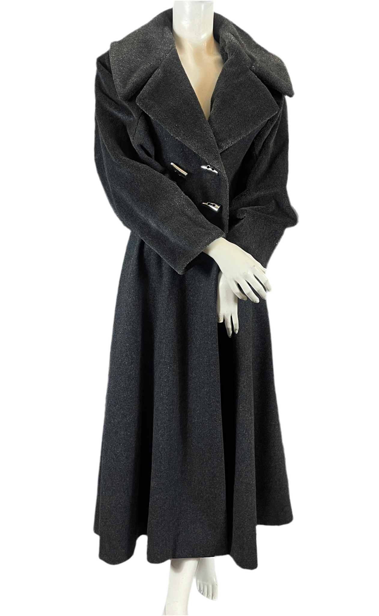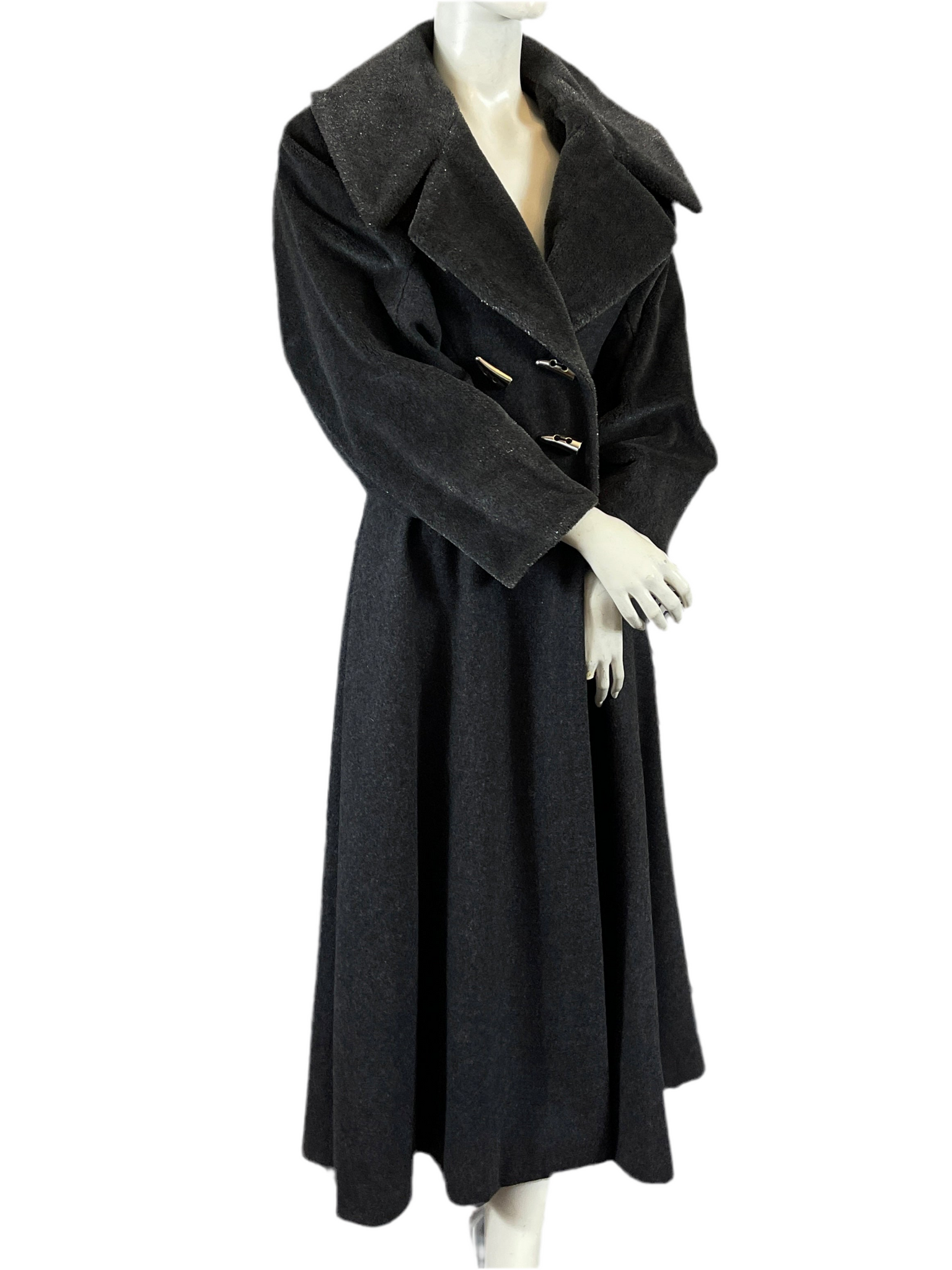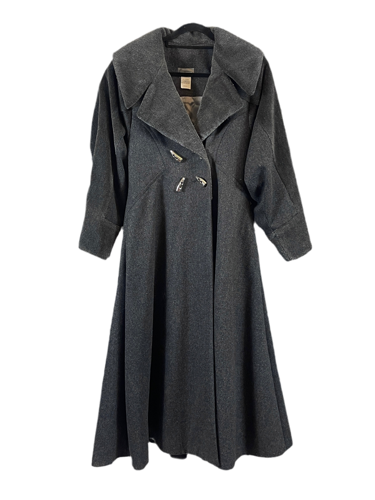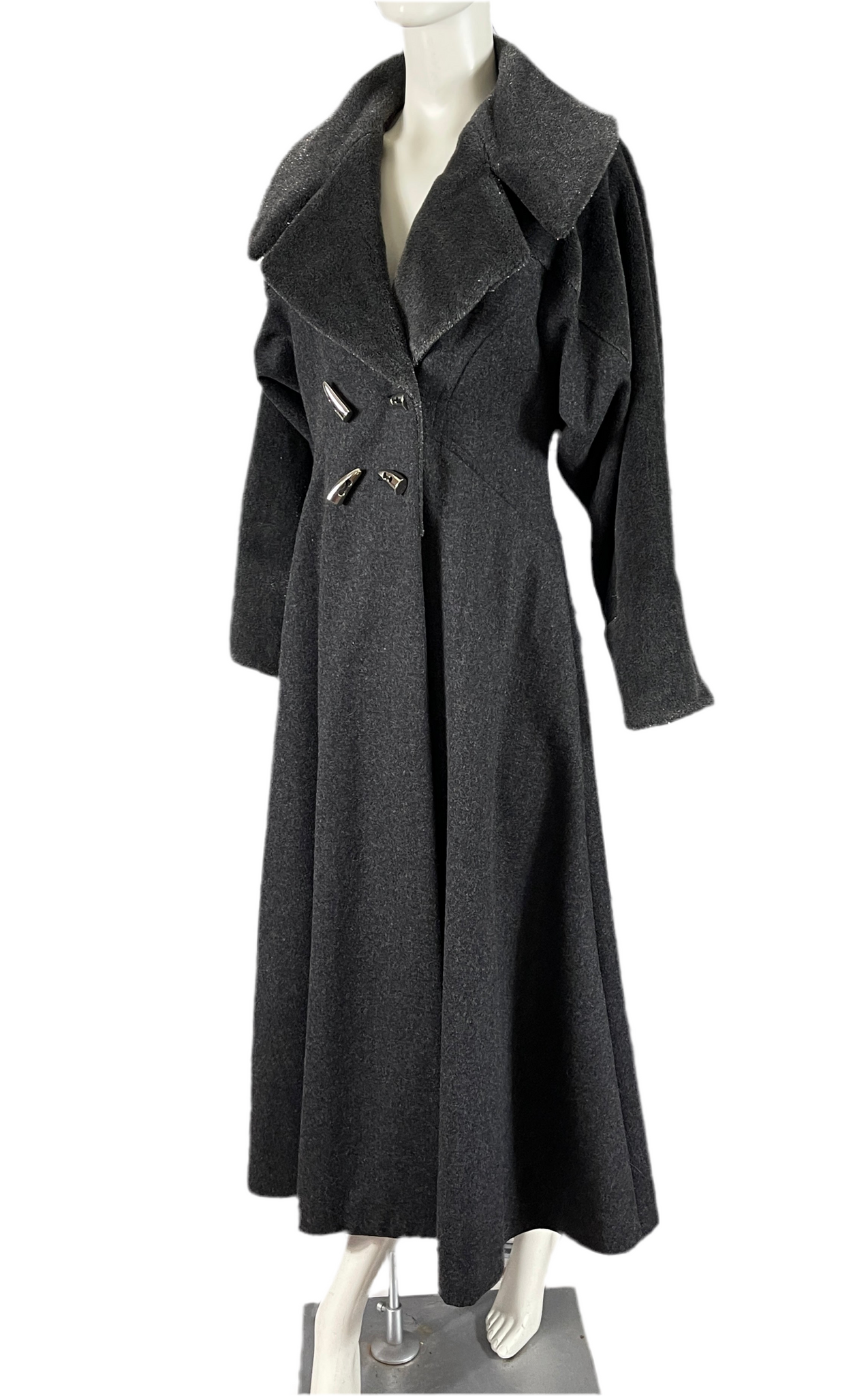 100% laine : certaines parties du manteau sont en laine sèche de couleur grise et mate, tandis que d’autres (le dessus des manches, le col, le haut du dos), sont en laine façon fourrure subtilement pailletée.