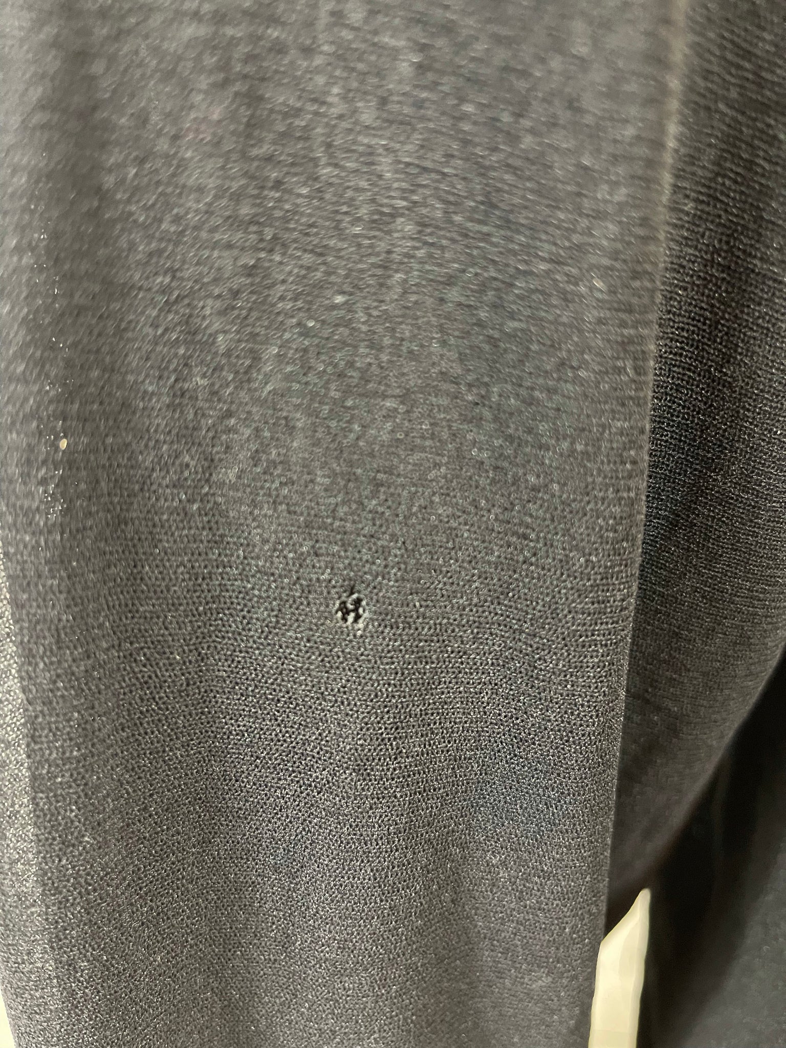 Par ailleurs, il y a également un petit trou dans le mesh qu’il faudra faire reprendre par une couturière (le prix tient déjà compte de ses éléments).