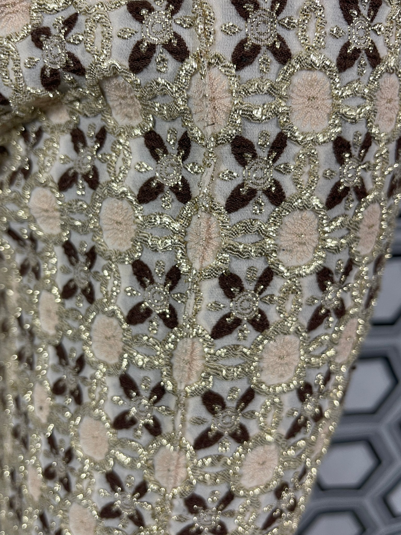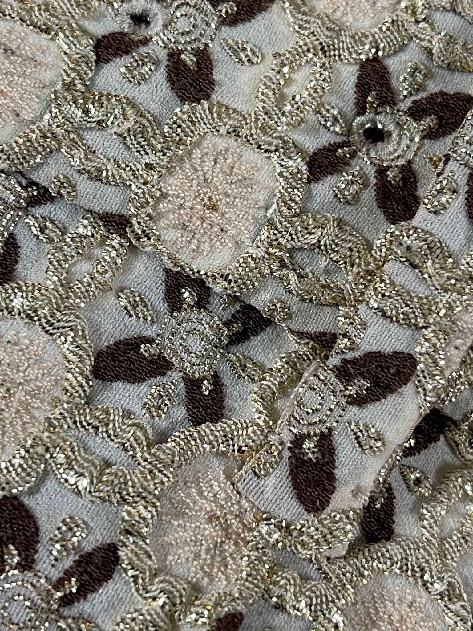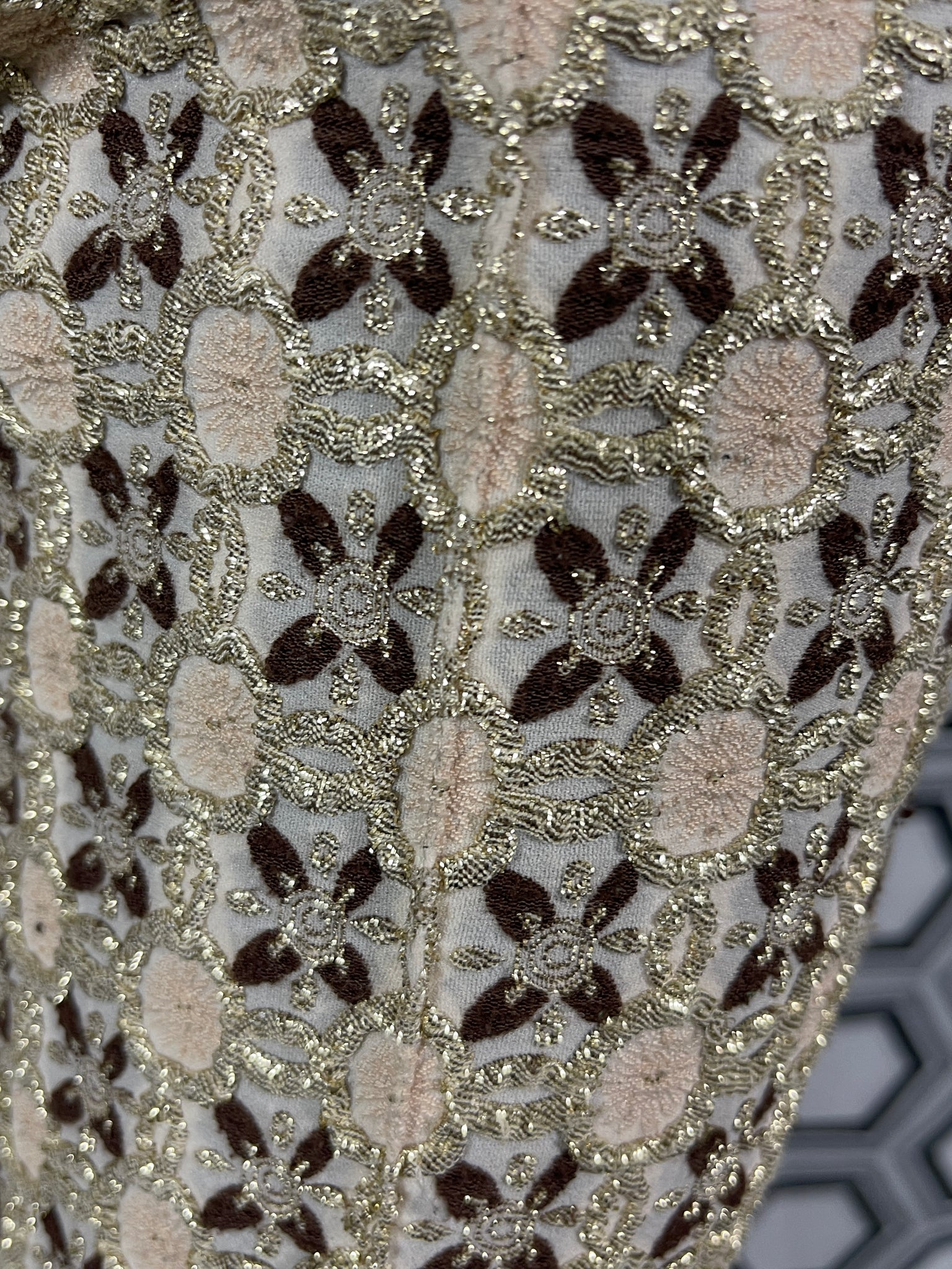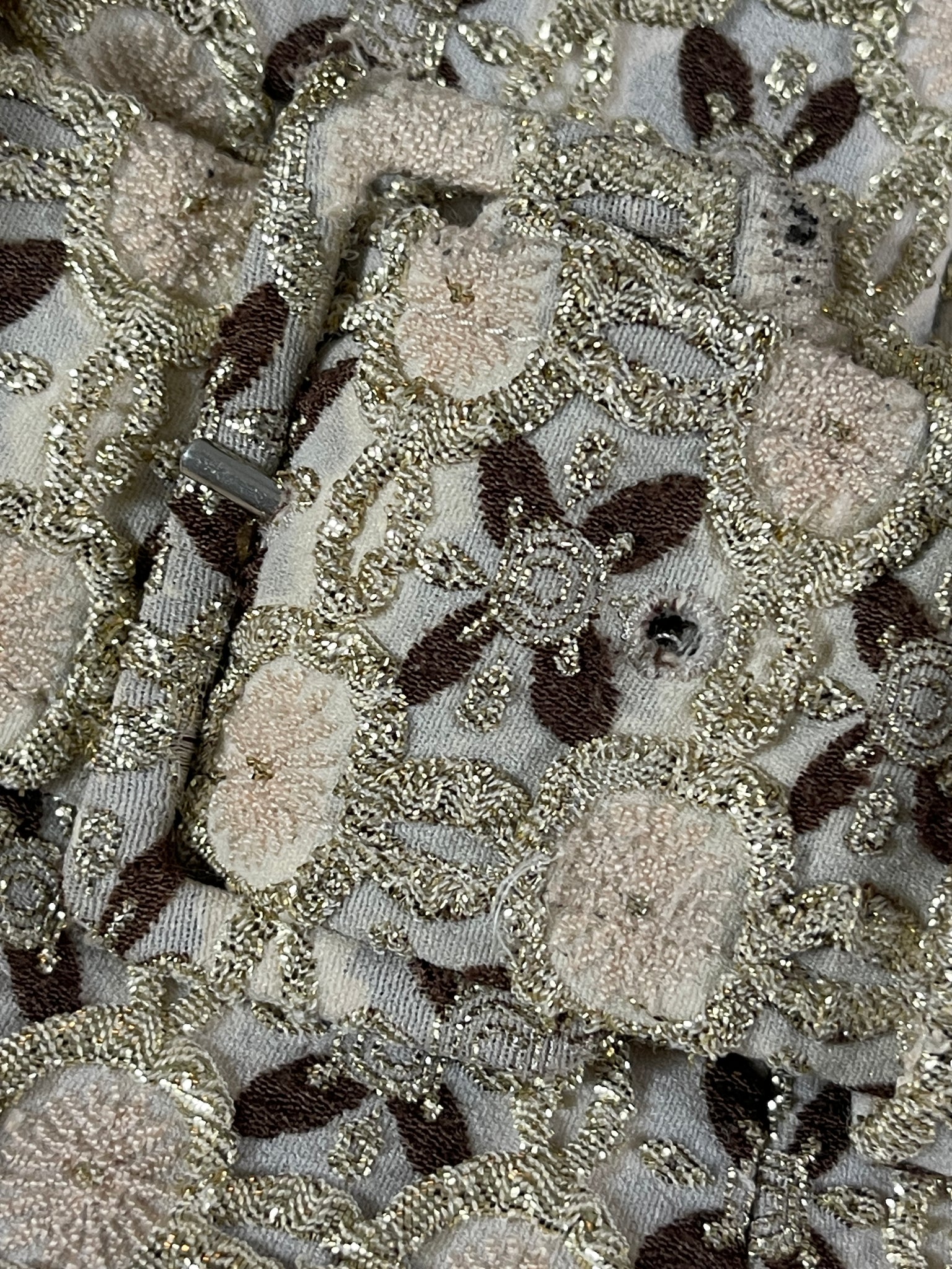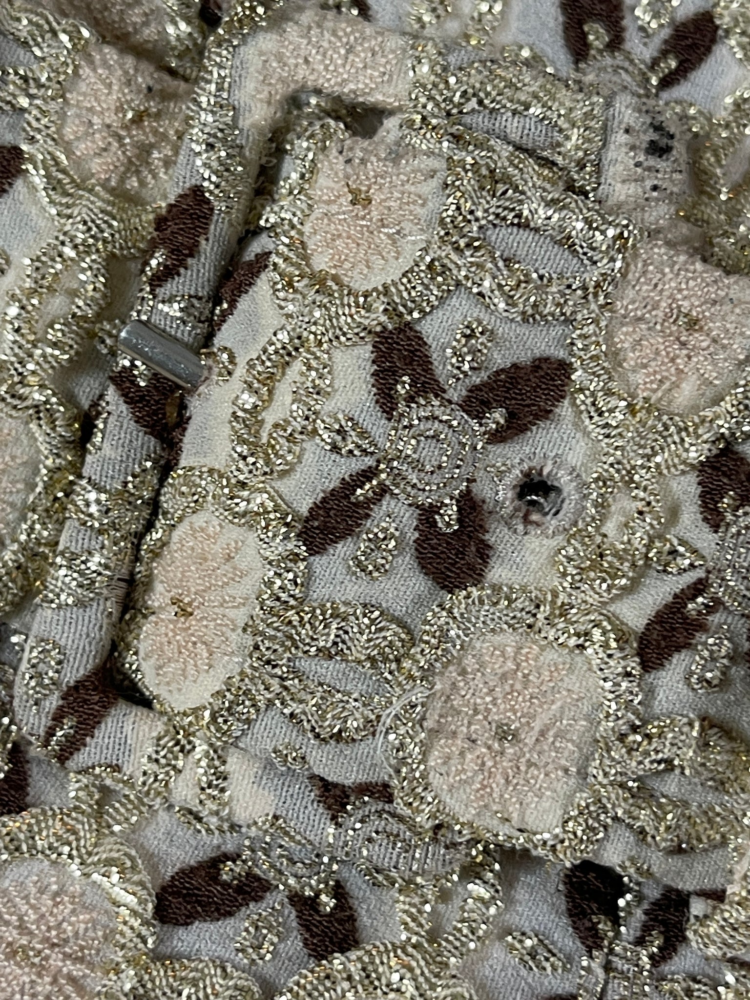 Une pièce incroyable, très travaillée, brodée de lurex doré.