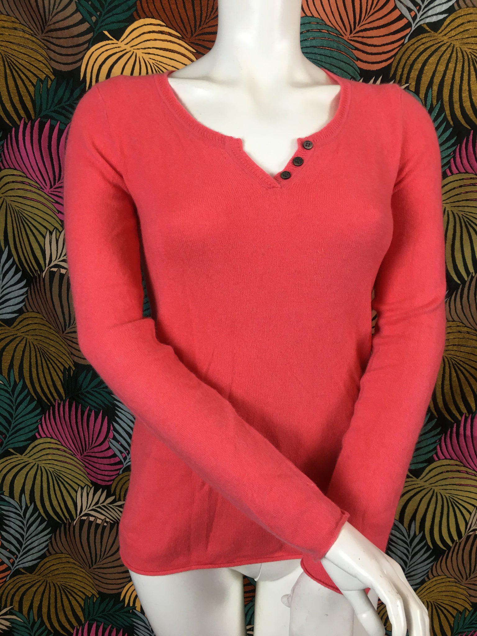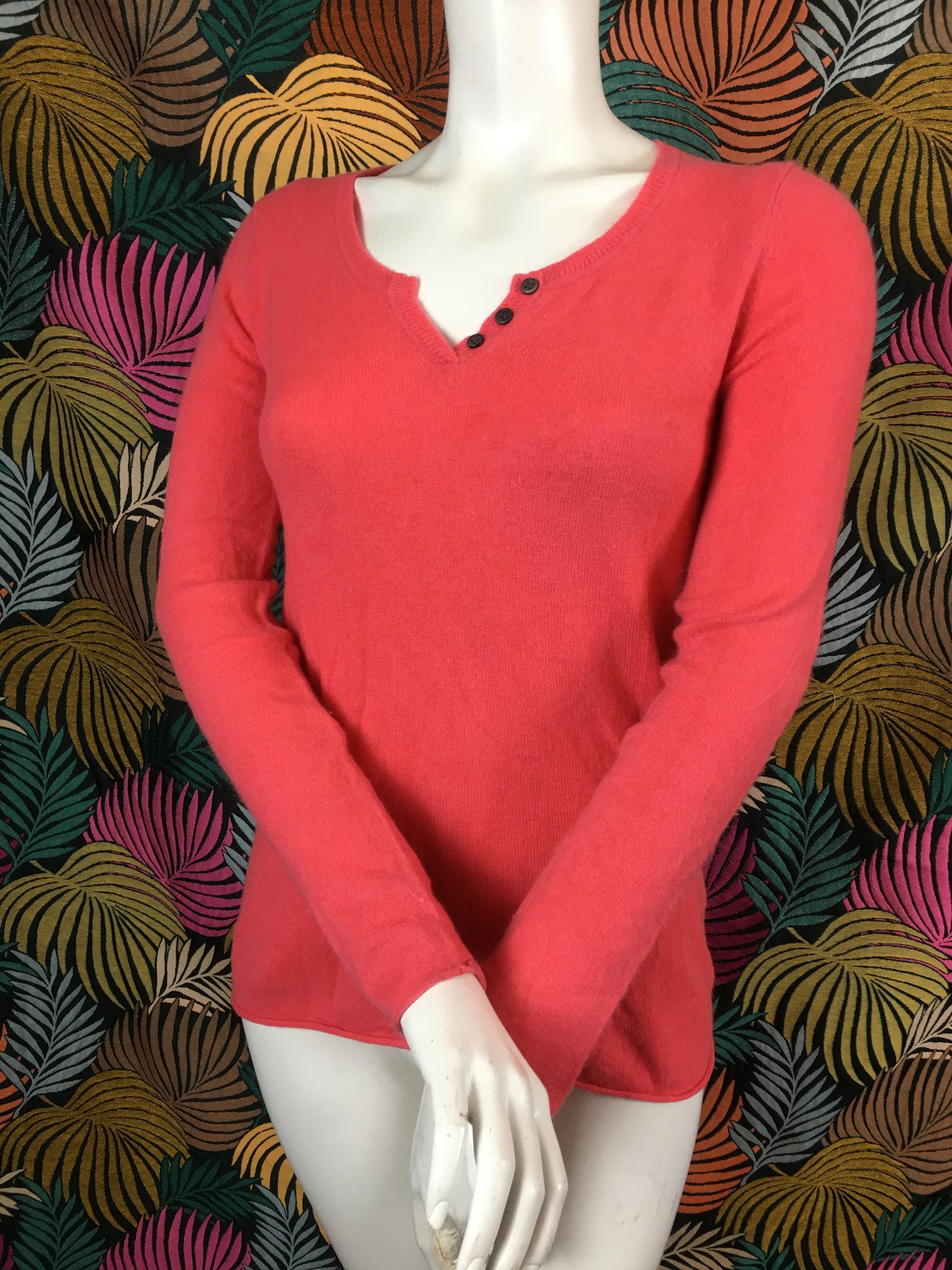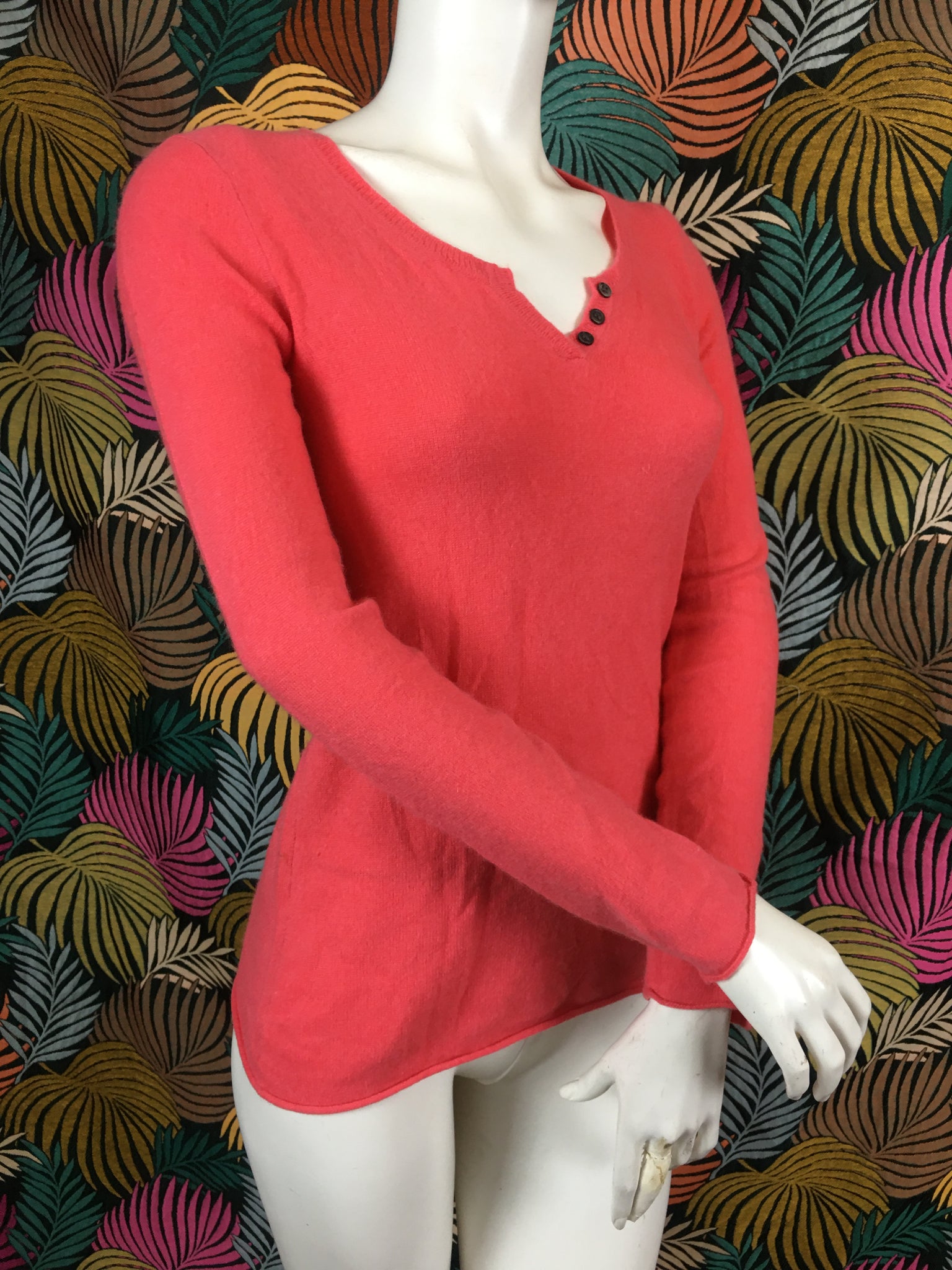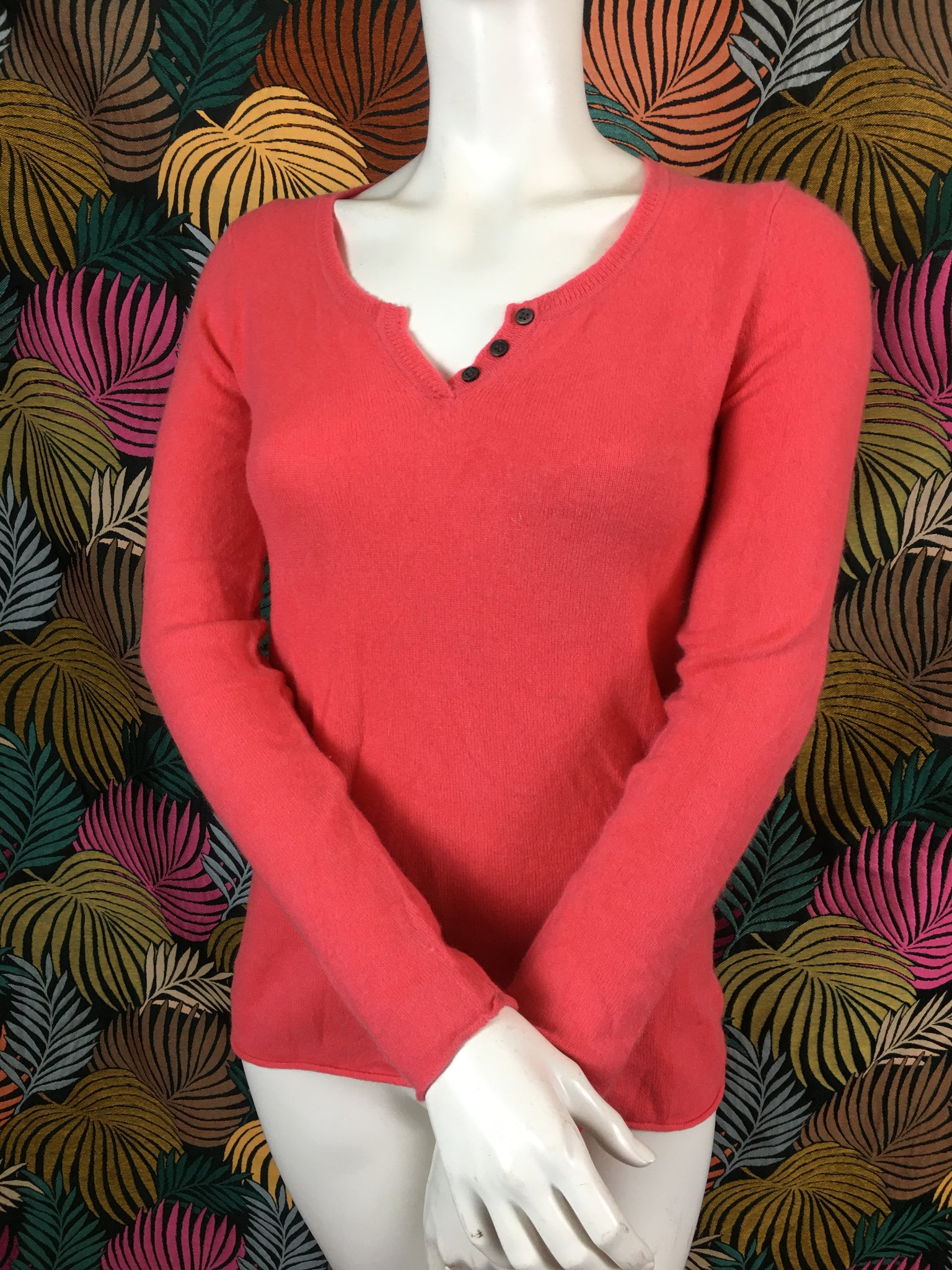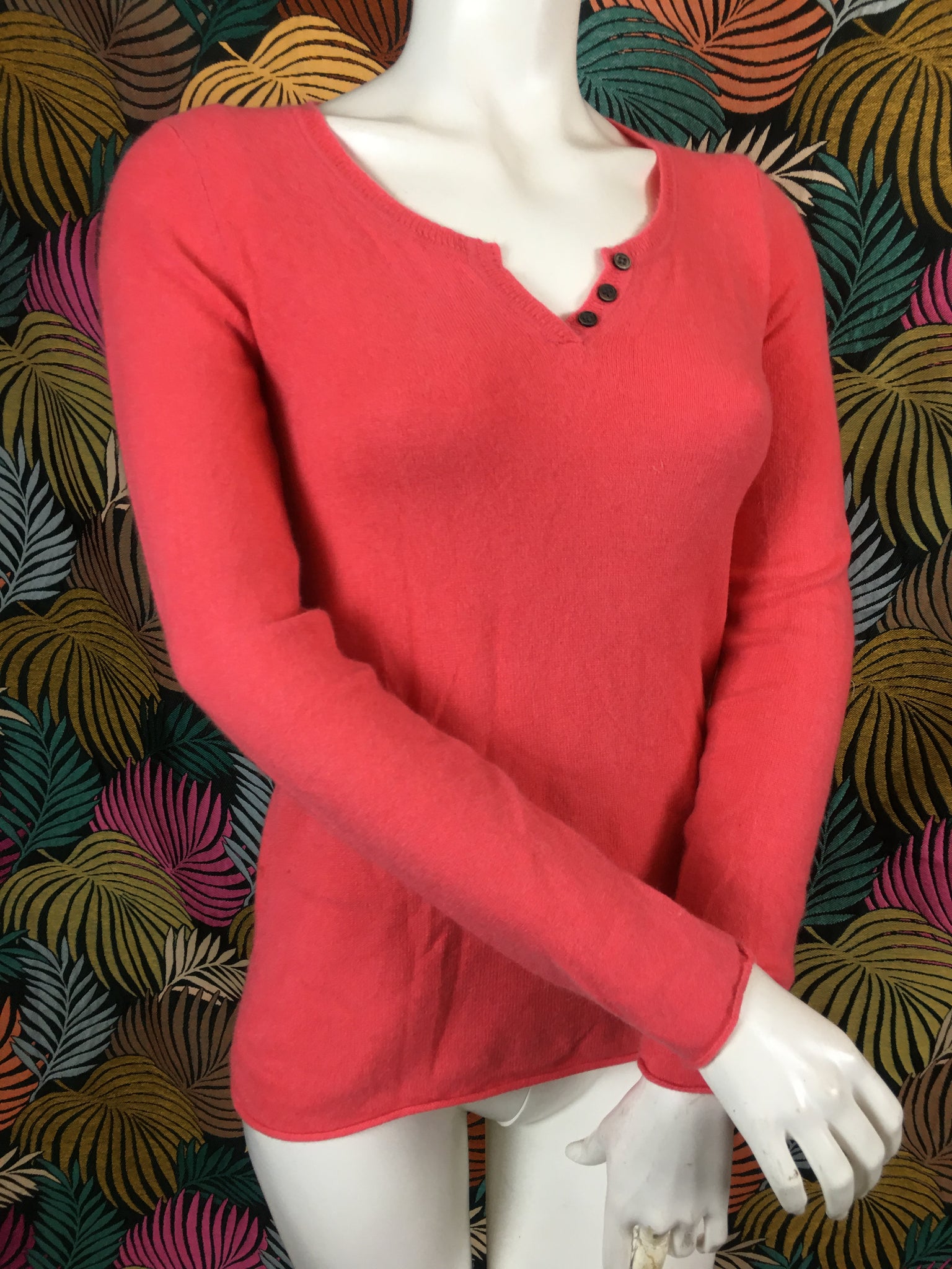 Pull en cachemire Estheme taille S (taille 36). 100% cachemire. Couleur corail. Col tunisien.