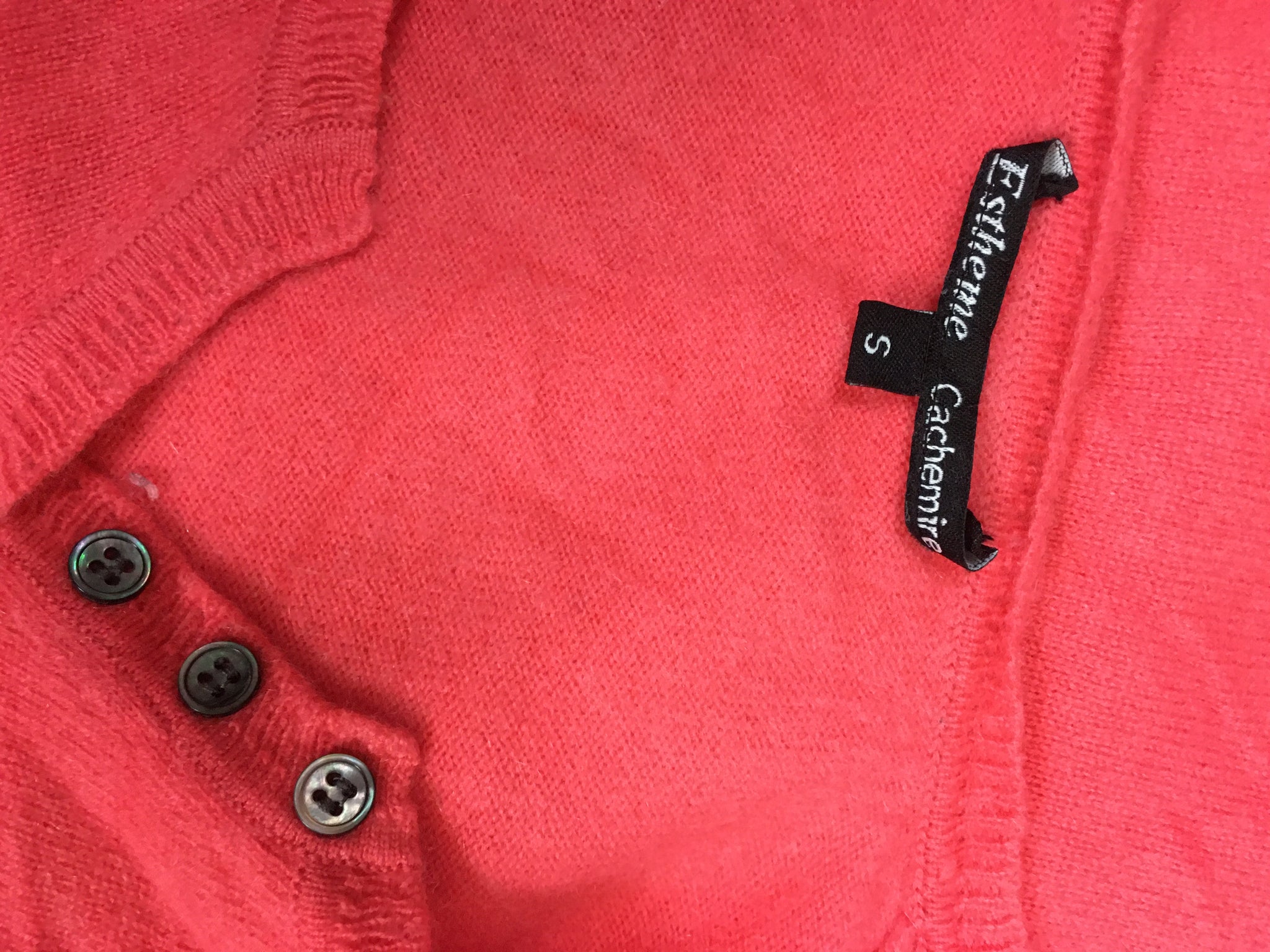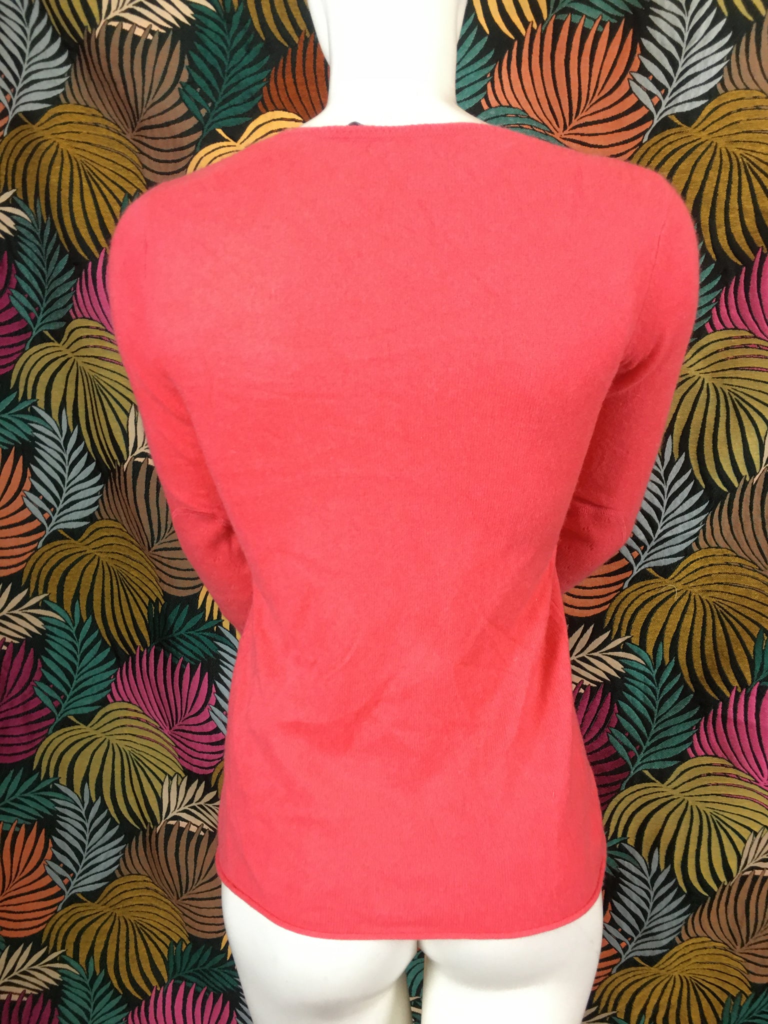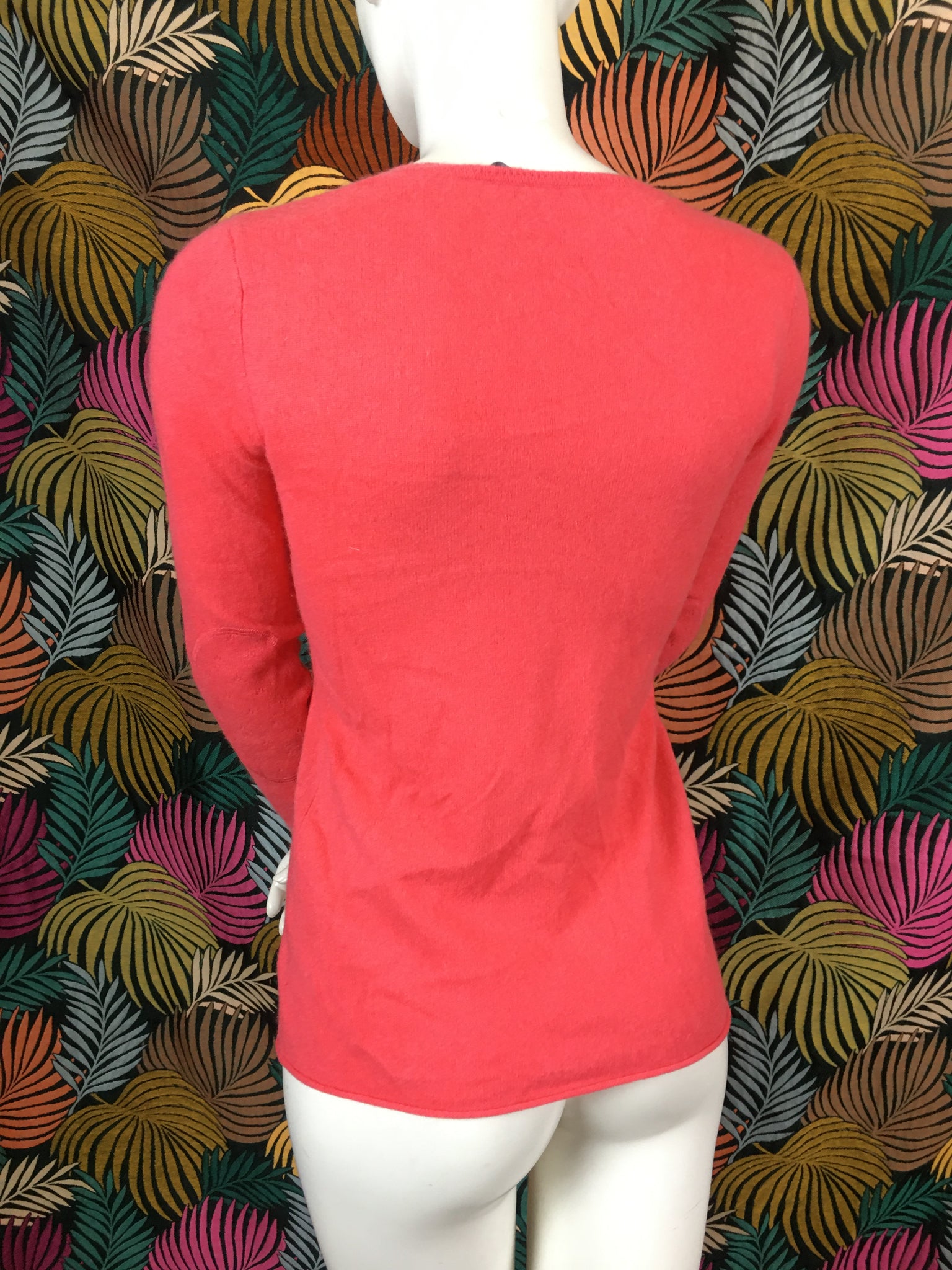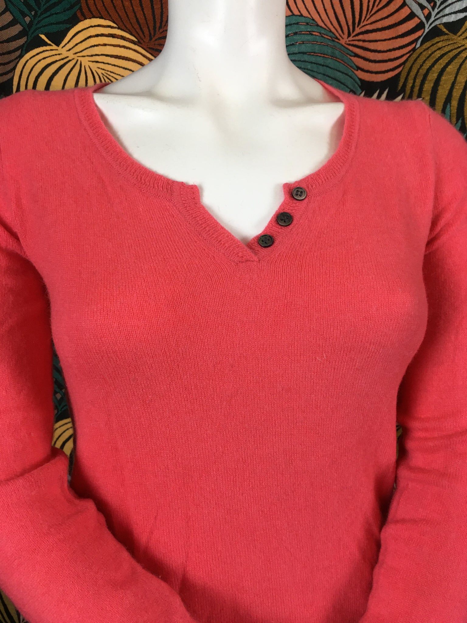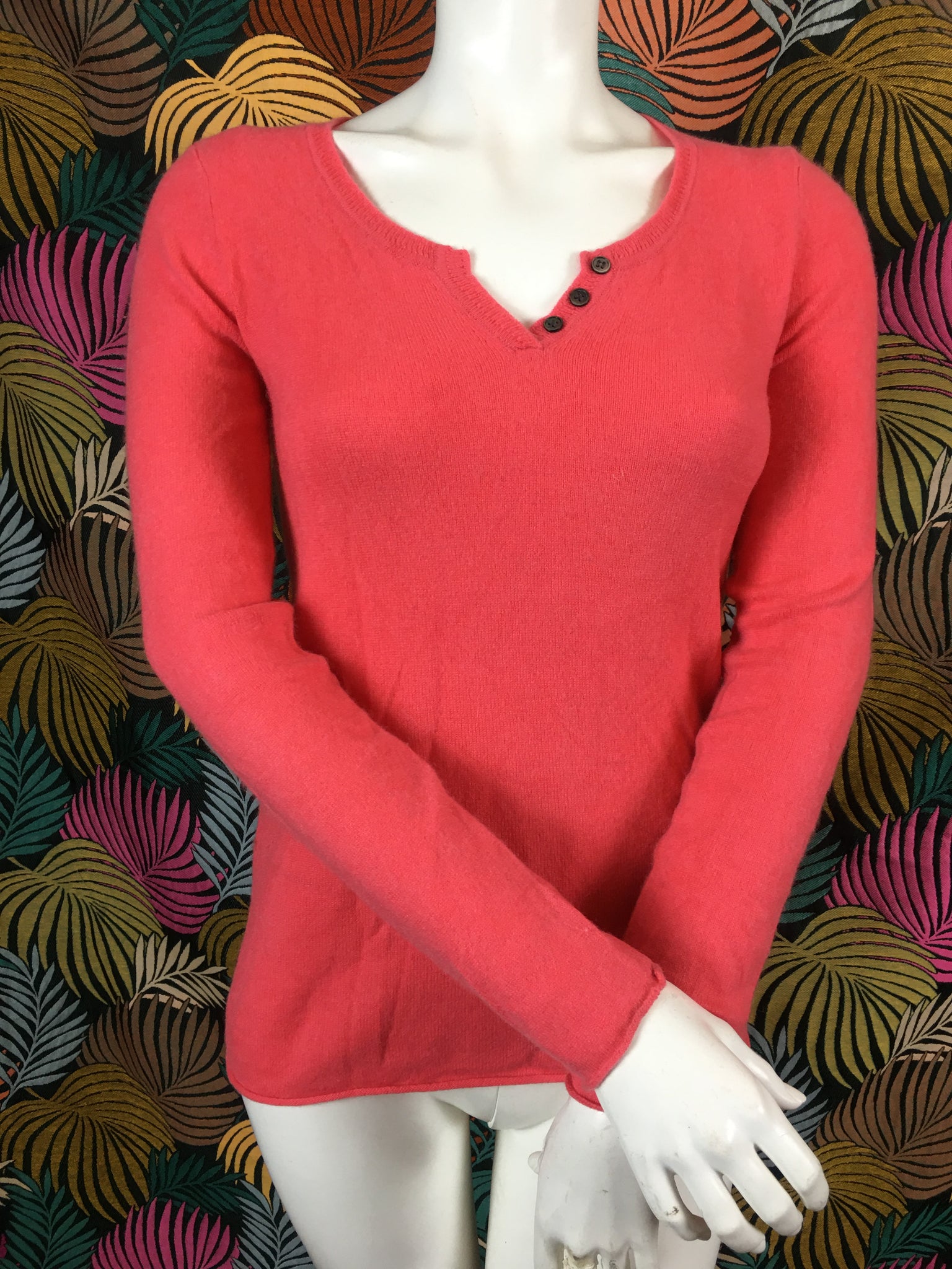 Pull en cachemire Estheme taille S (taille 36). 100% cachemire. Couleur corail. Col tunisien.