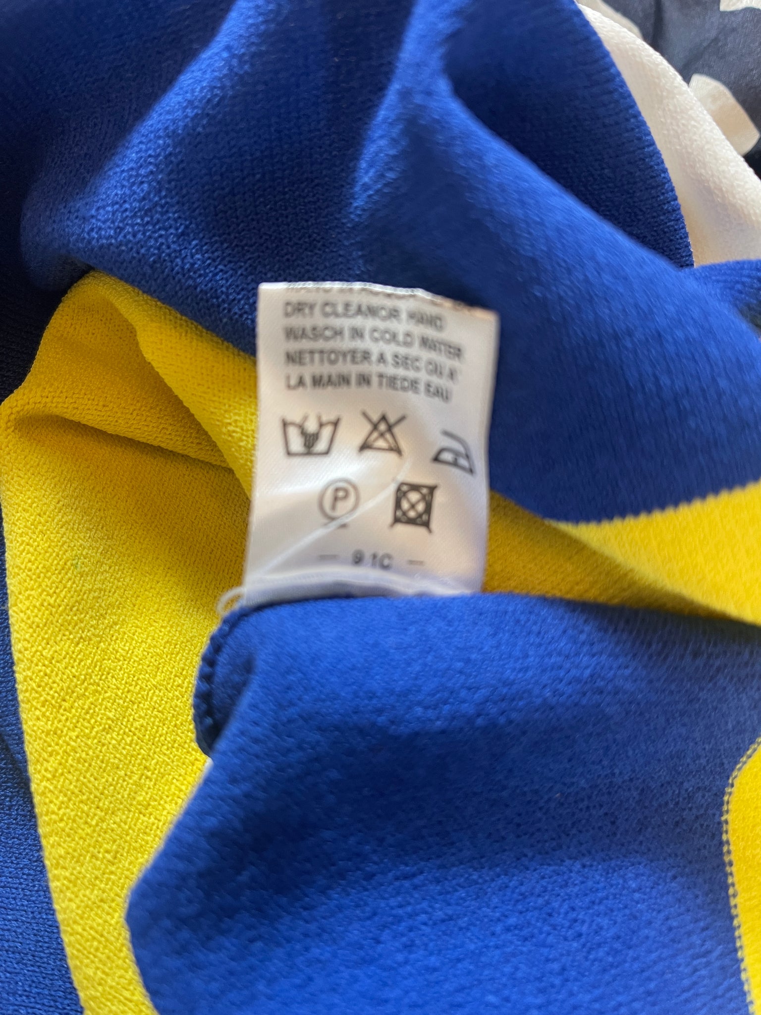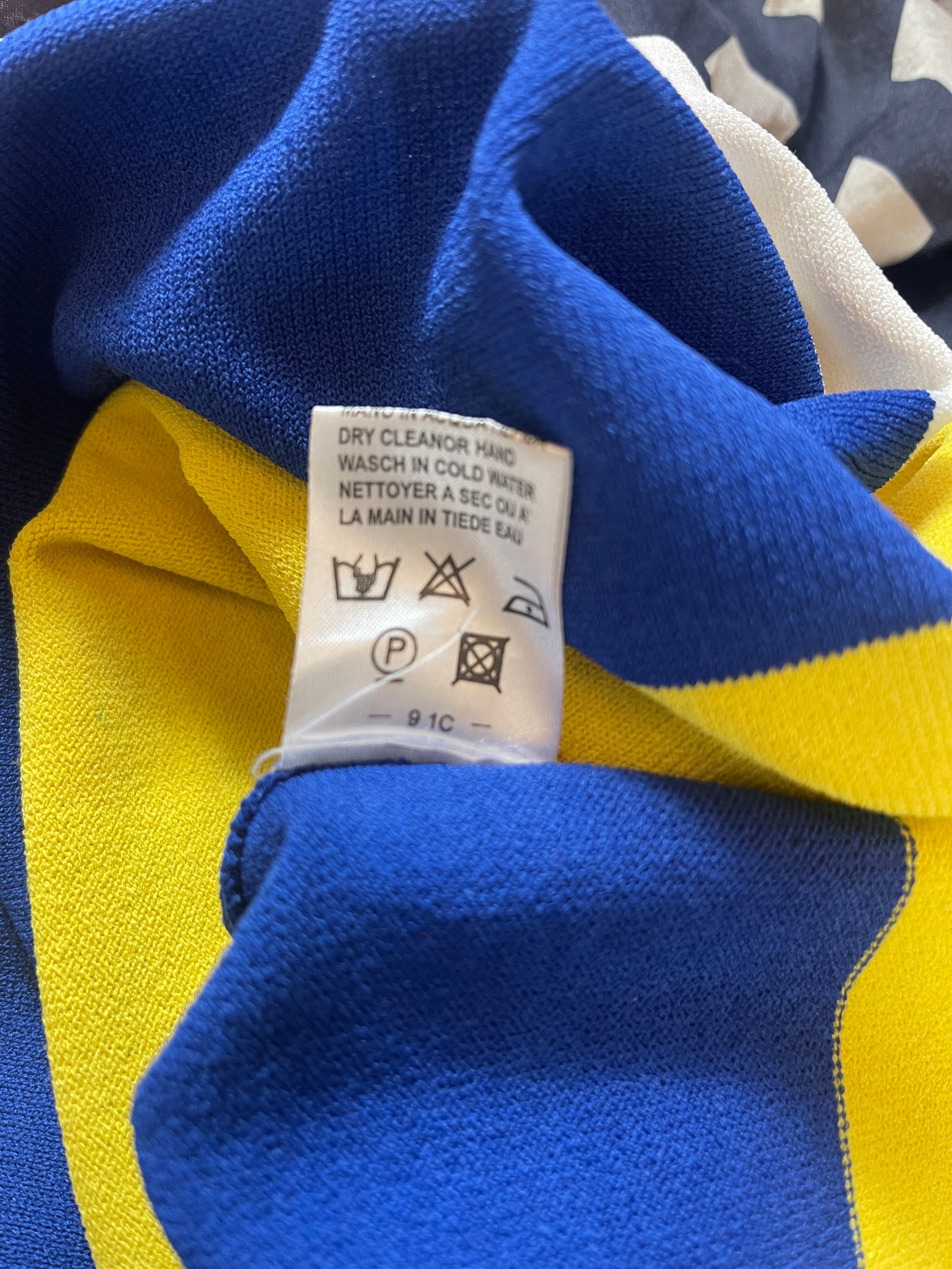 Mesures à plat (matière extensible) : largeur sous aisselles 39 cms, largeur taille 32 cms, largeur hanches 43 cms et longueur 67 cms.