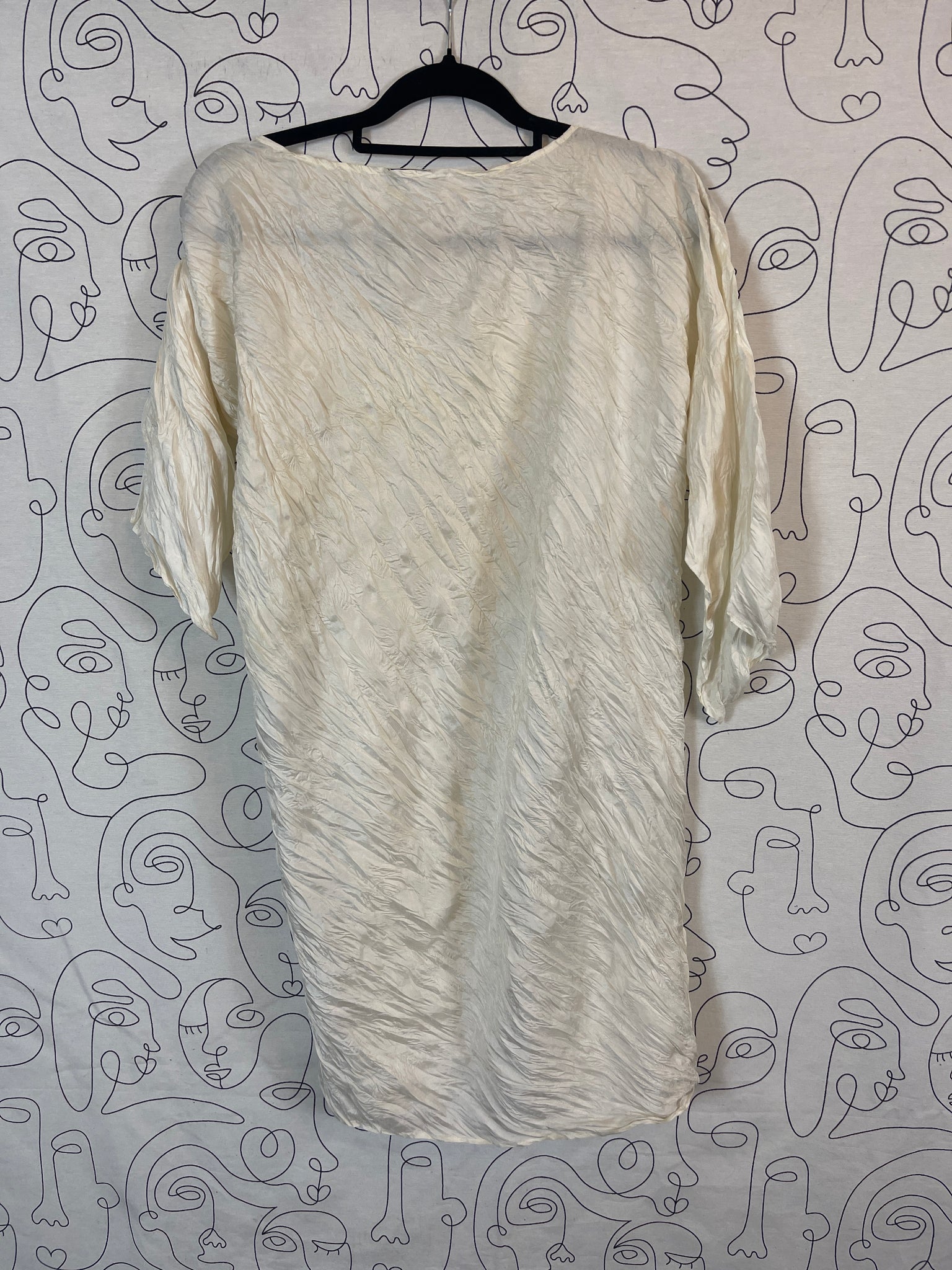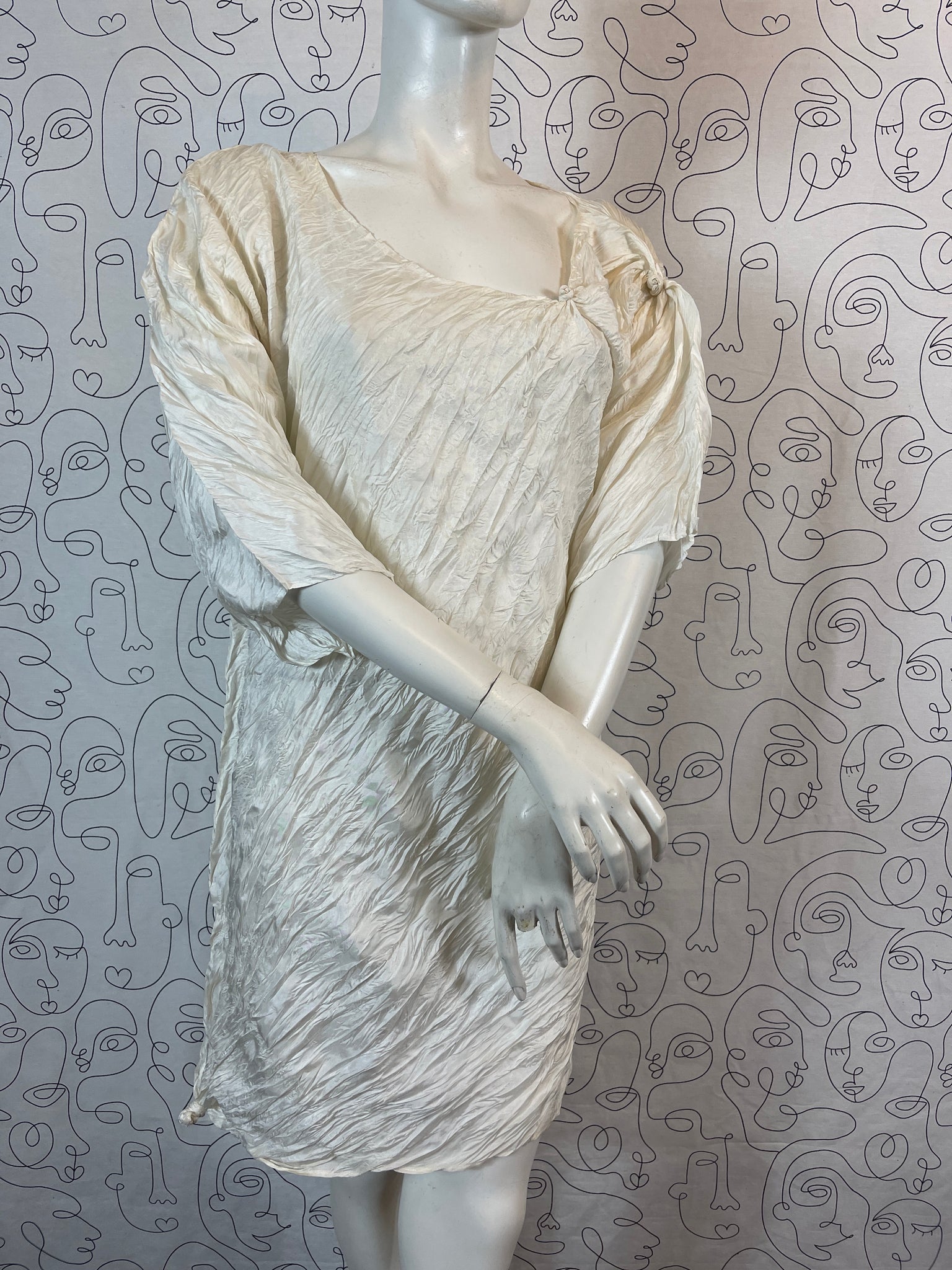 Mesures à plat : largeur sous aisselles 52 cms, largeur taille 48 cms, largeur hanches 53 cms et longueur 88 cms.