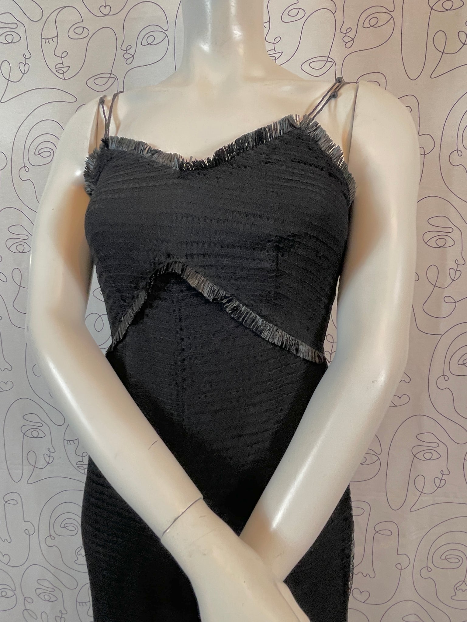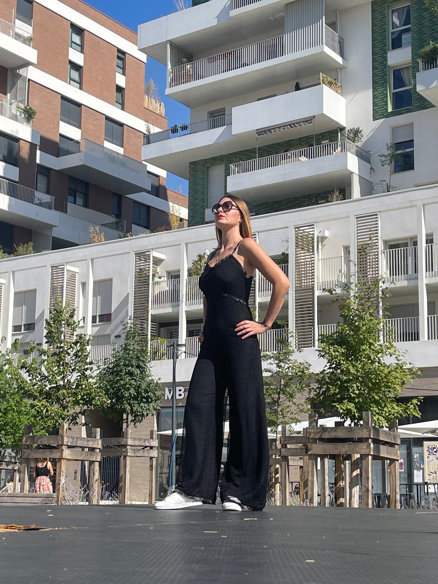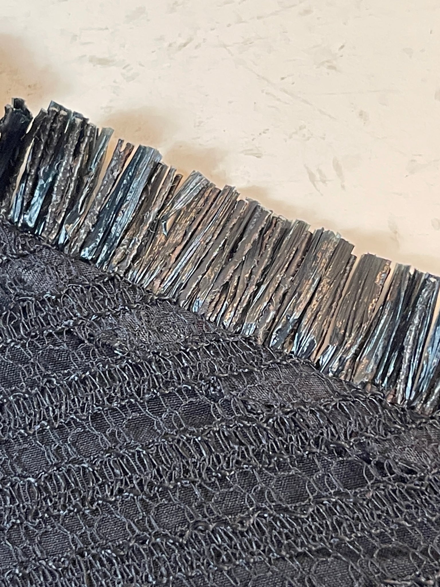 Le bas se finit par des petites franges en raphia, que l’on retrouve également sur le tour de taille et le décolleté.