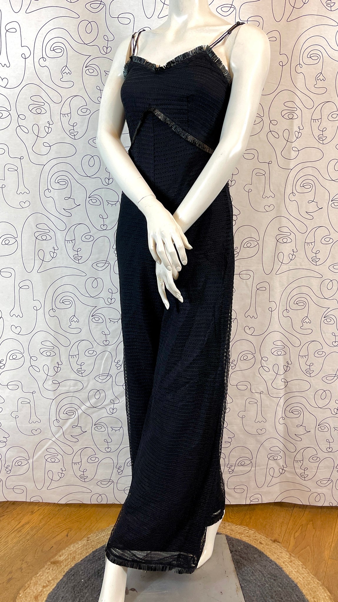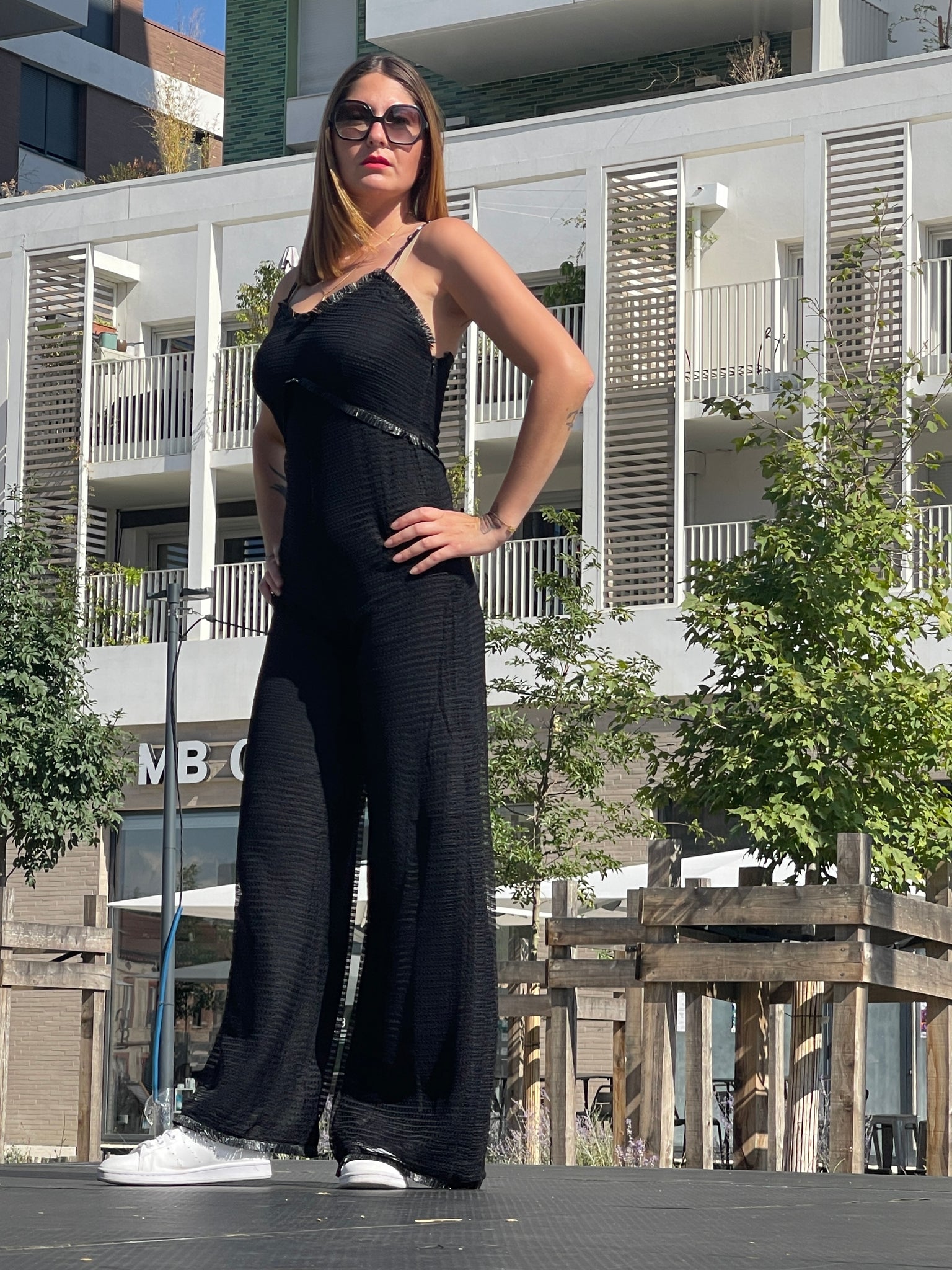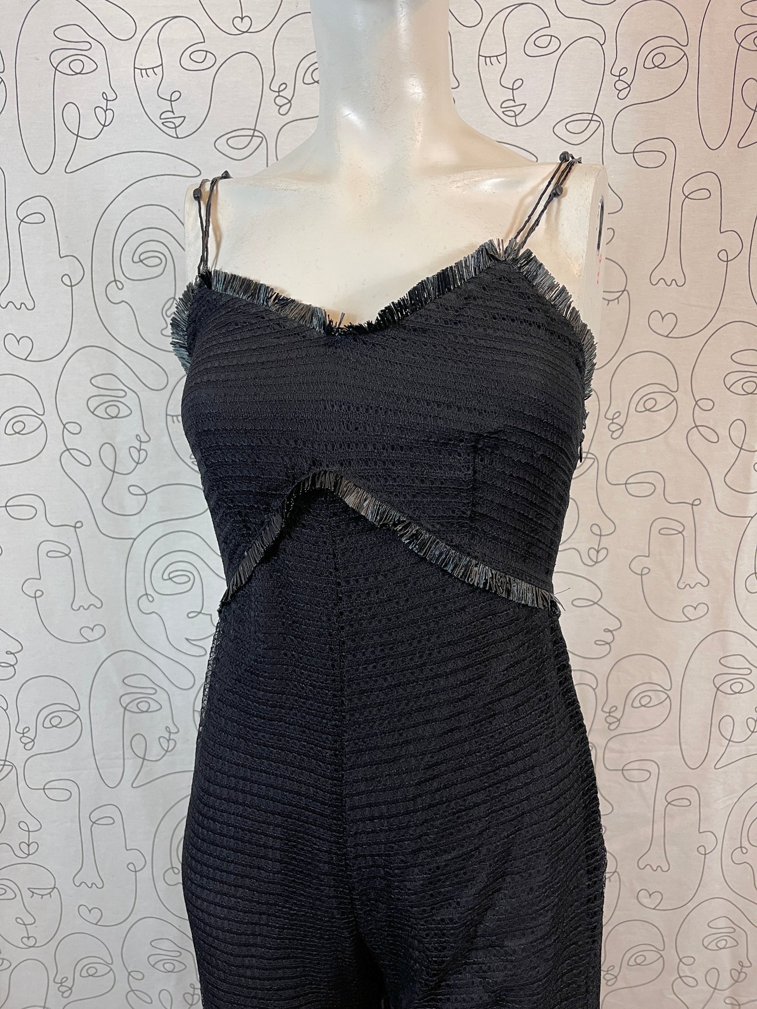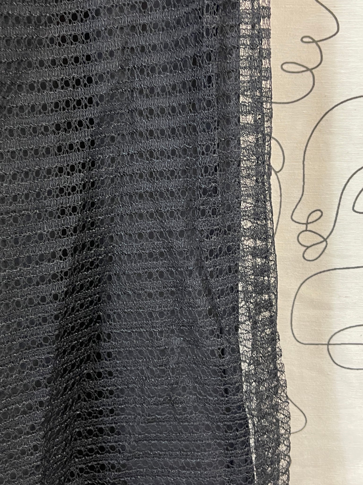 Entièrement en tissu style dentelle très fin et tout en transparence (la combinaison est doublée).