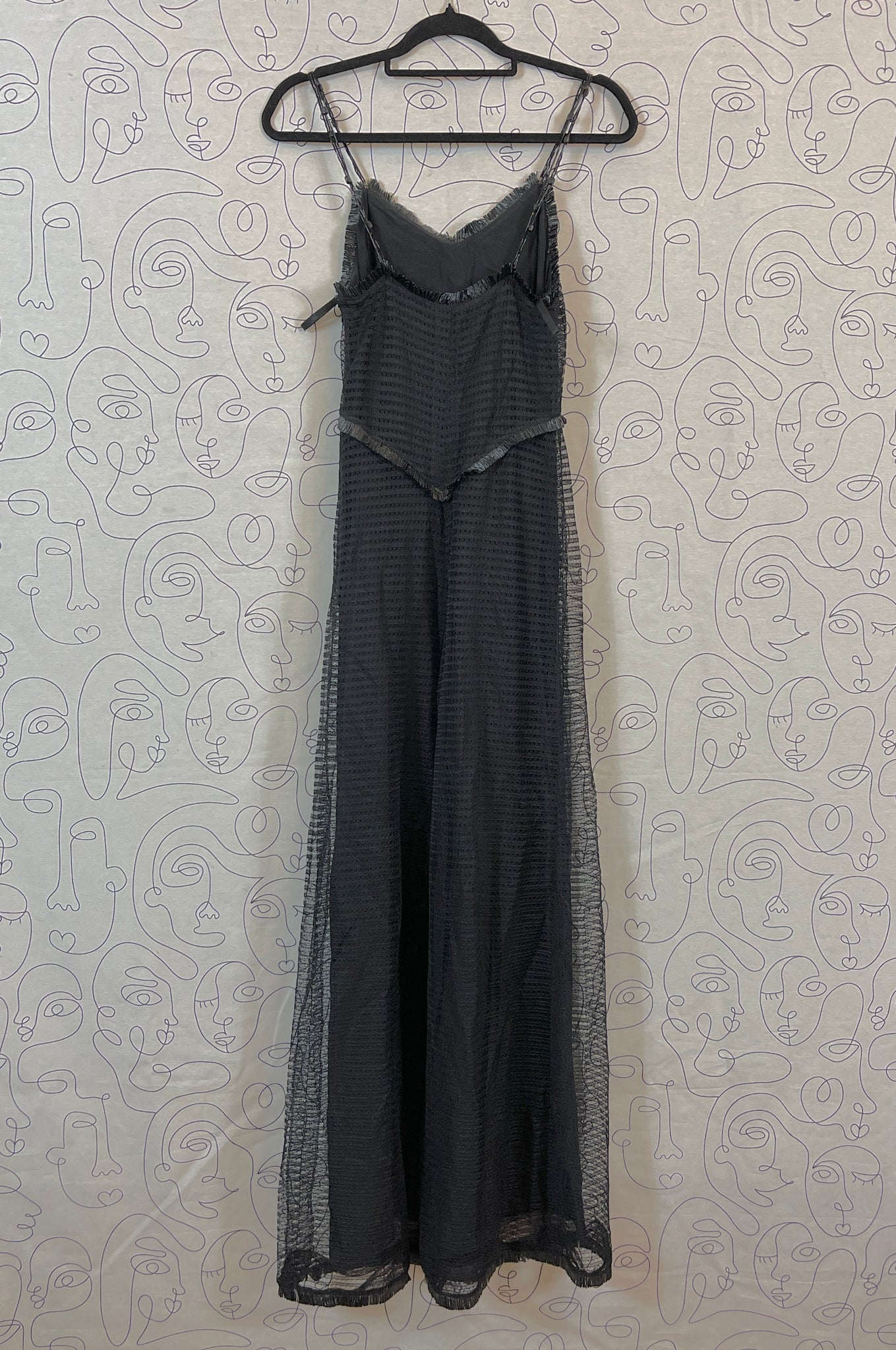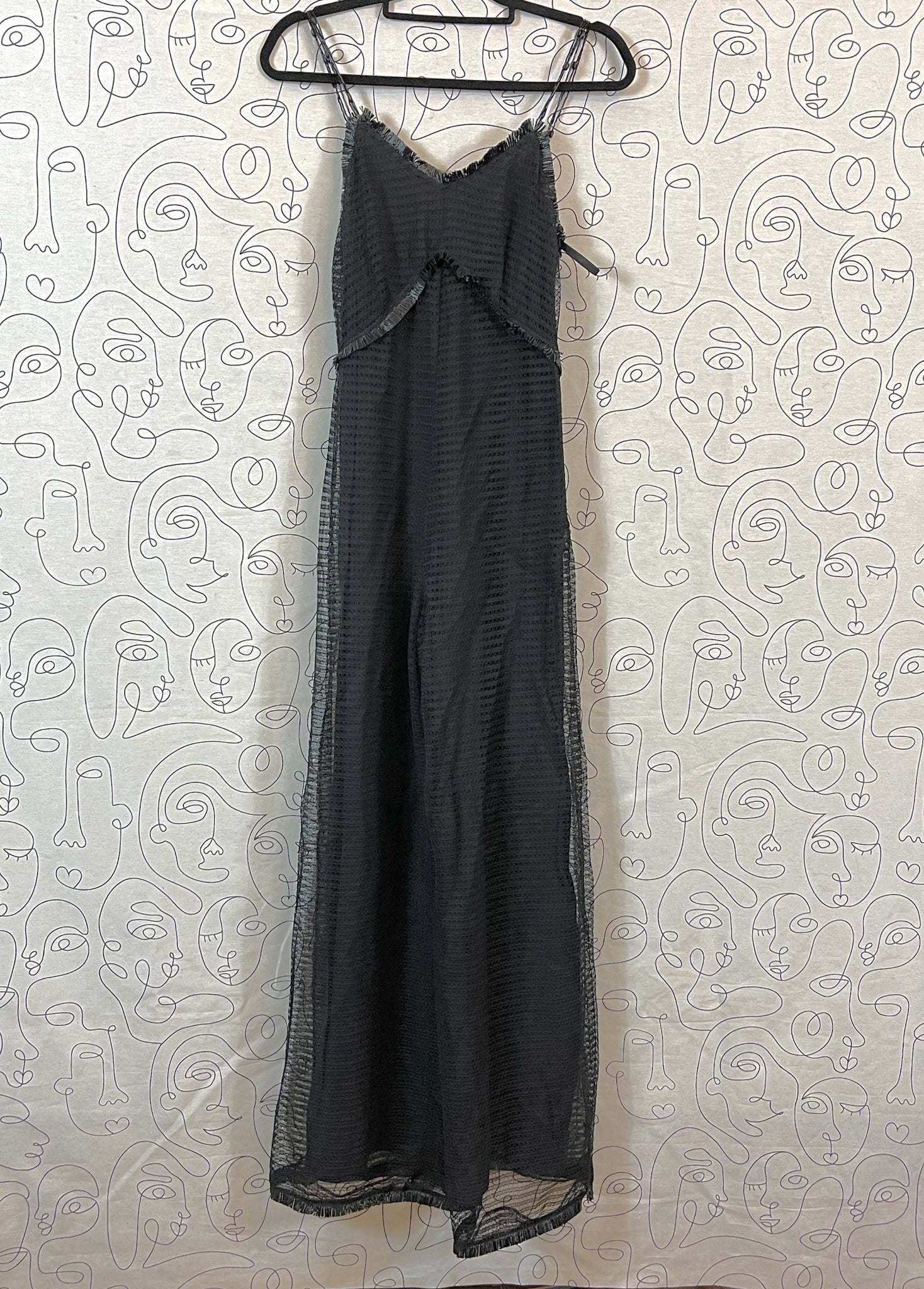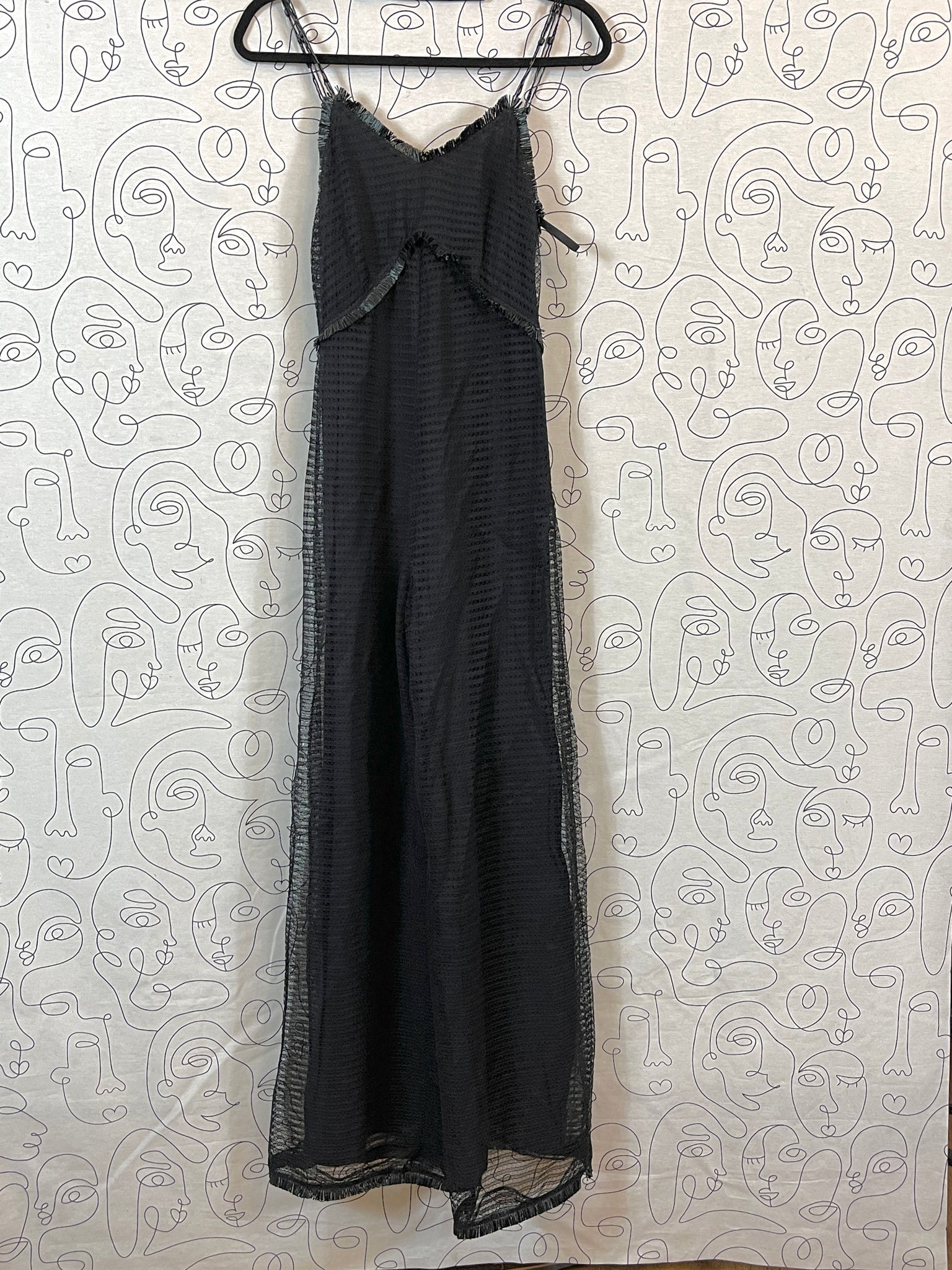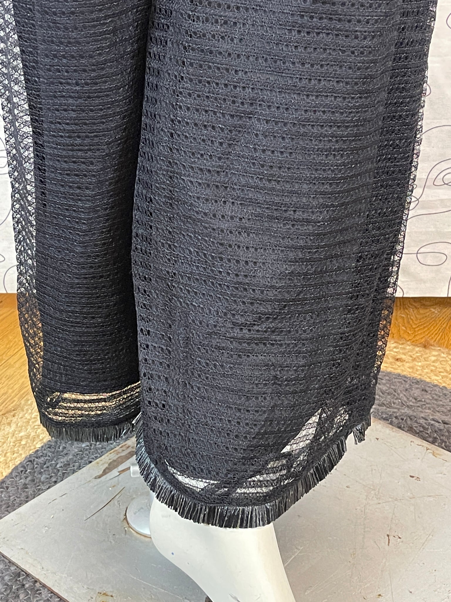 Entièrement en tissu style dentelle très fin et tout en transparence (la combinaison est doublée).